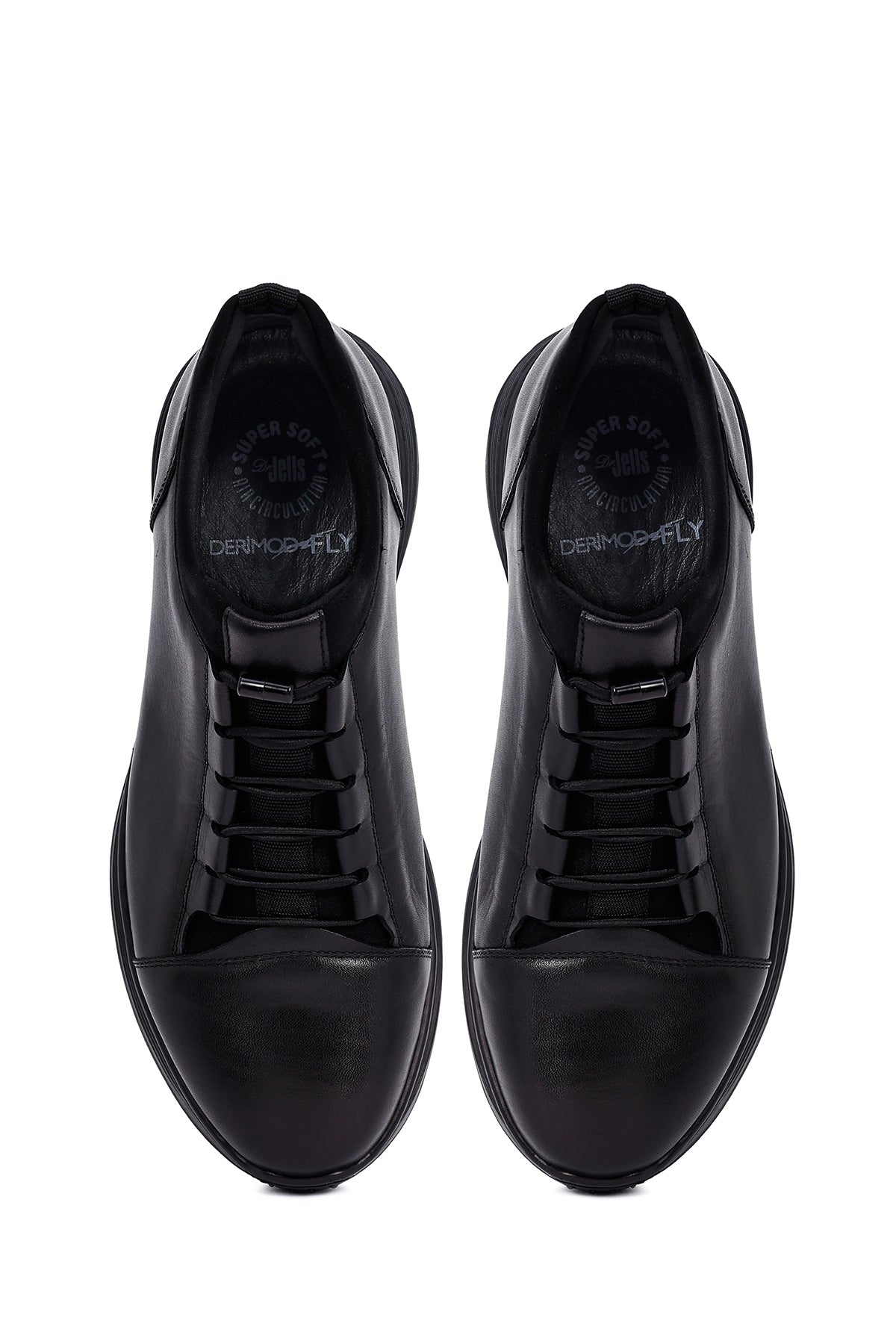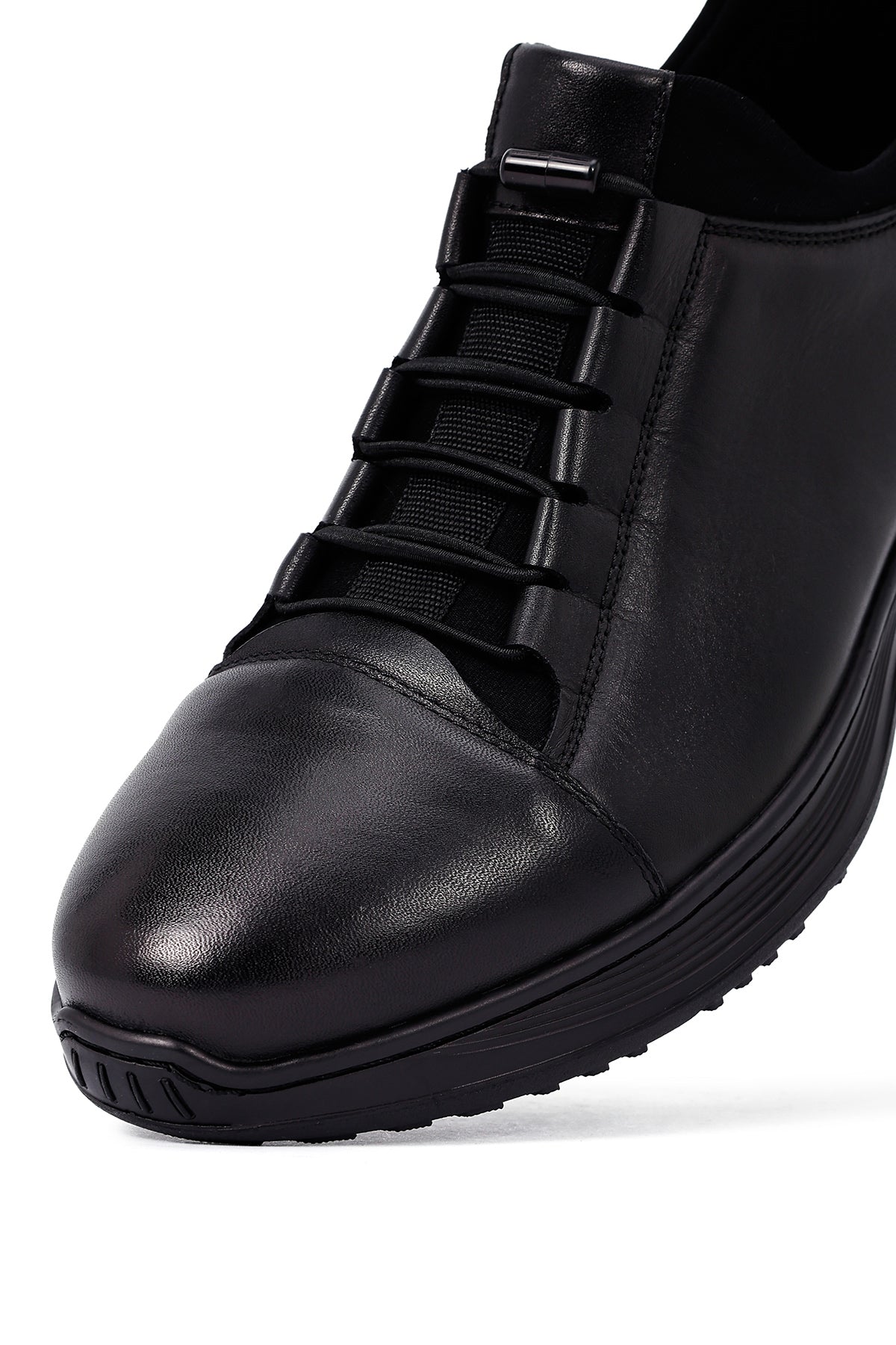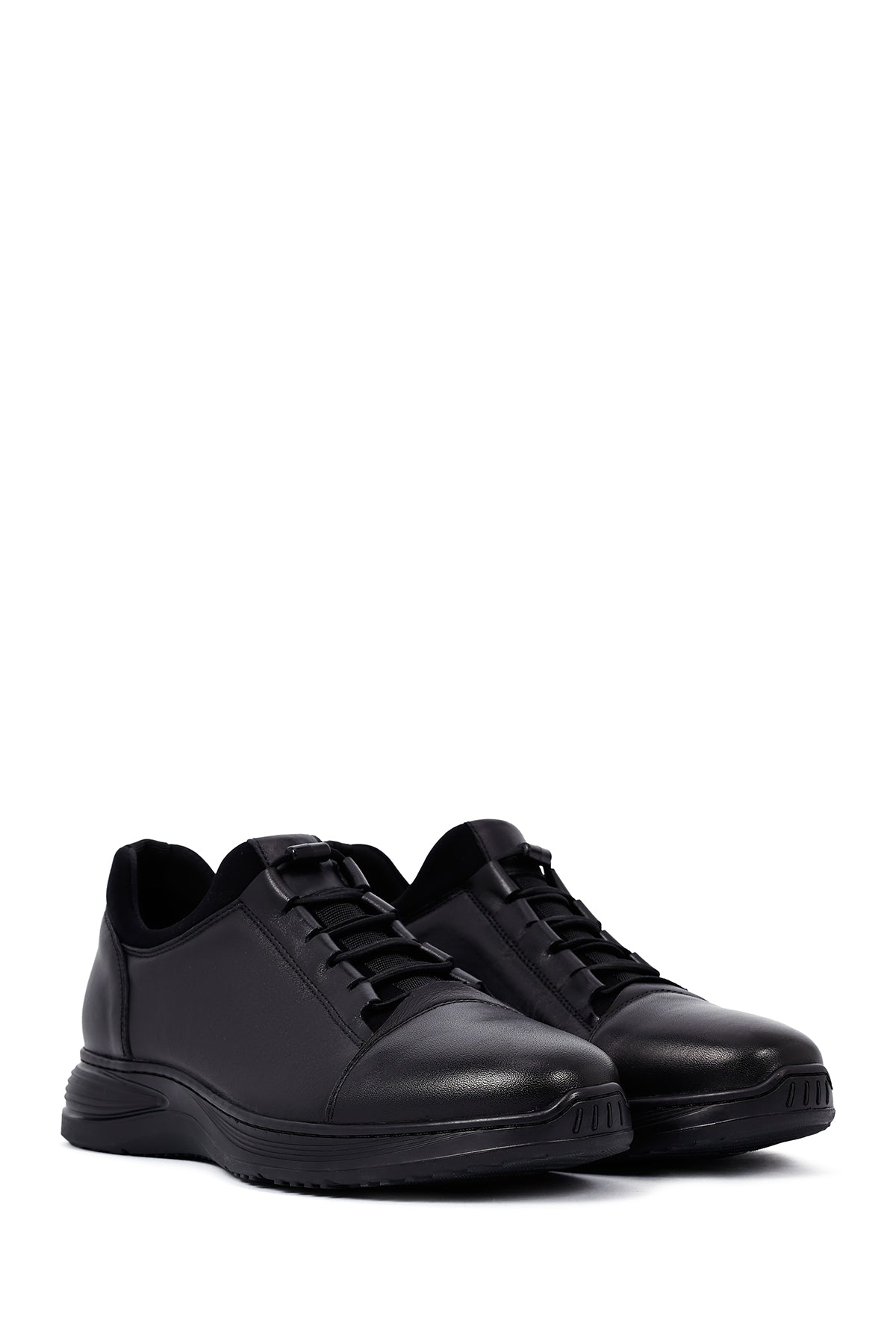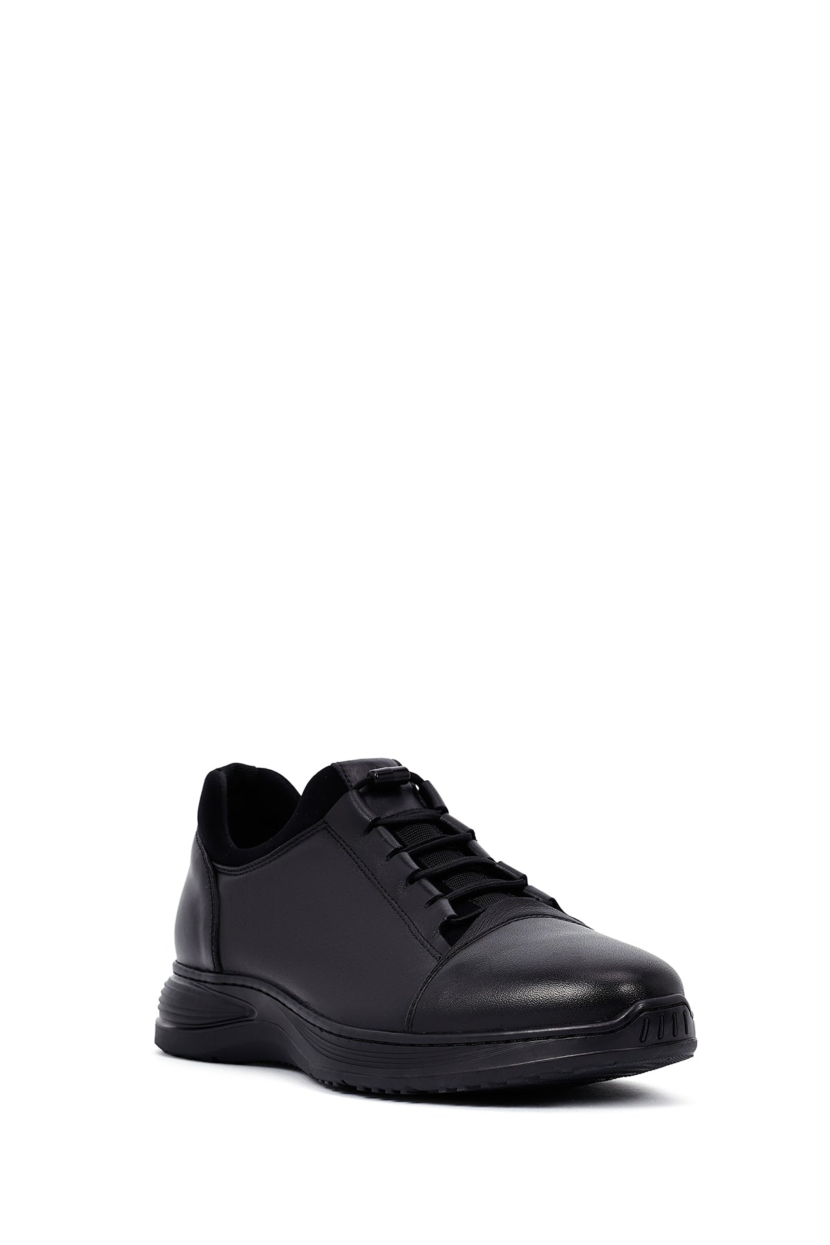 Erkek Siyah Bağcıklı Deri Casual Sneaker