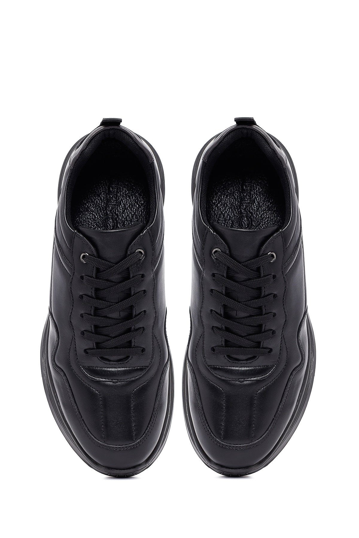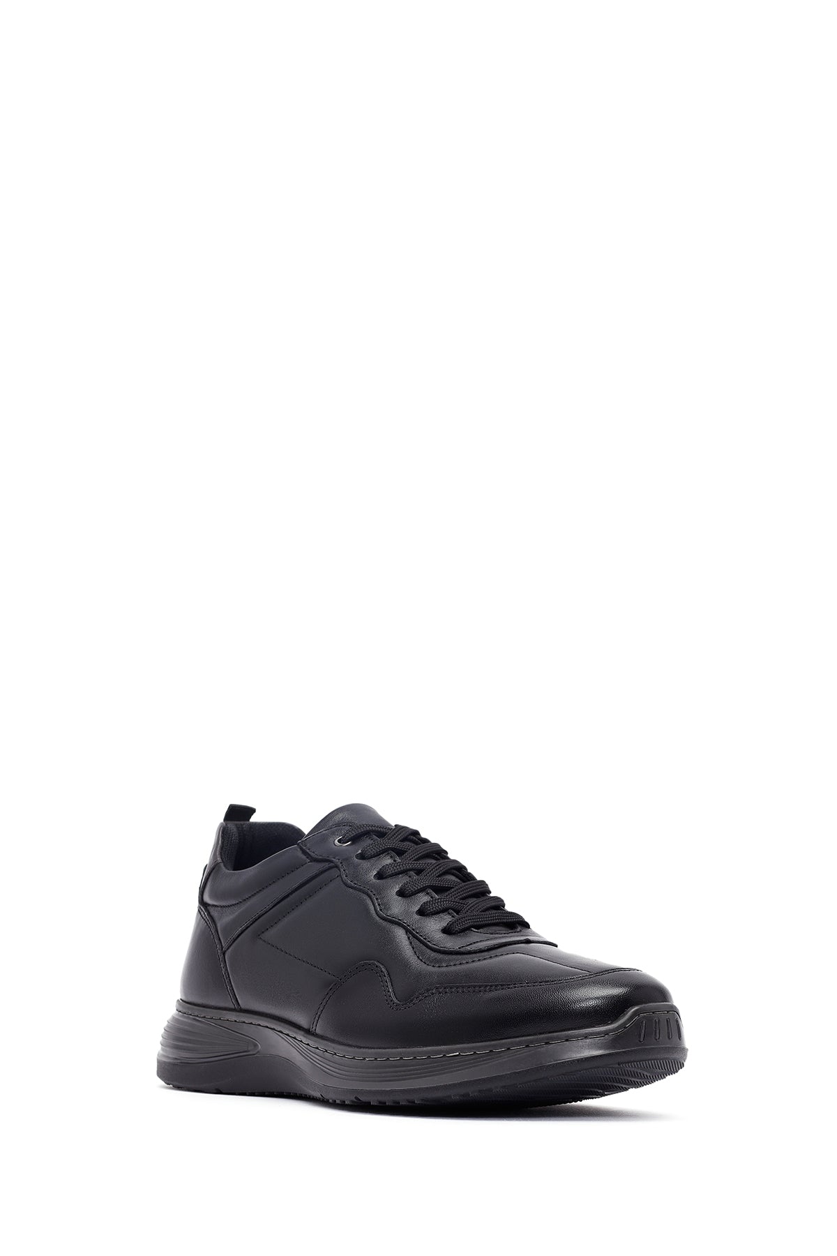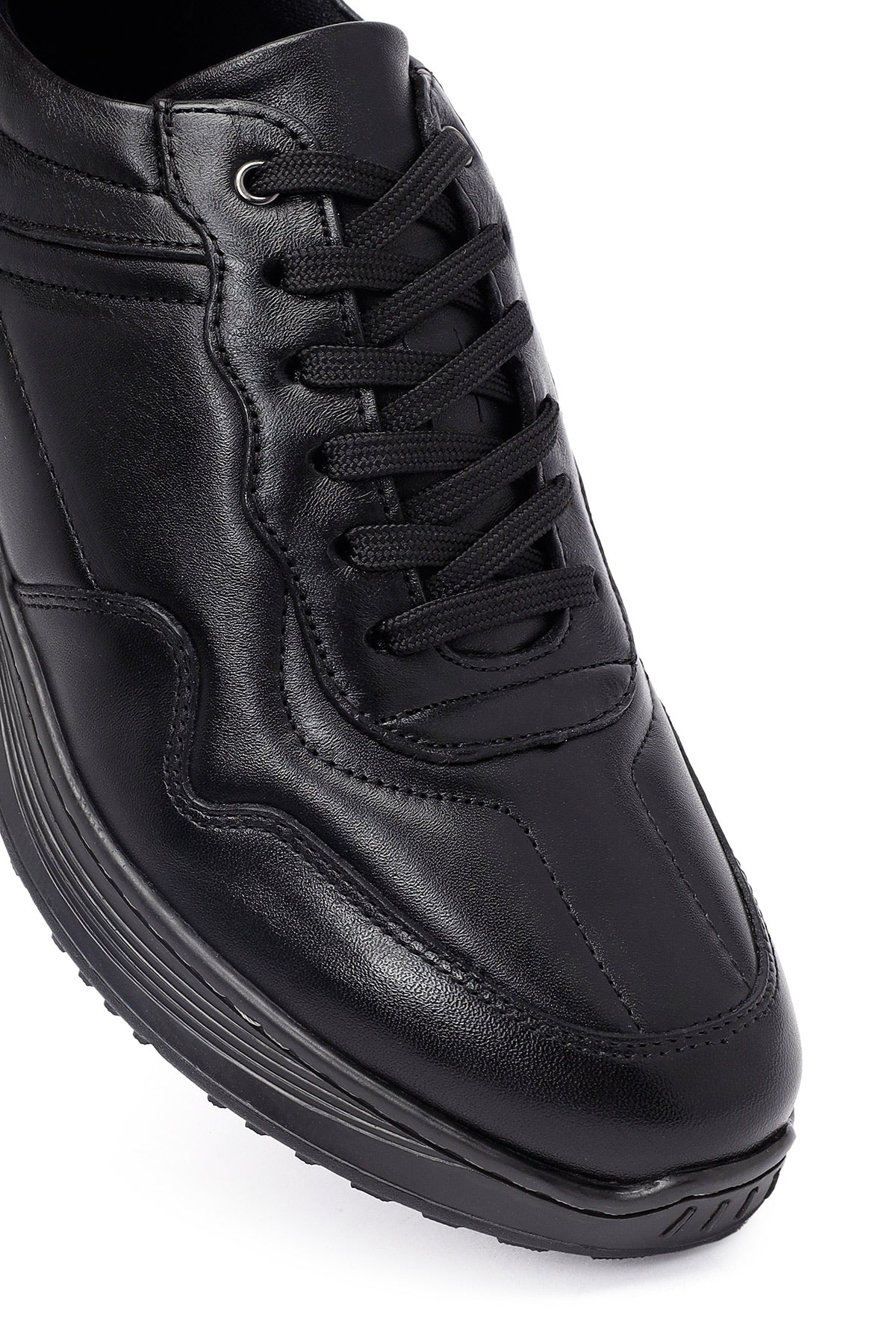 Erkek Siyah Bağcıklı Deri Casual Sneaker