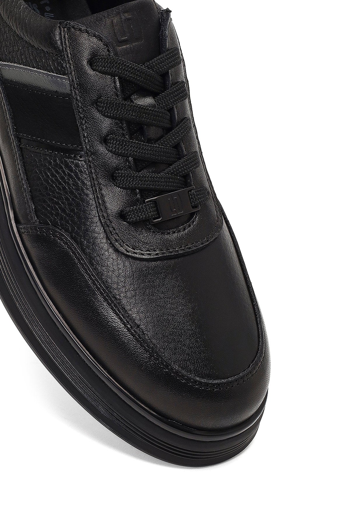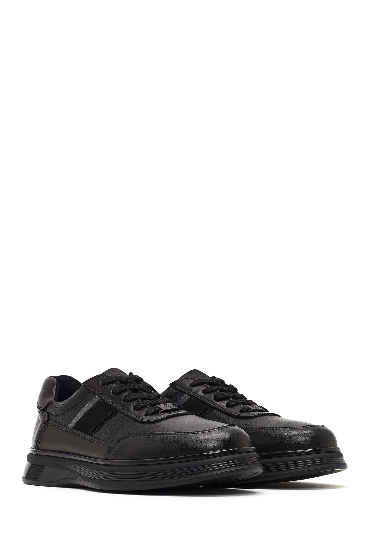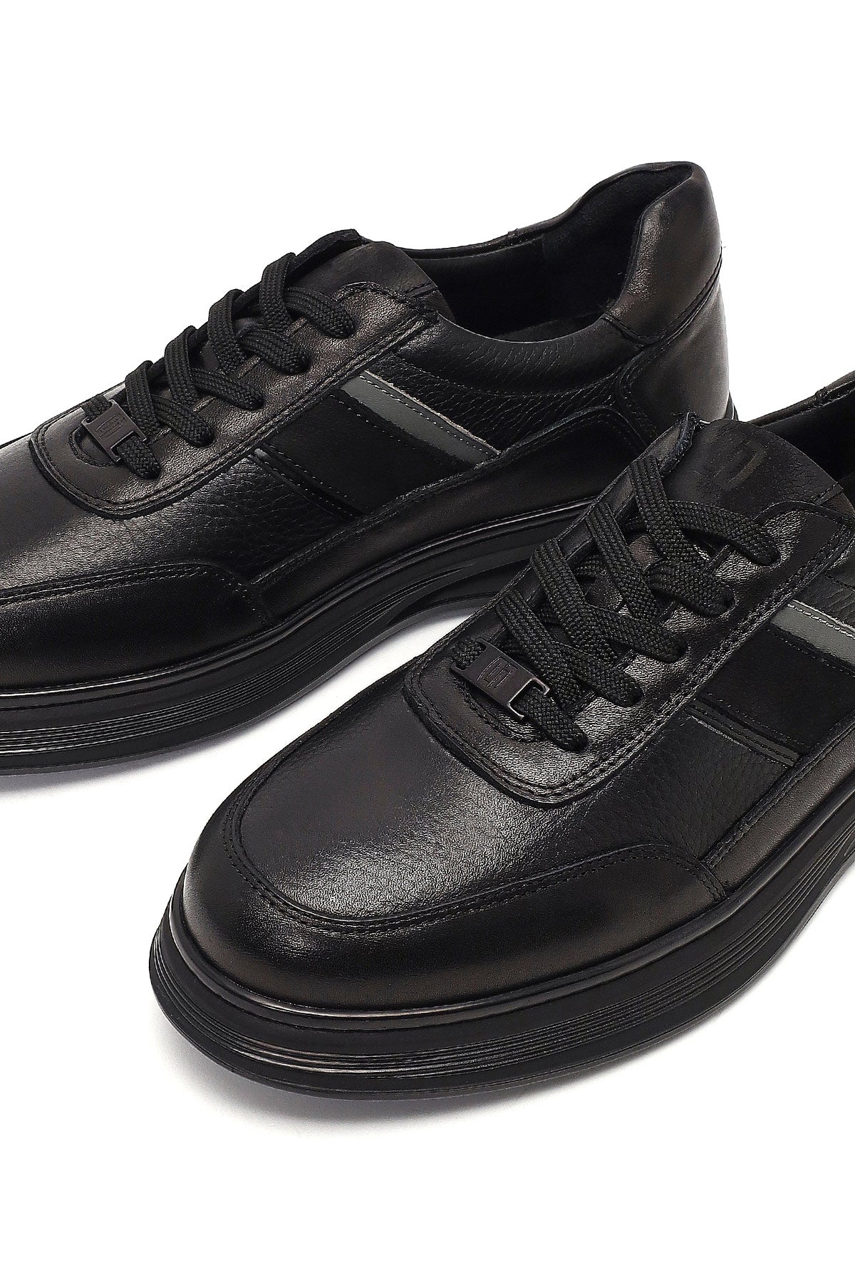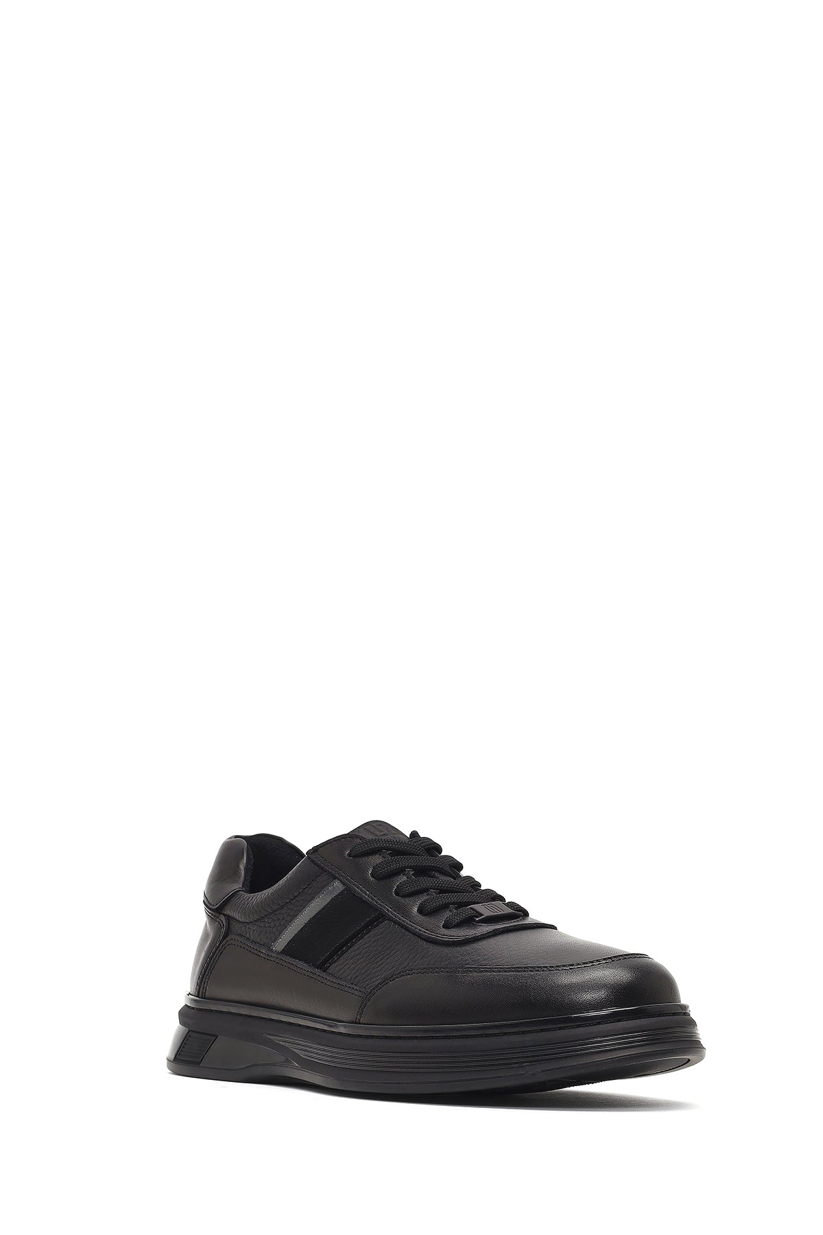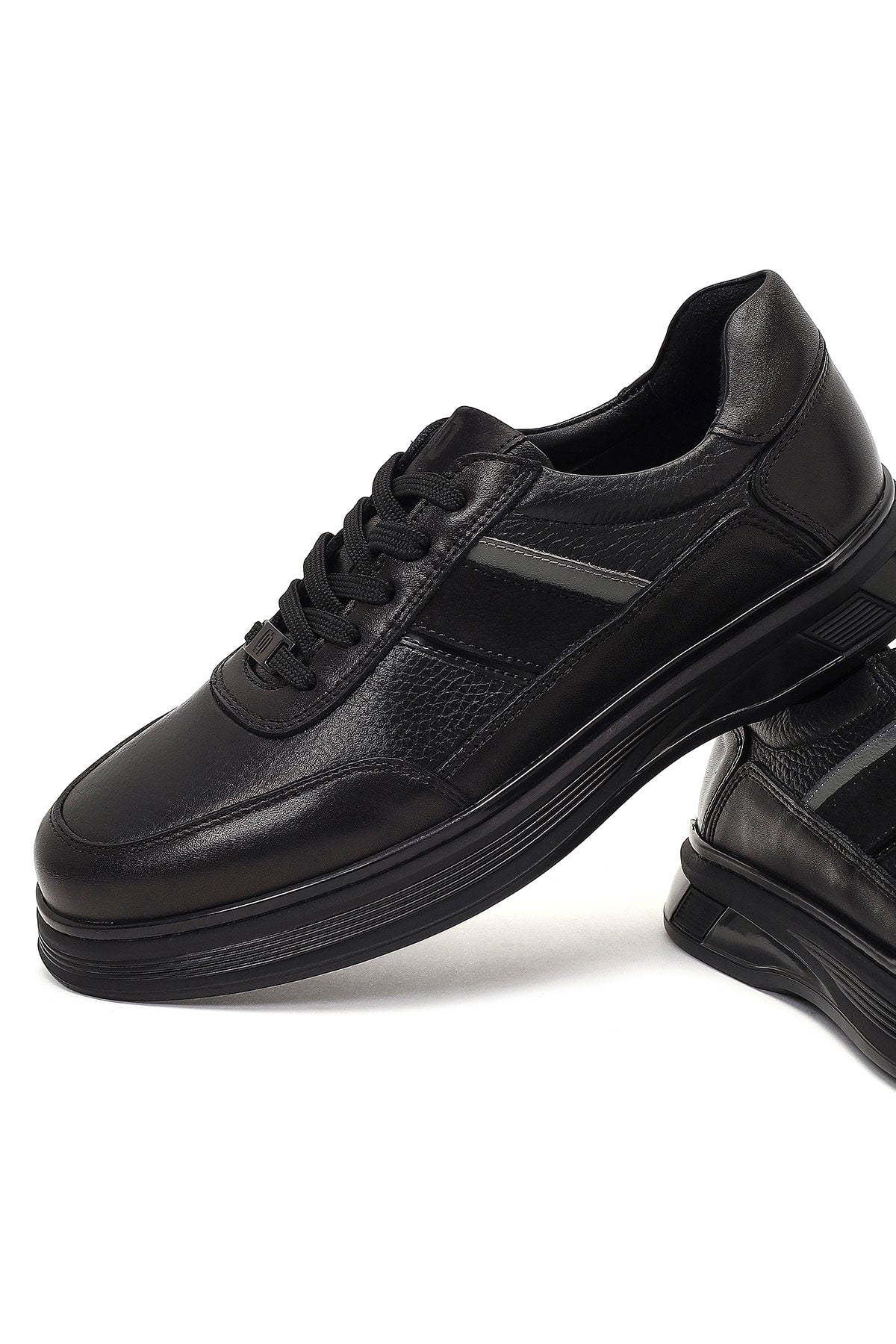 Erkek Siyah Bağcıklı Deri Casual Sneaker
