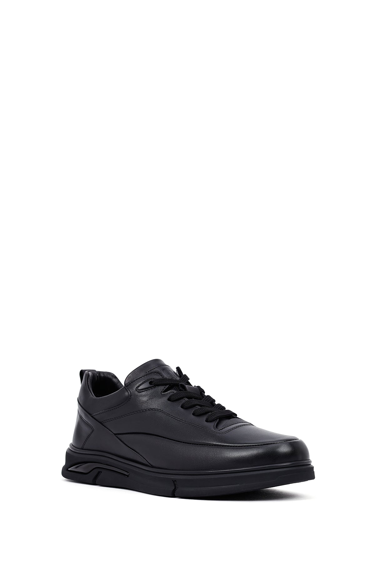 Erkek Siyah Bağcıklı Deri Casual Sneaker