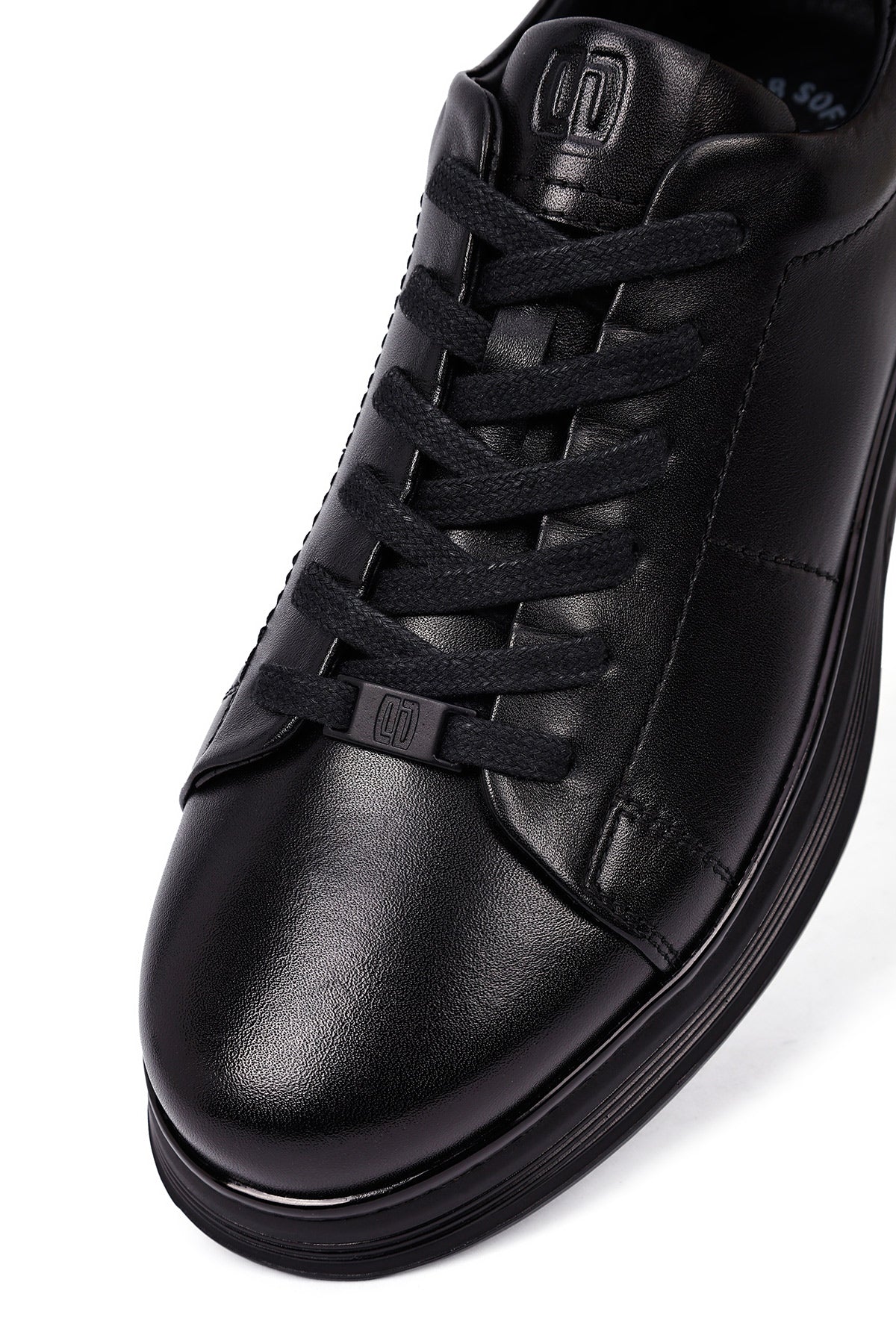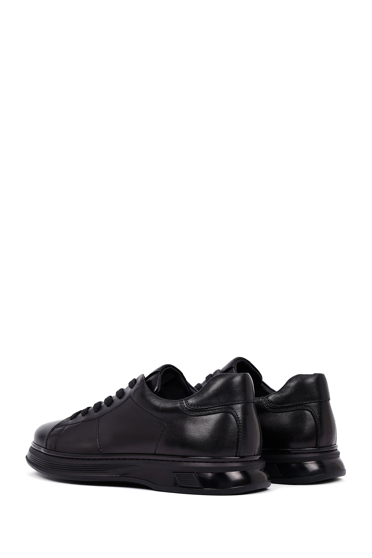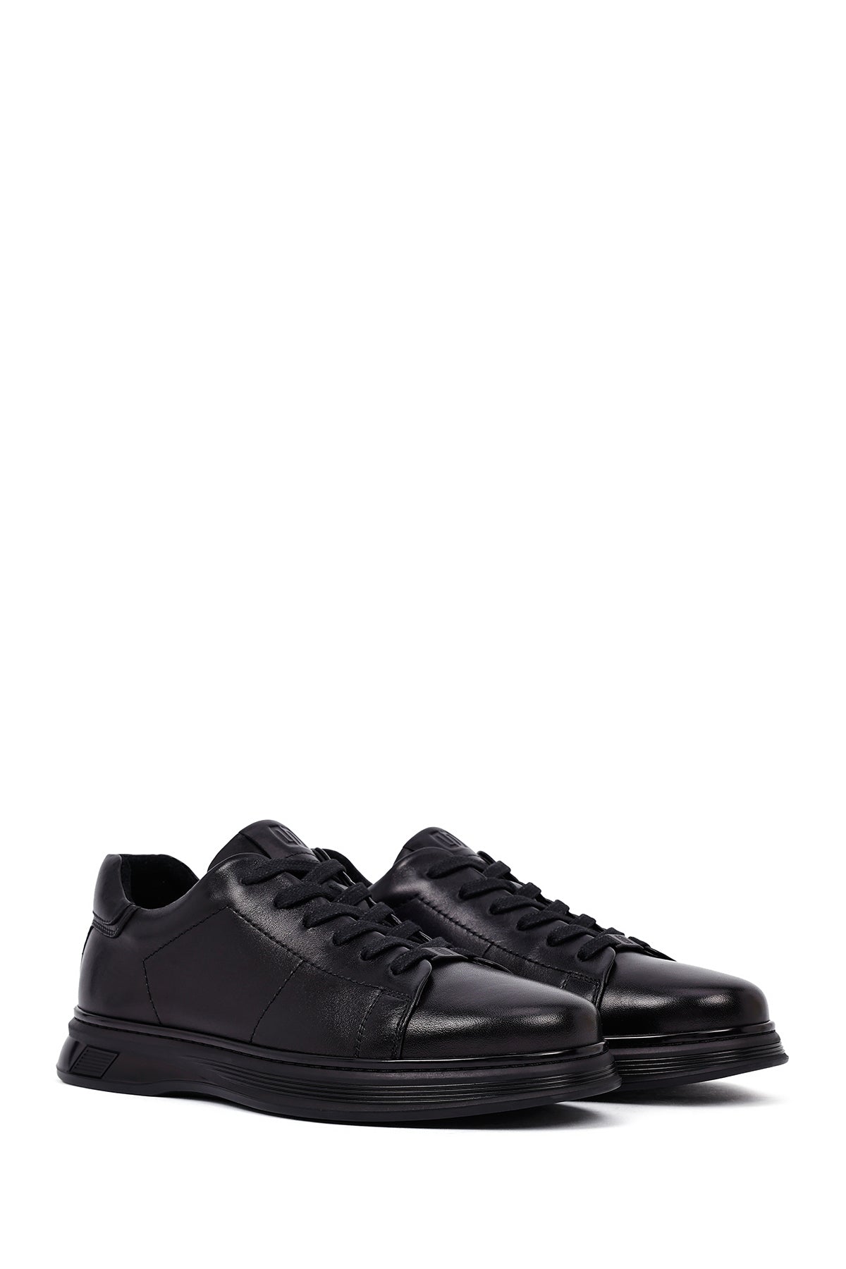 Erkek Siyah Bağcıklı Deri Casual Sneaker
