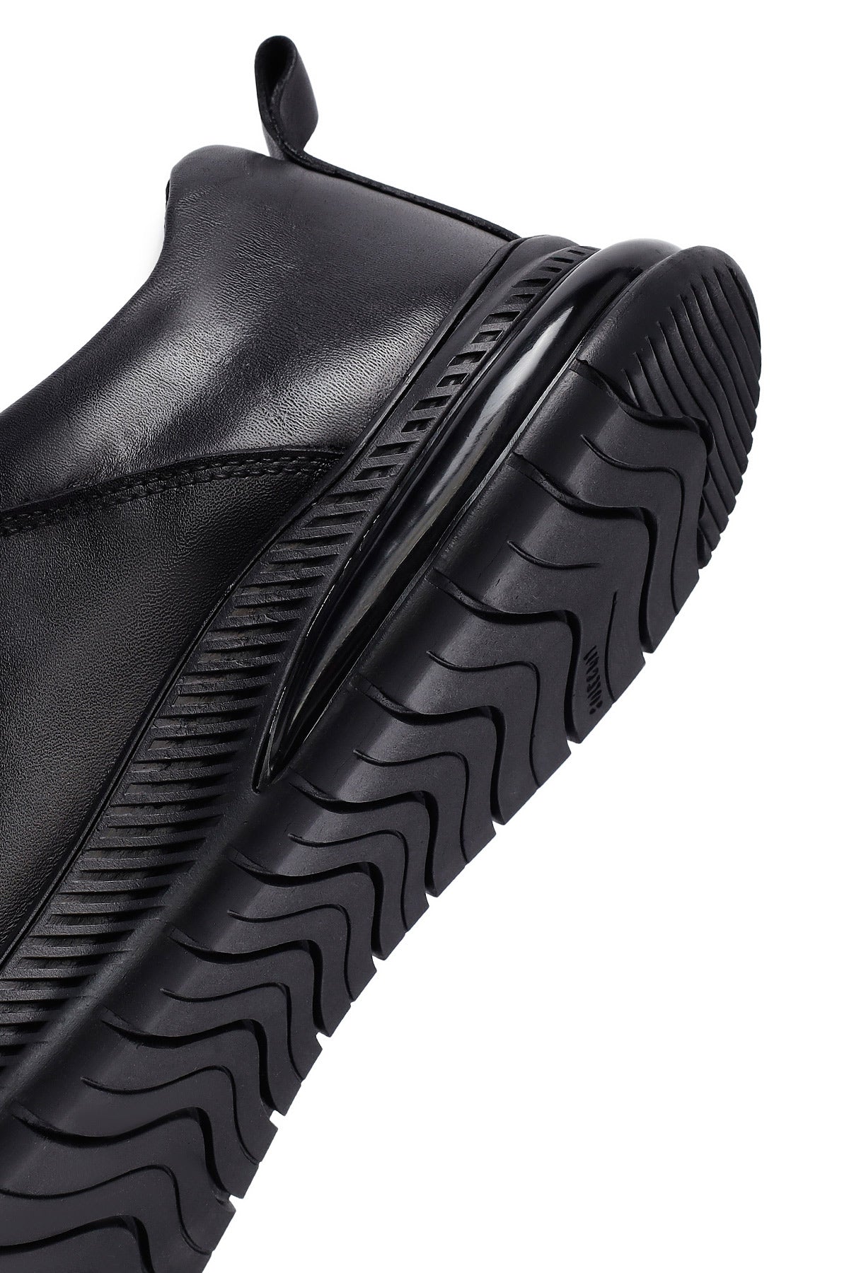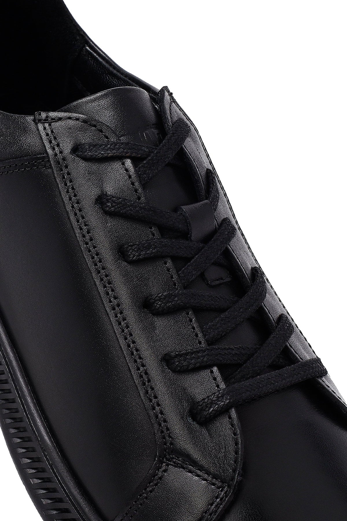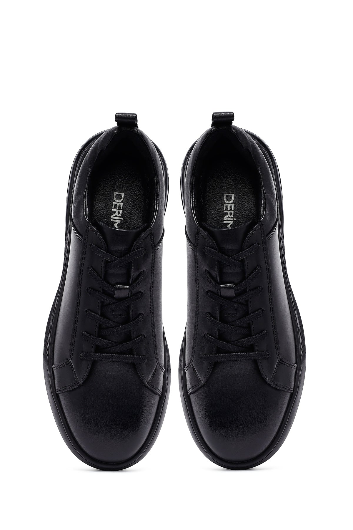 Erkek Siyah Bağcıklı Deri Casual Sneaker
