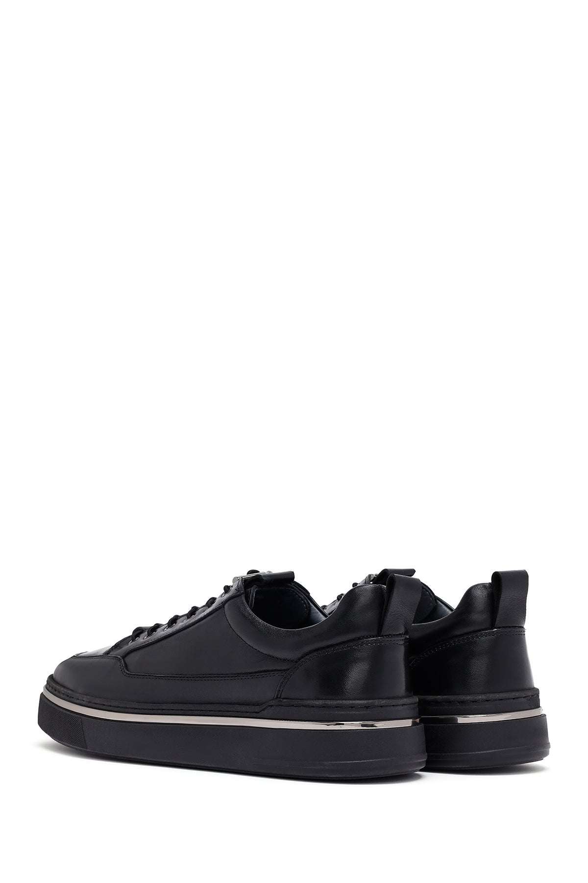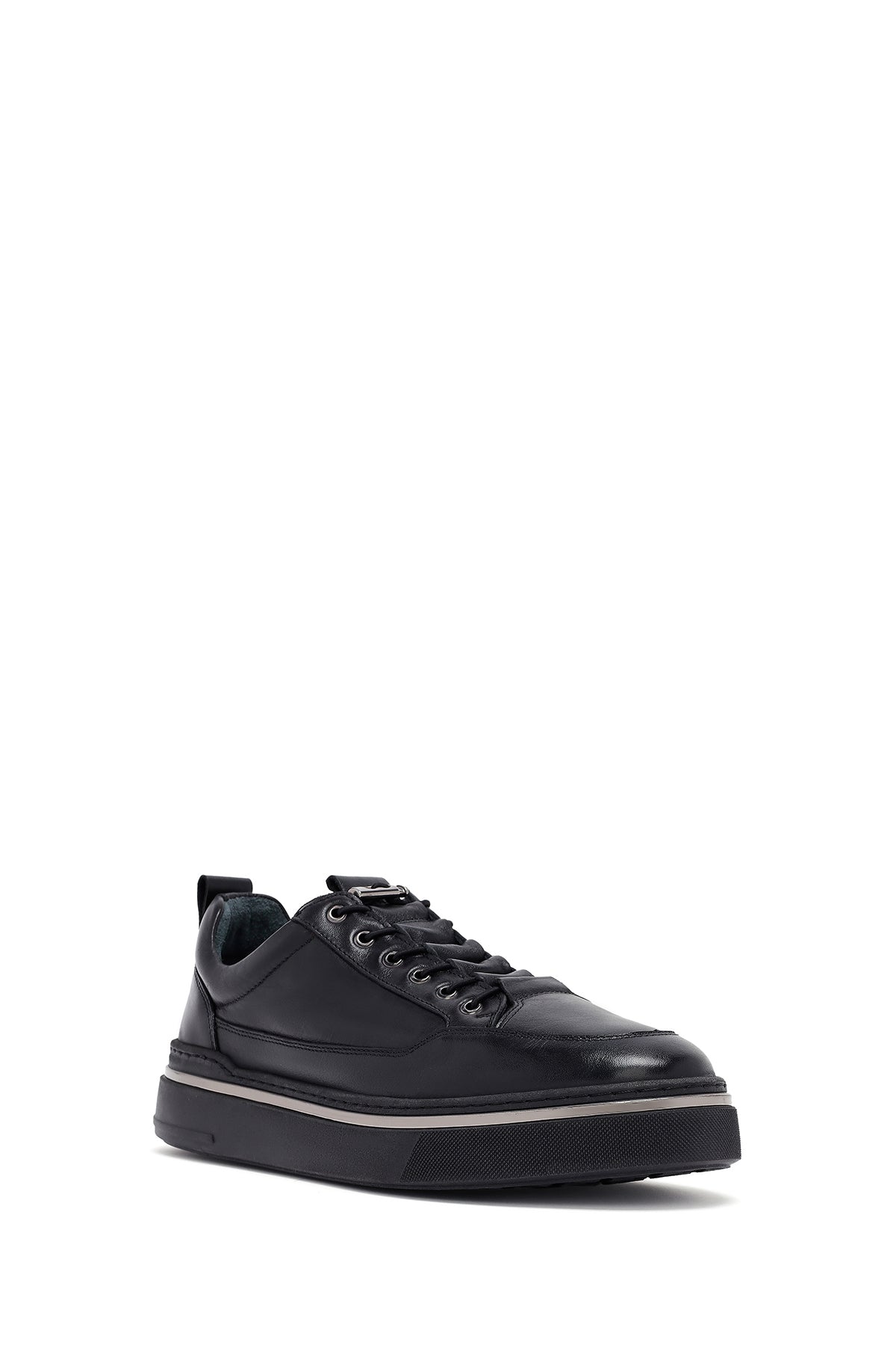 Erkek Siyah Bağcıklı Deri Sneaker
