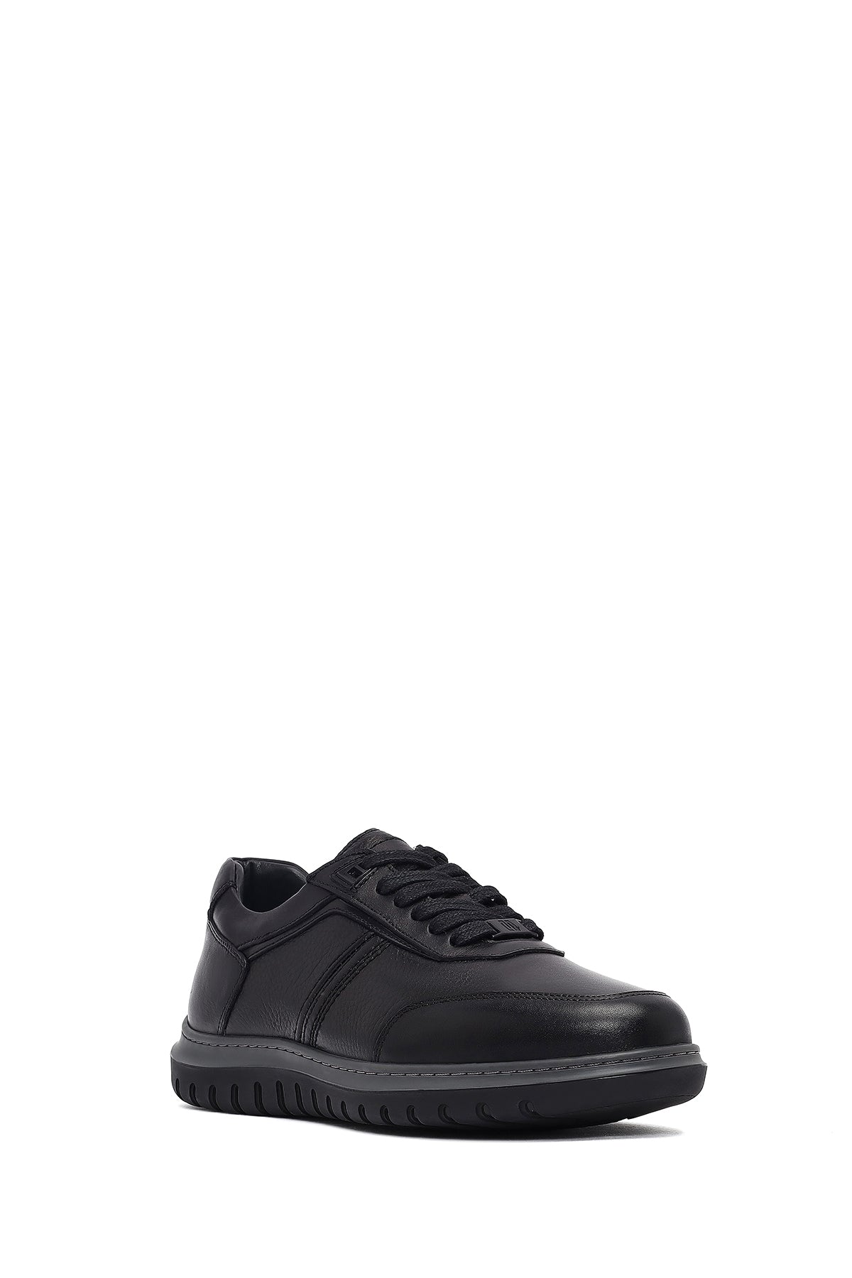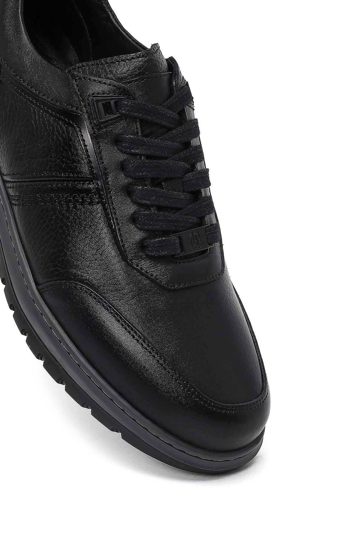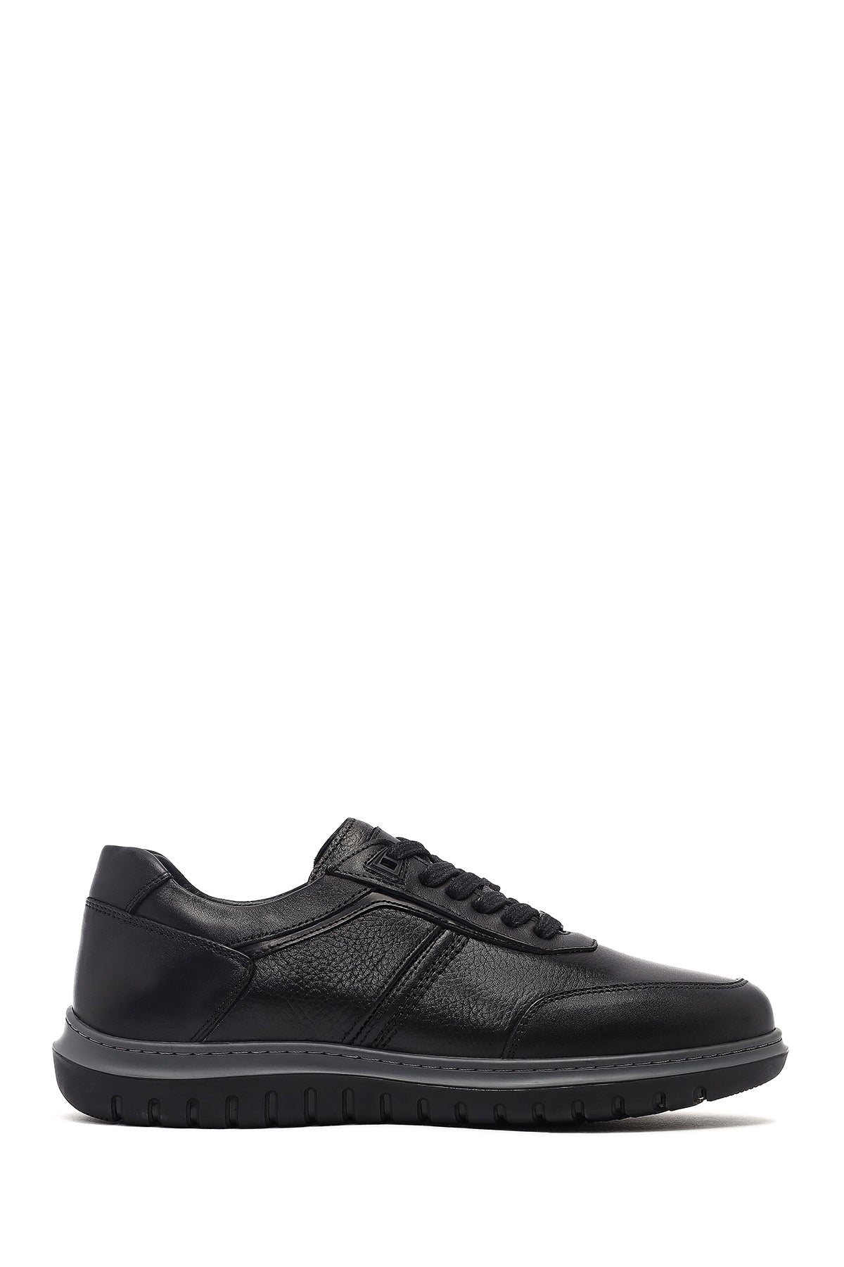 Erkek Siyah Bağcıklı Deri Sneaker