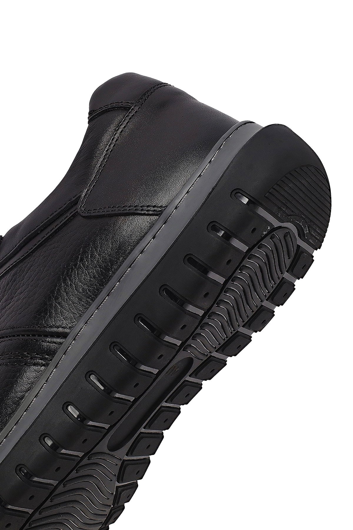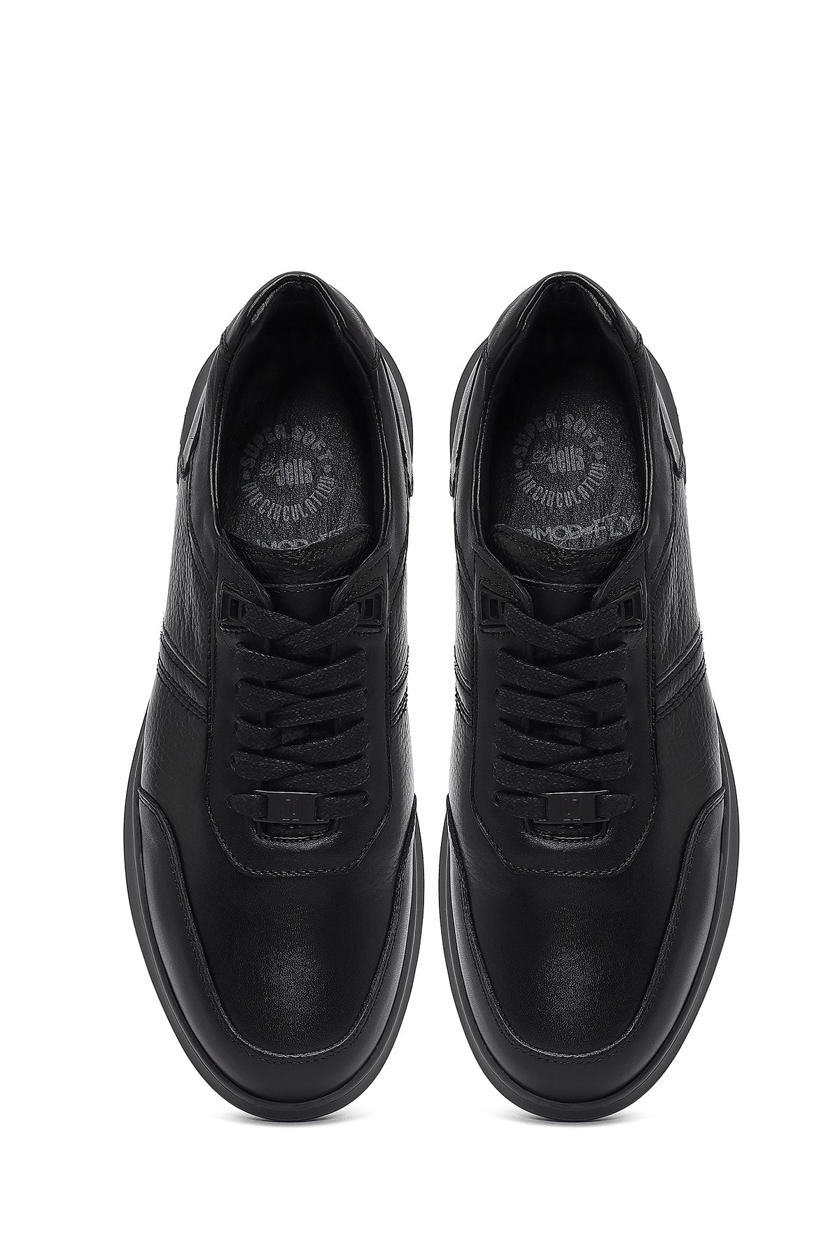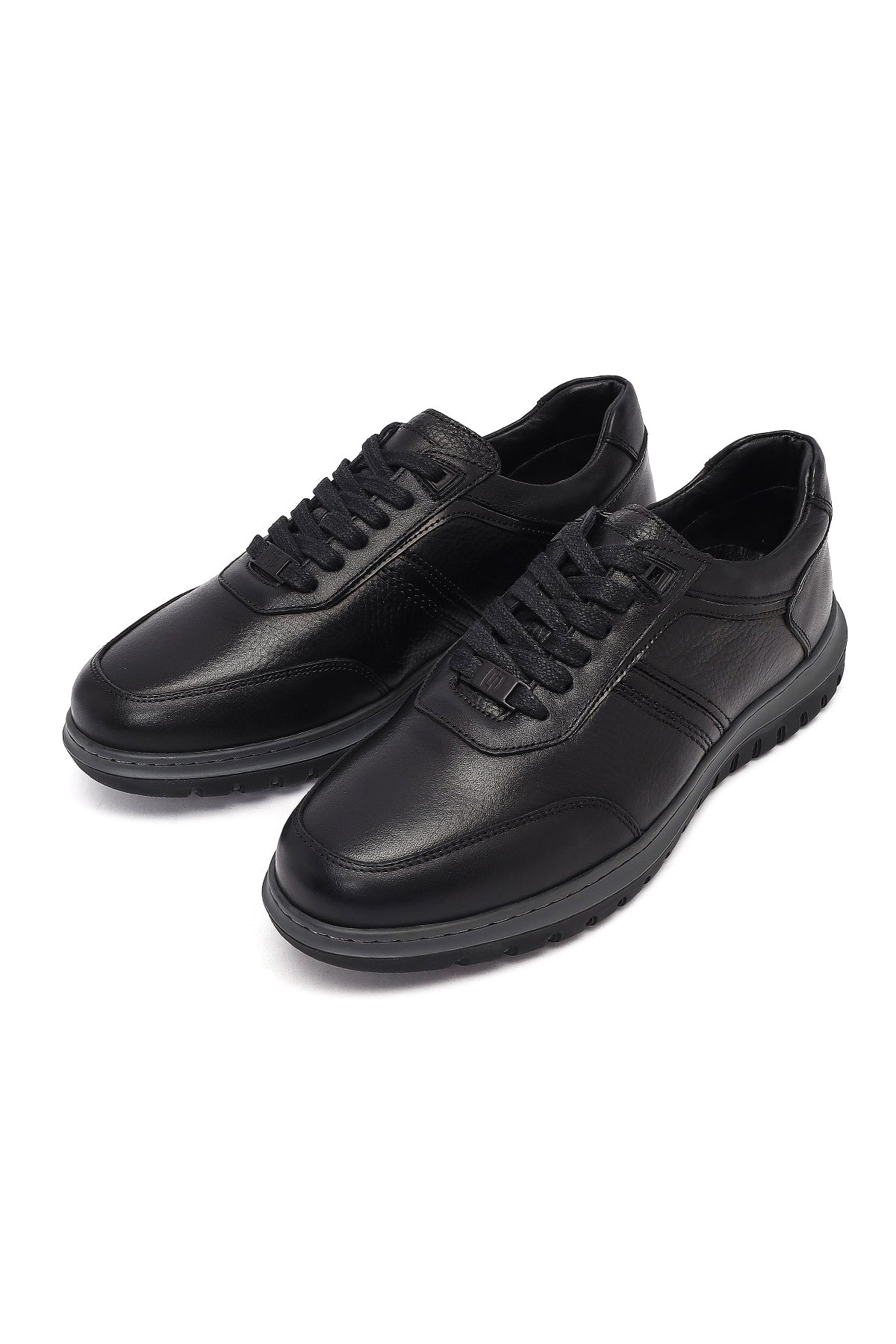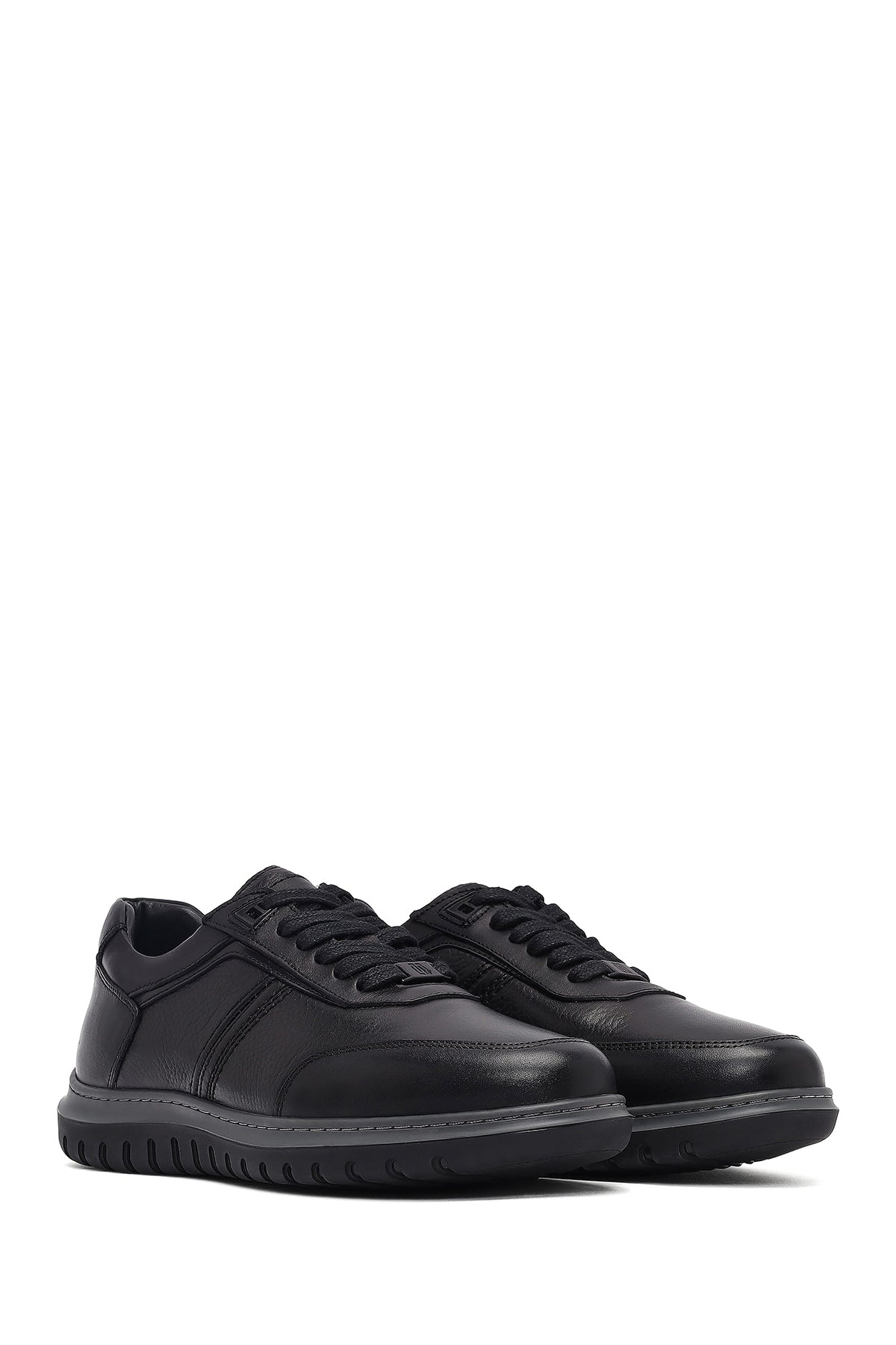 Erkek Siyah Bağcıklı Deri Sneaker