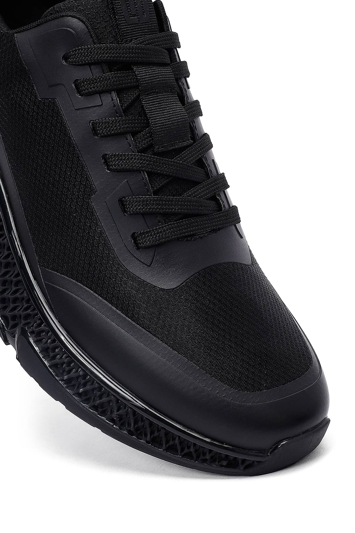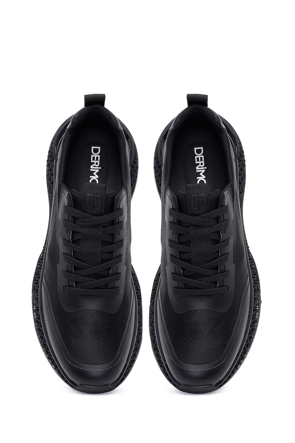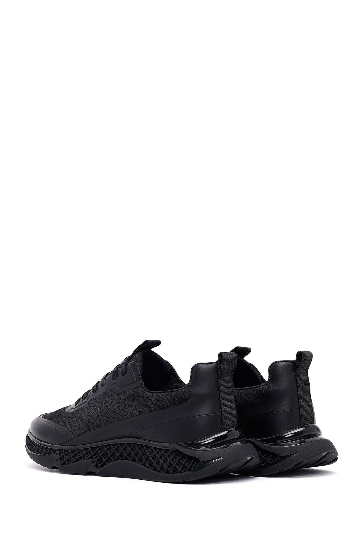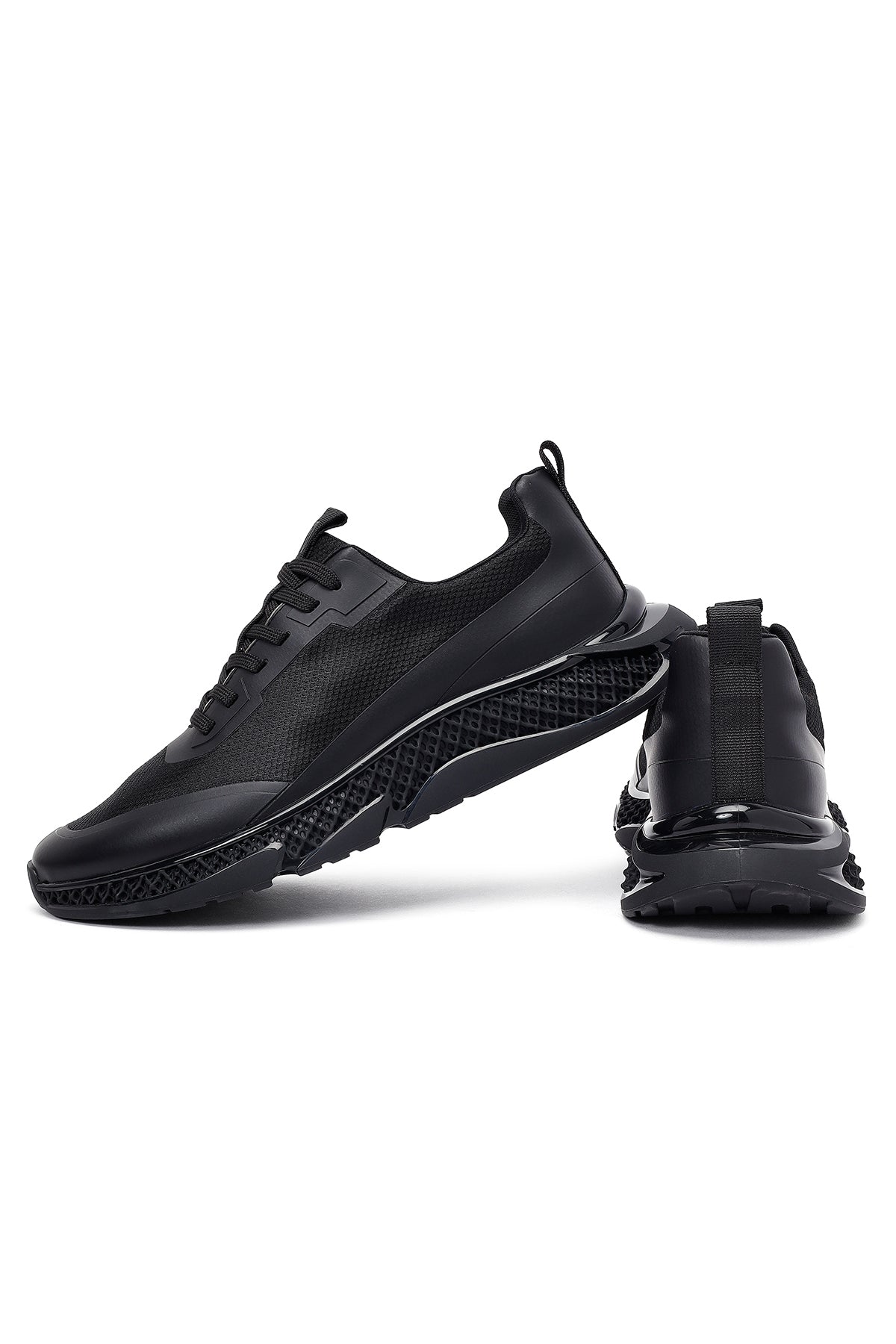 Erkek Siyah Bağcıklı Kalın Tabanlı Kumaş Sneaker