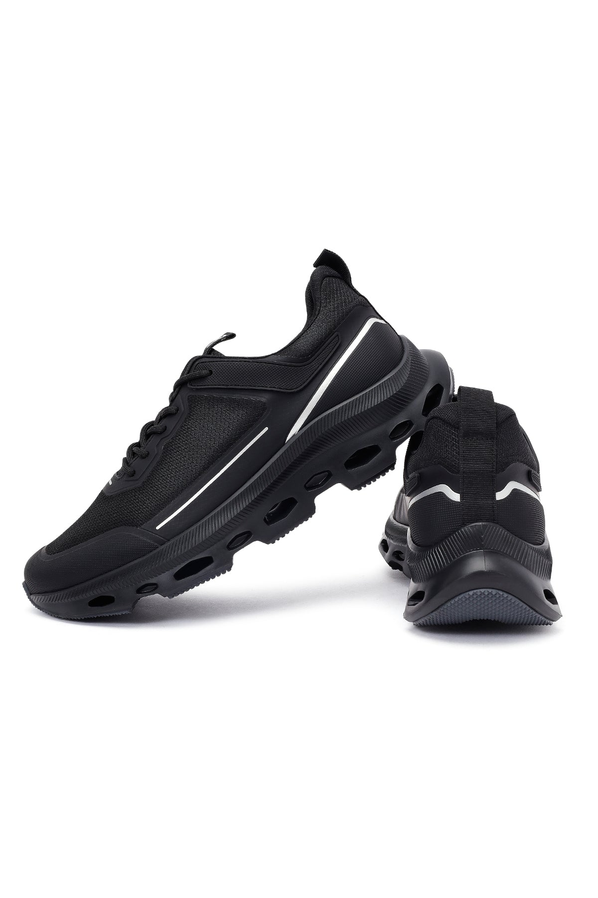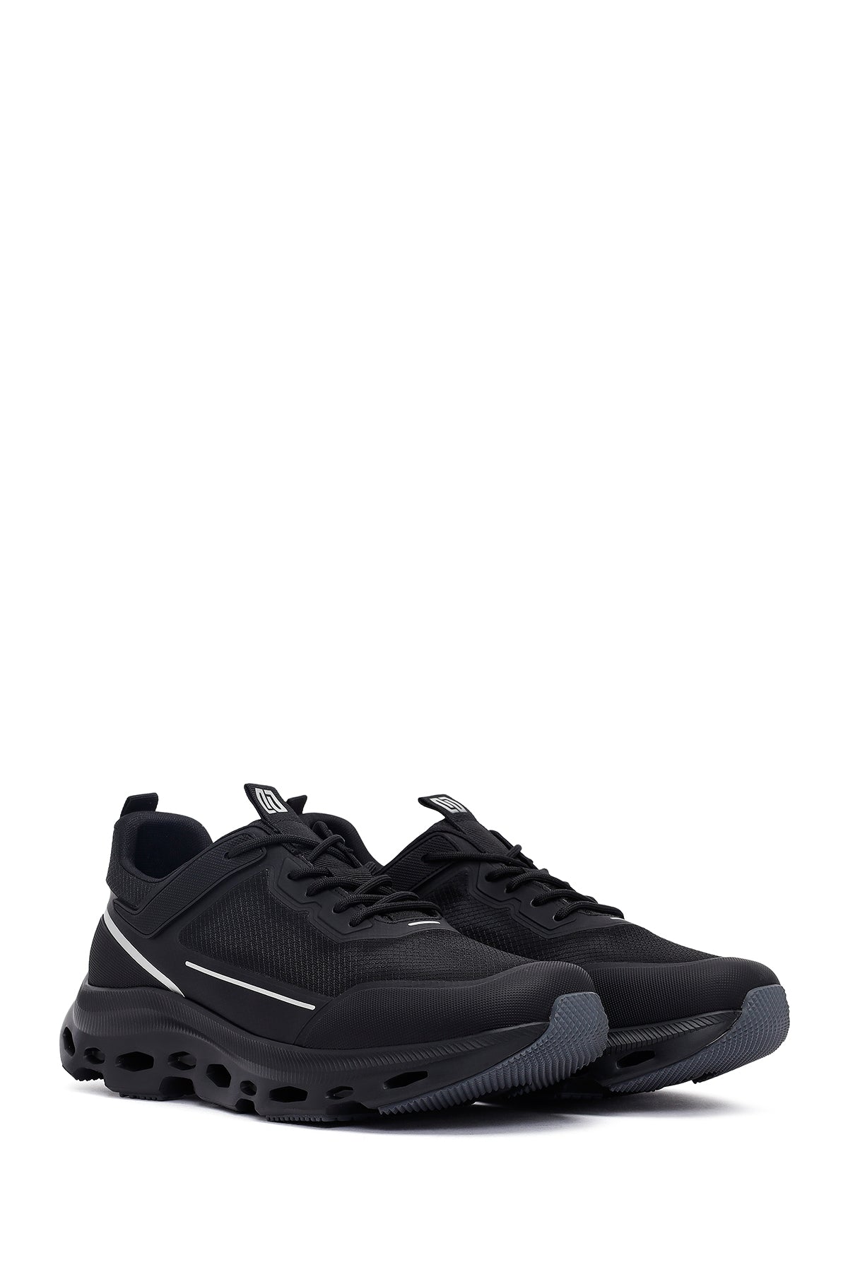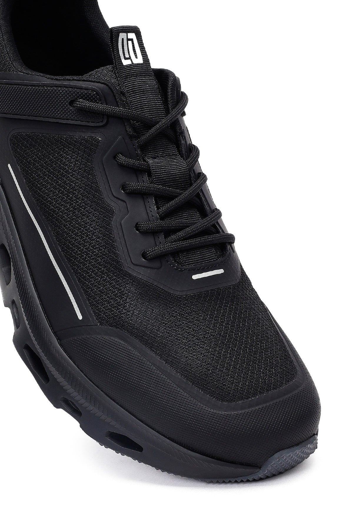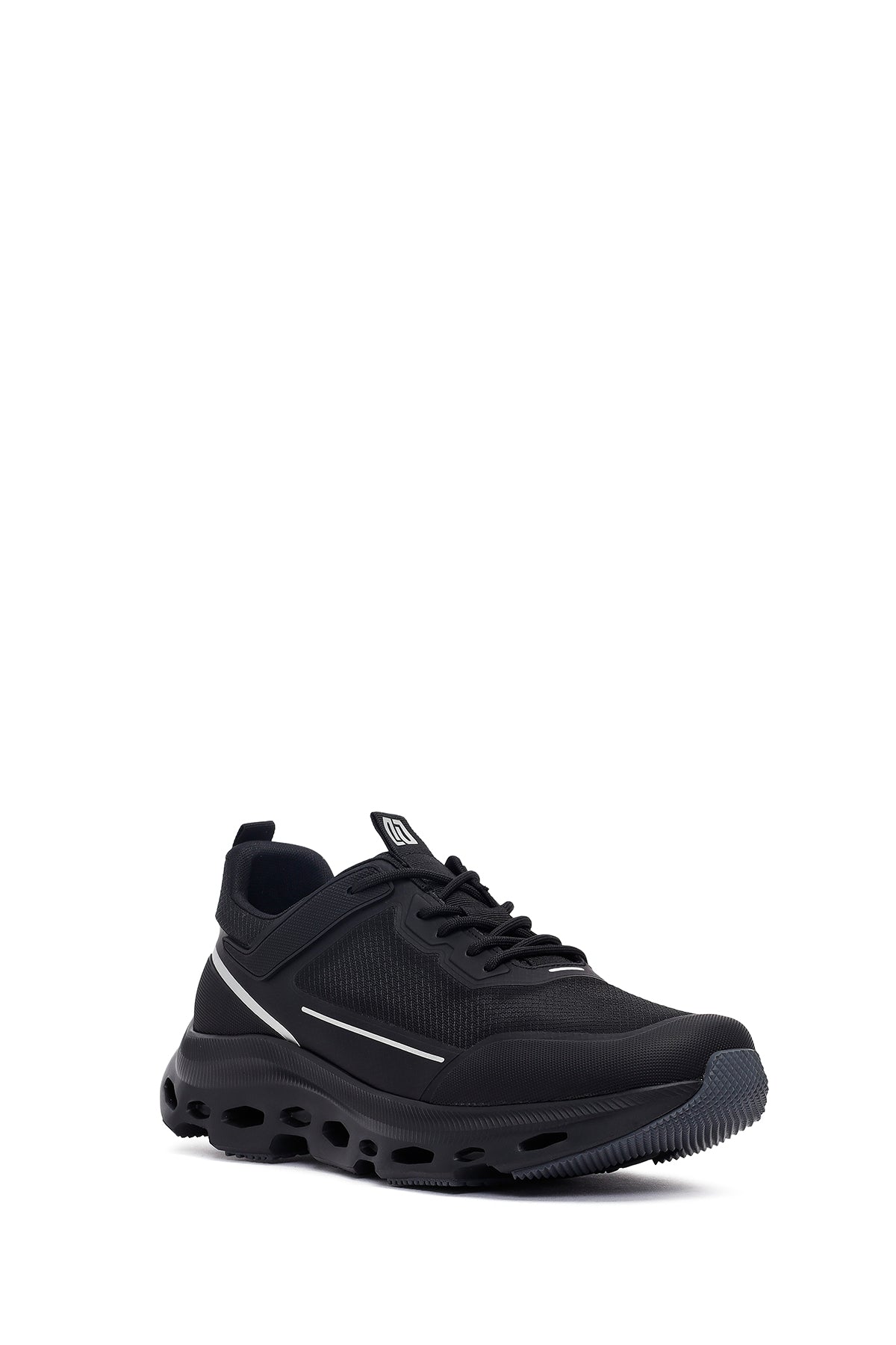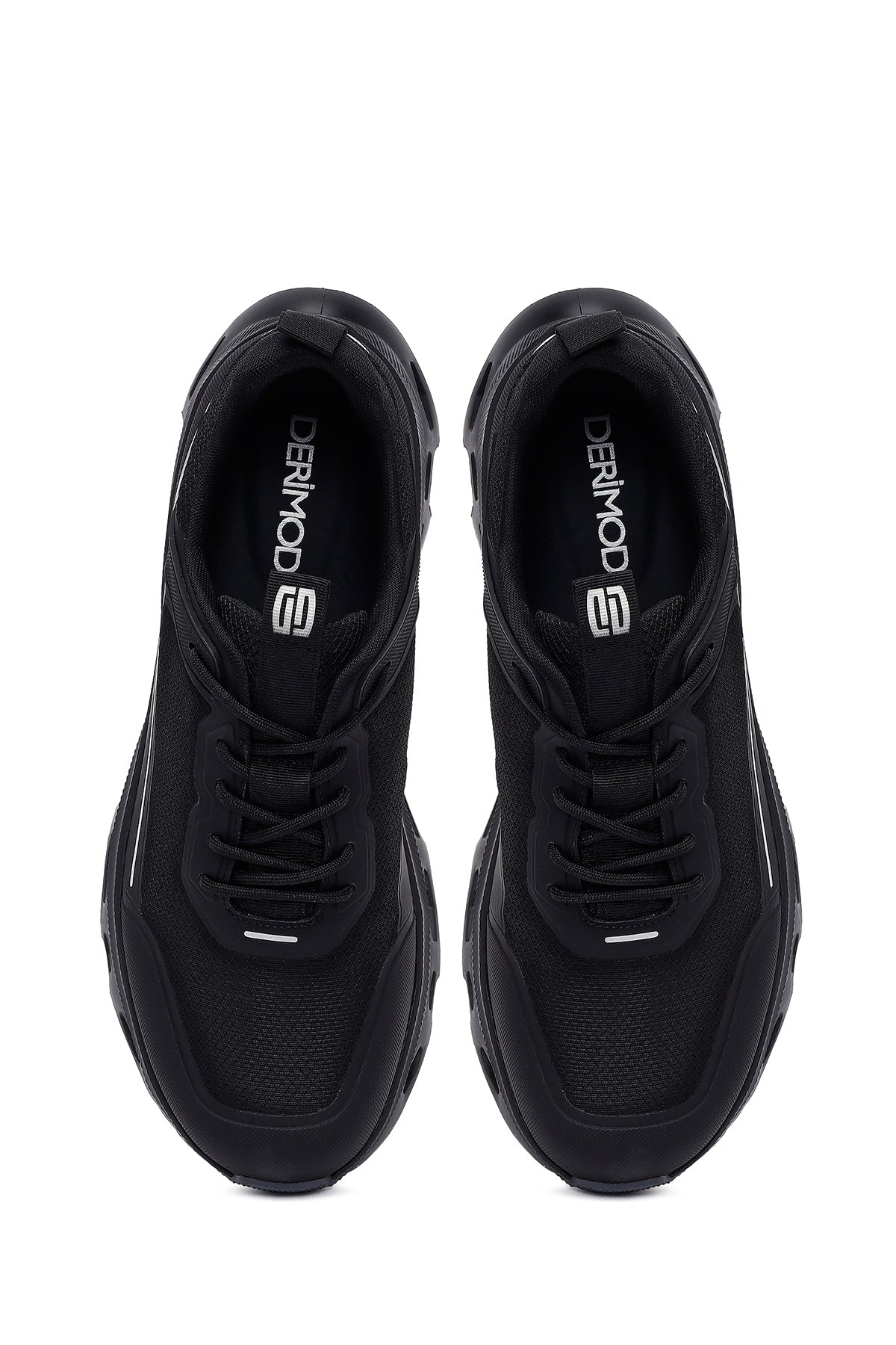Erkek Siyah Bağcıklı Kalın Tabanlı Kumaş Sneaker