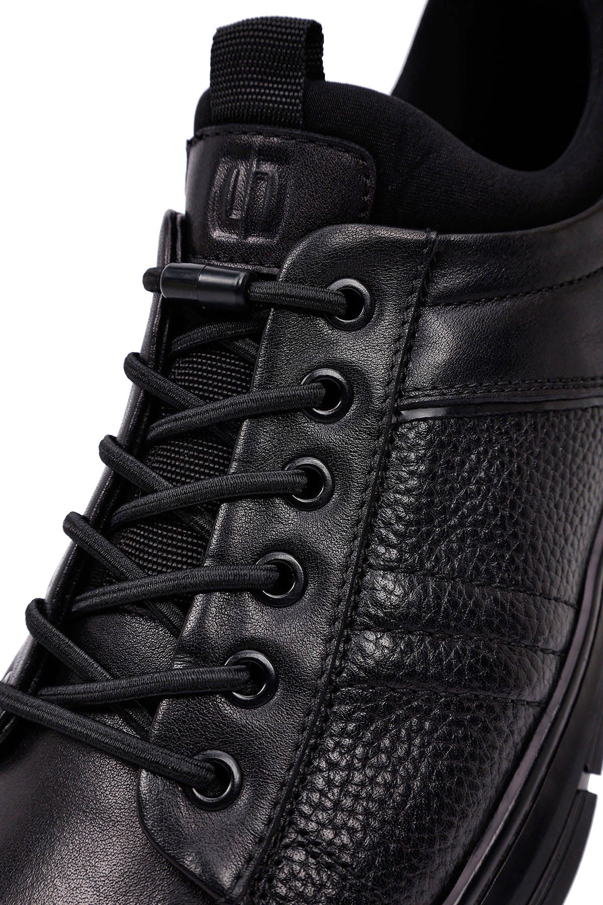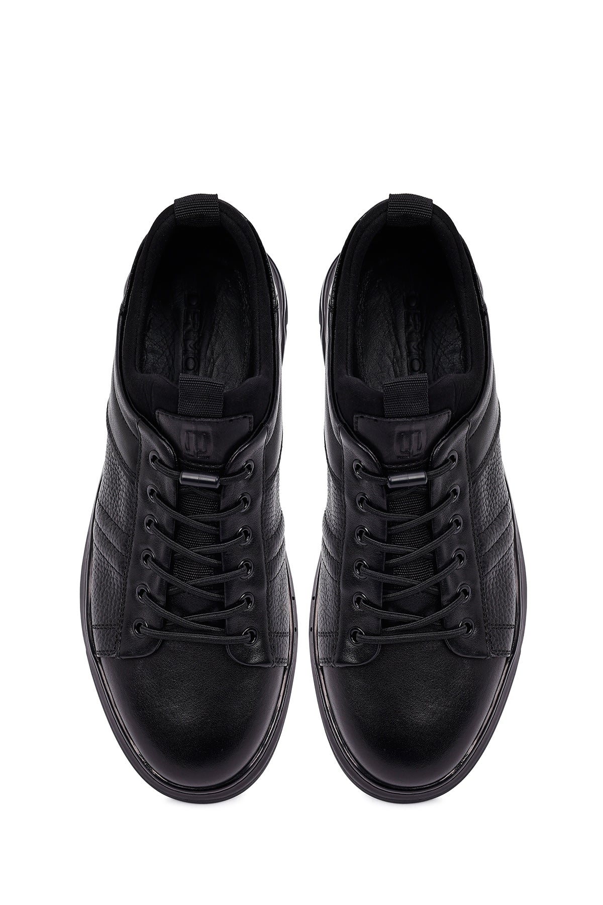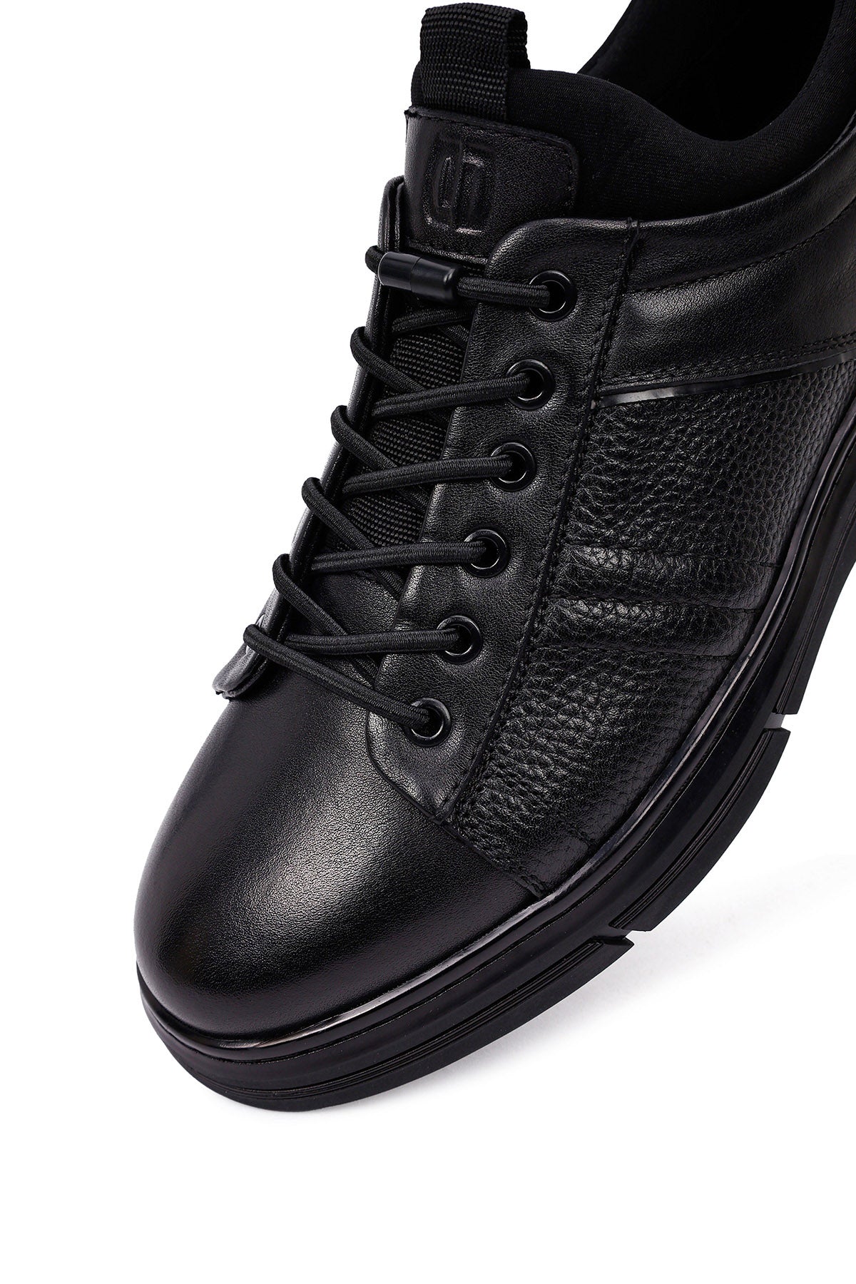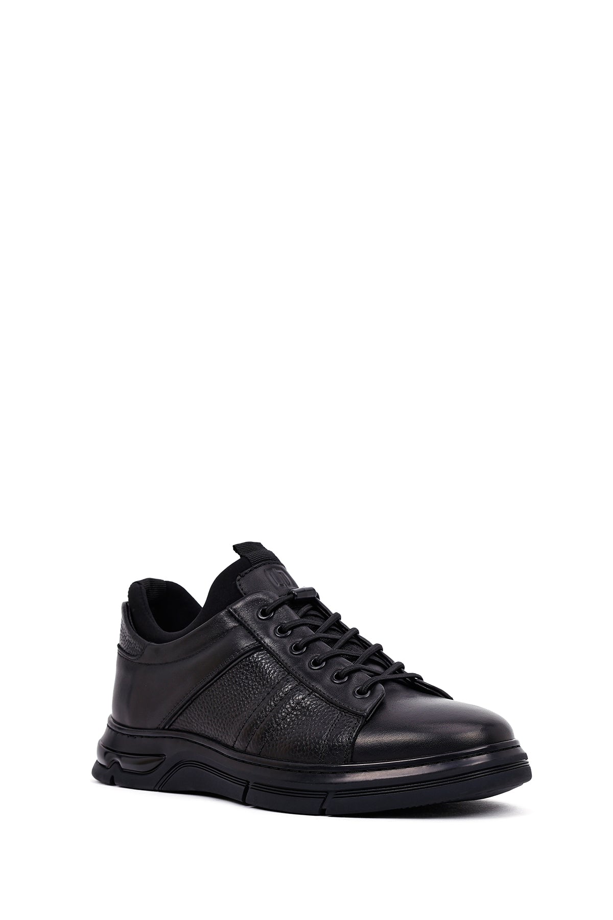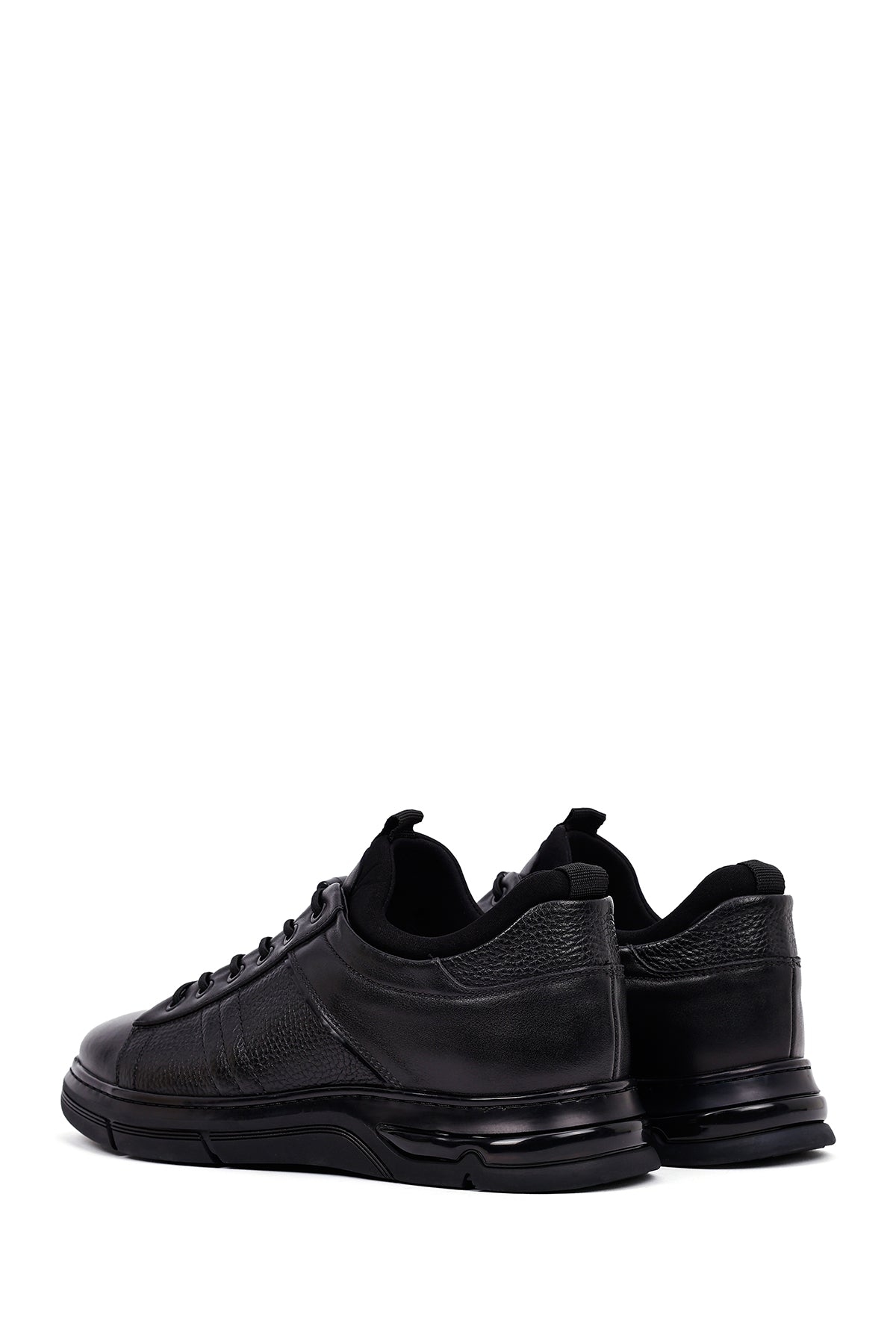 Erkek Siyah Bağcıklı Kalın Tabanlı Deri Casual Sneaker