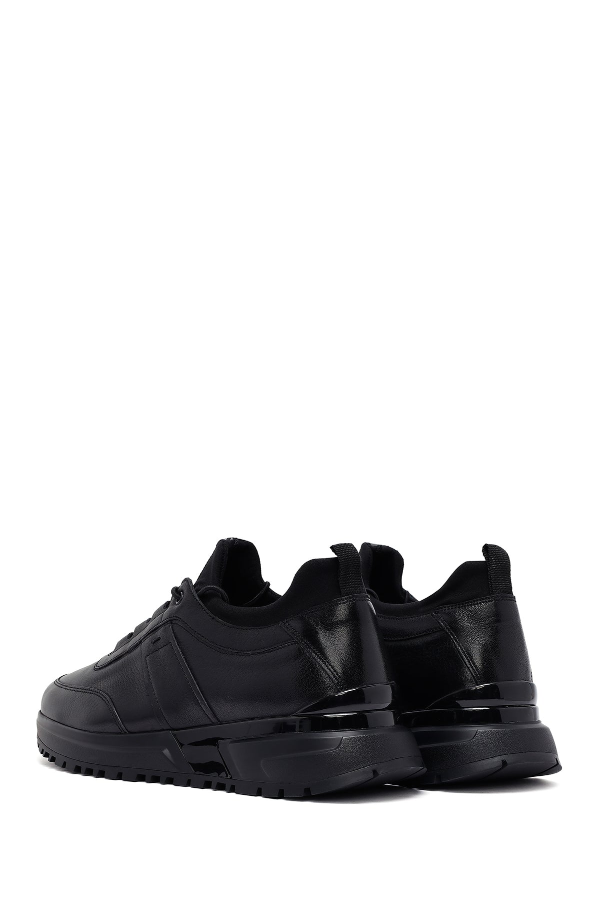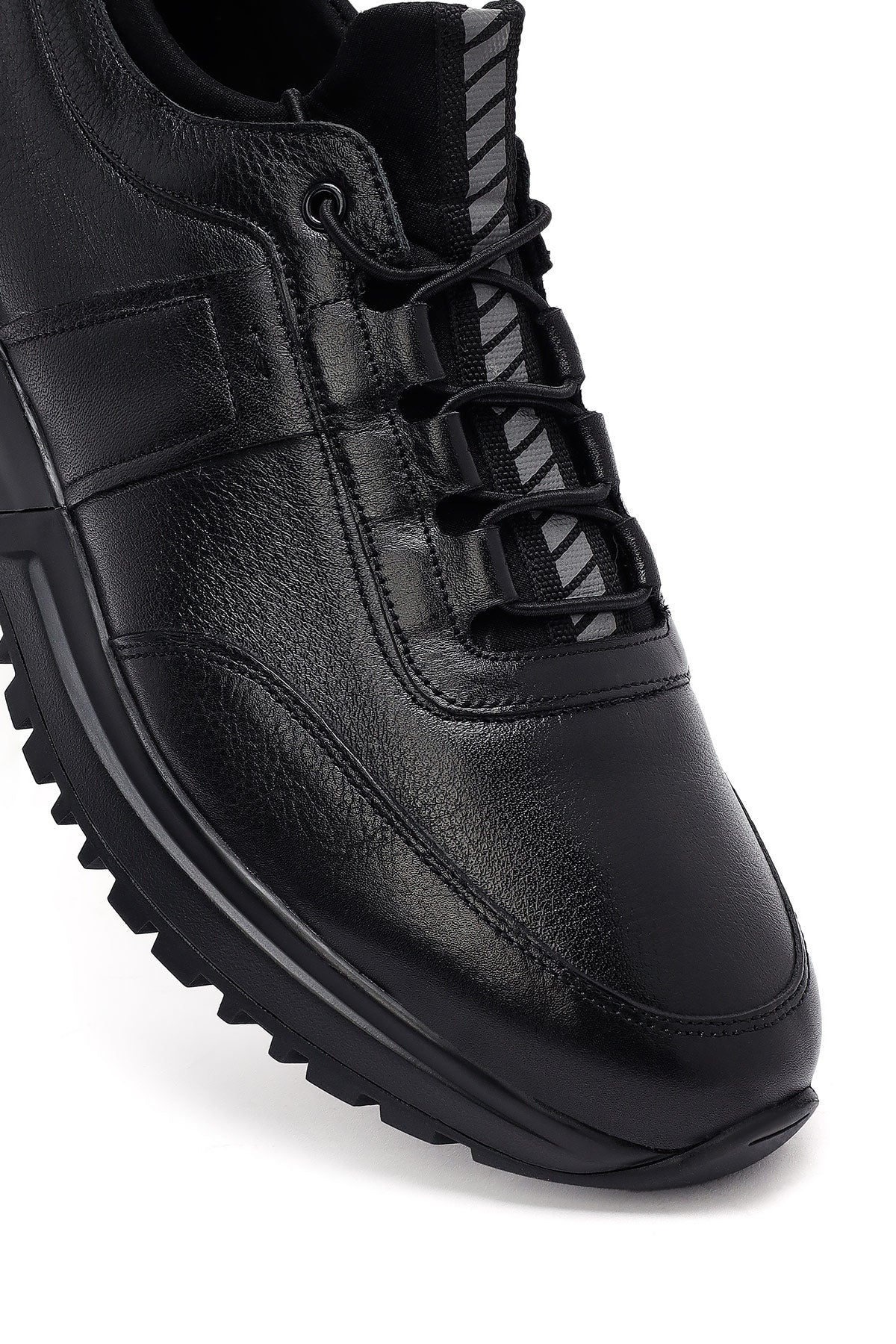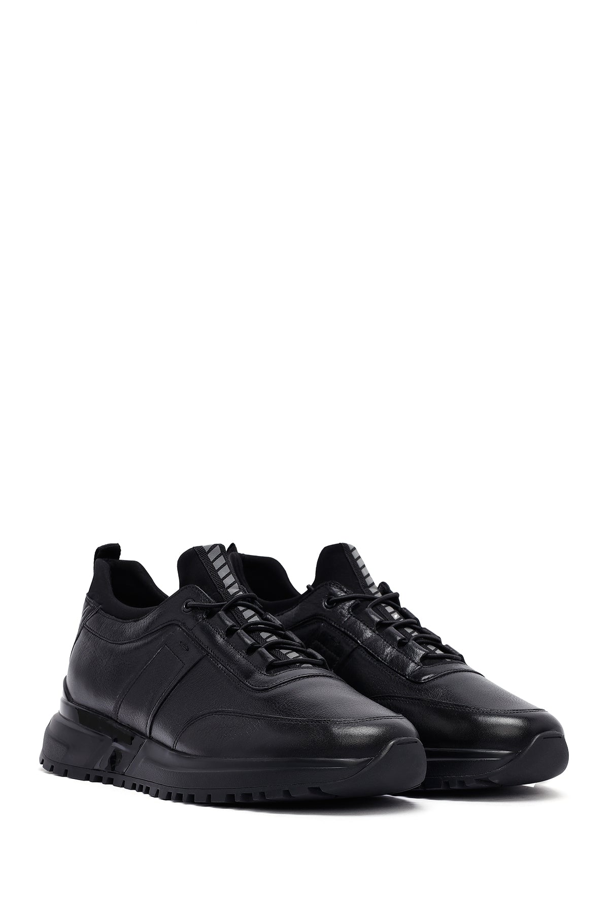 Erkek Siyah Bağcıklı Kalın Tabanlı Deri Casual Sneaker