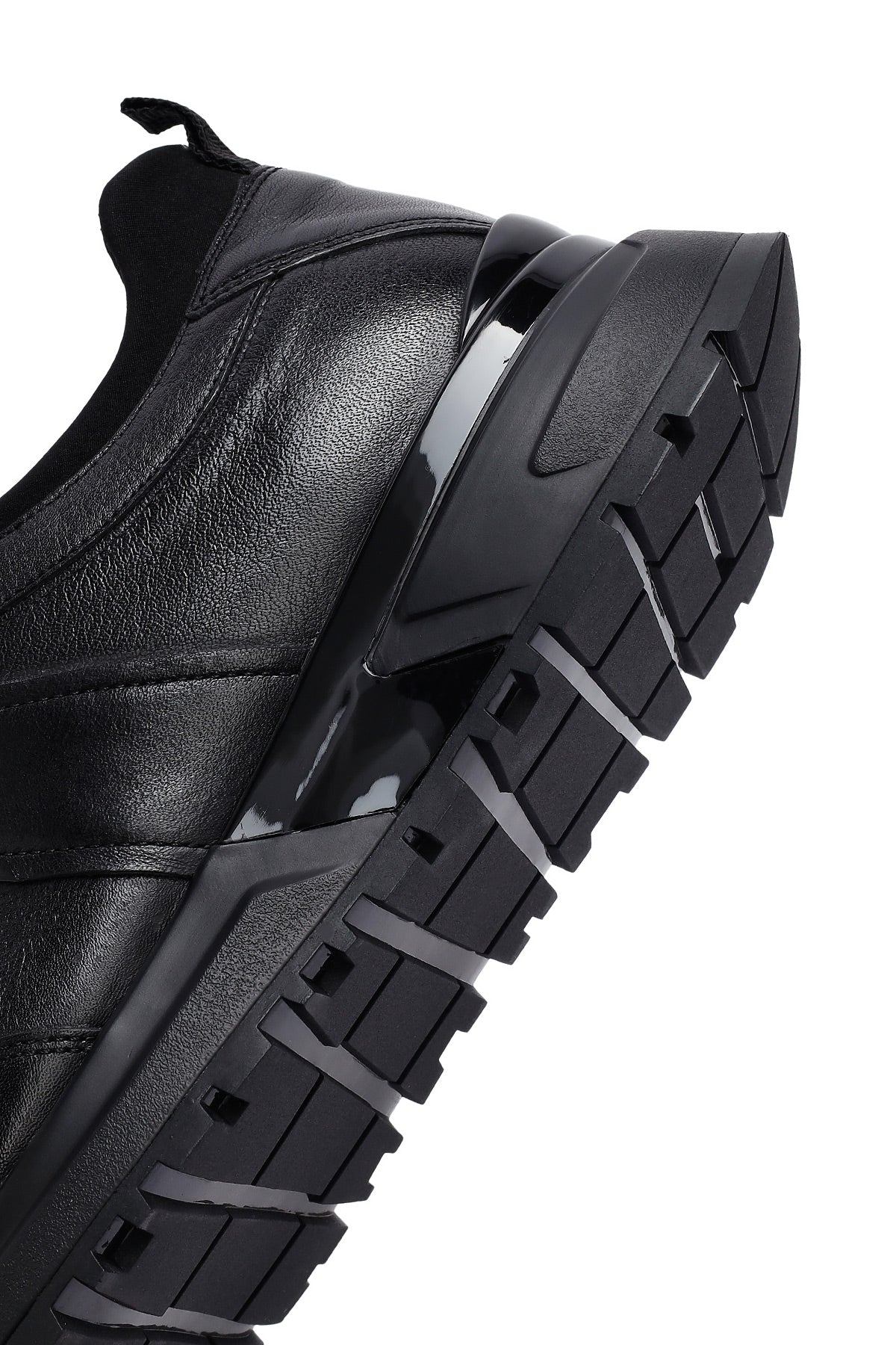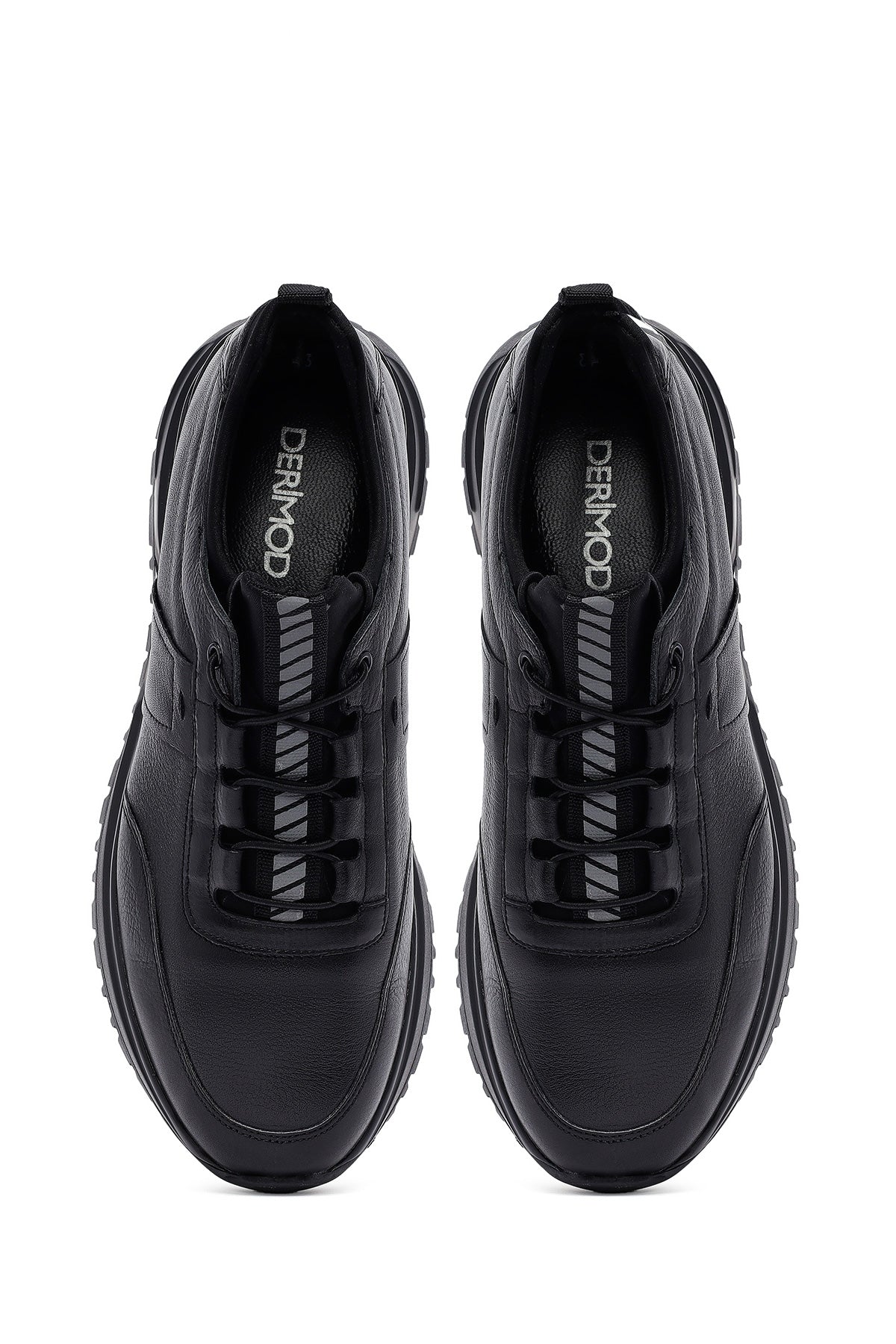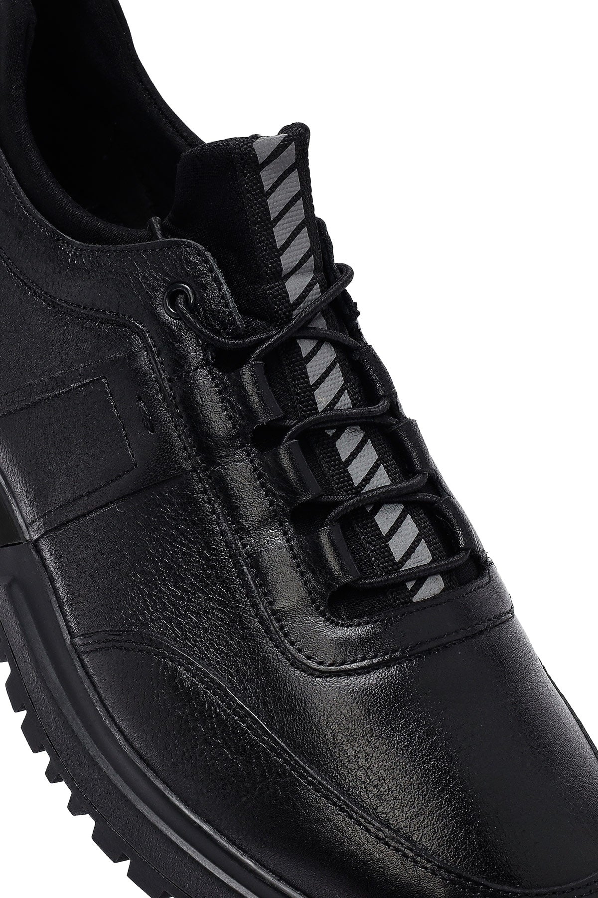 Erkek Siyah Bağcıklı Kalın Tabanlı Deri Casual Sneaker