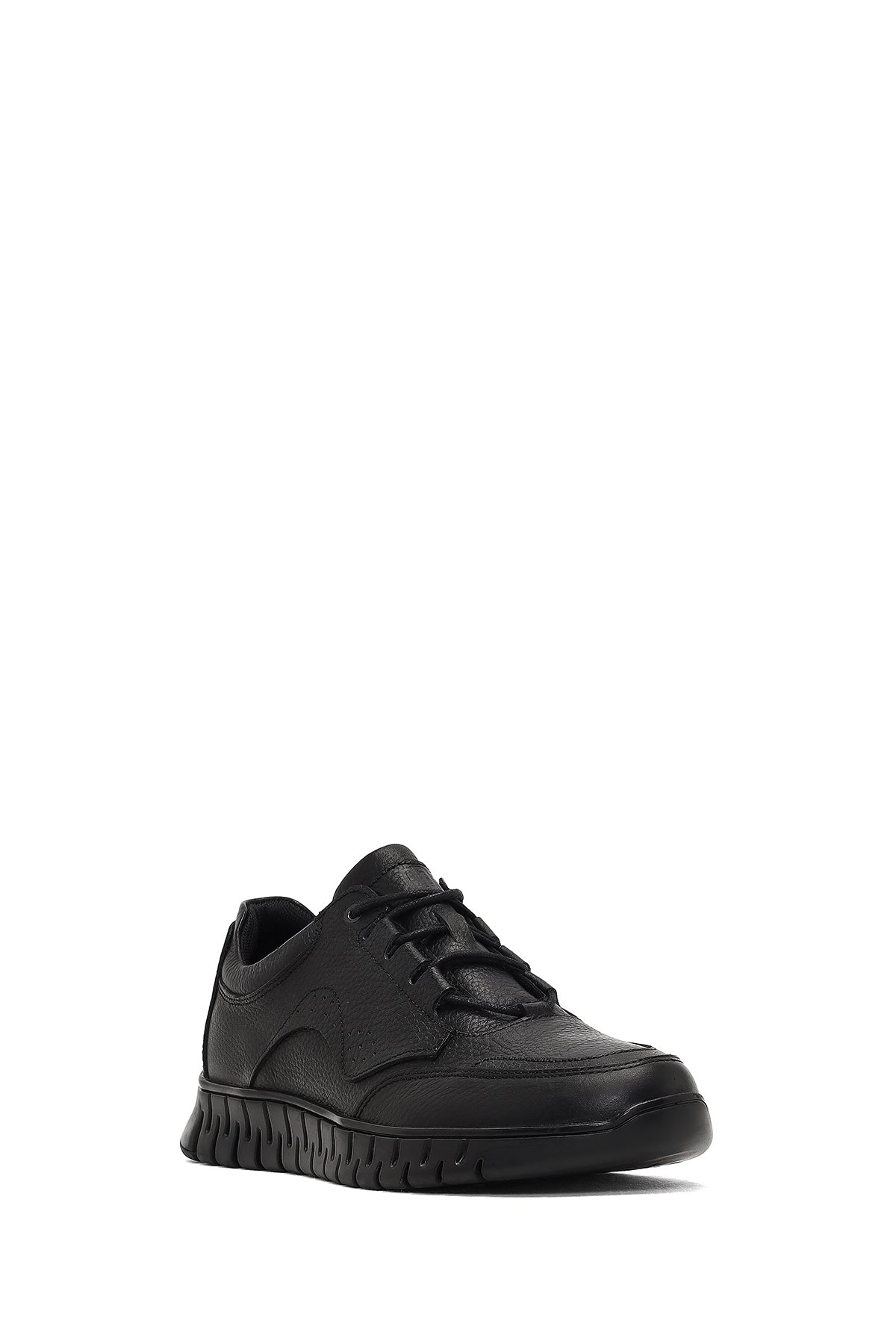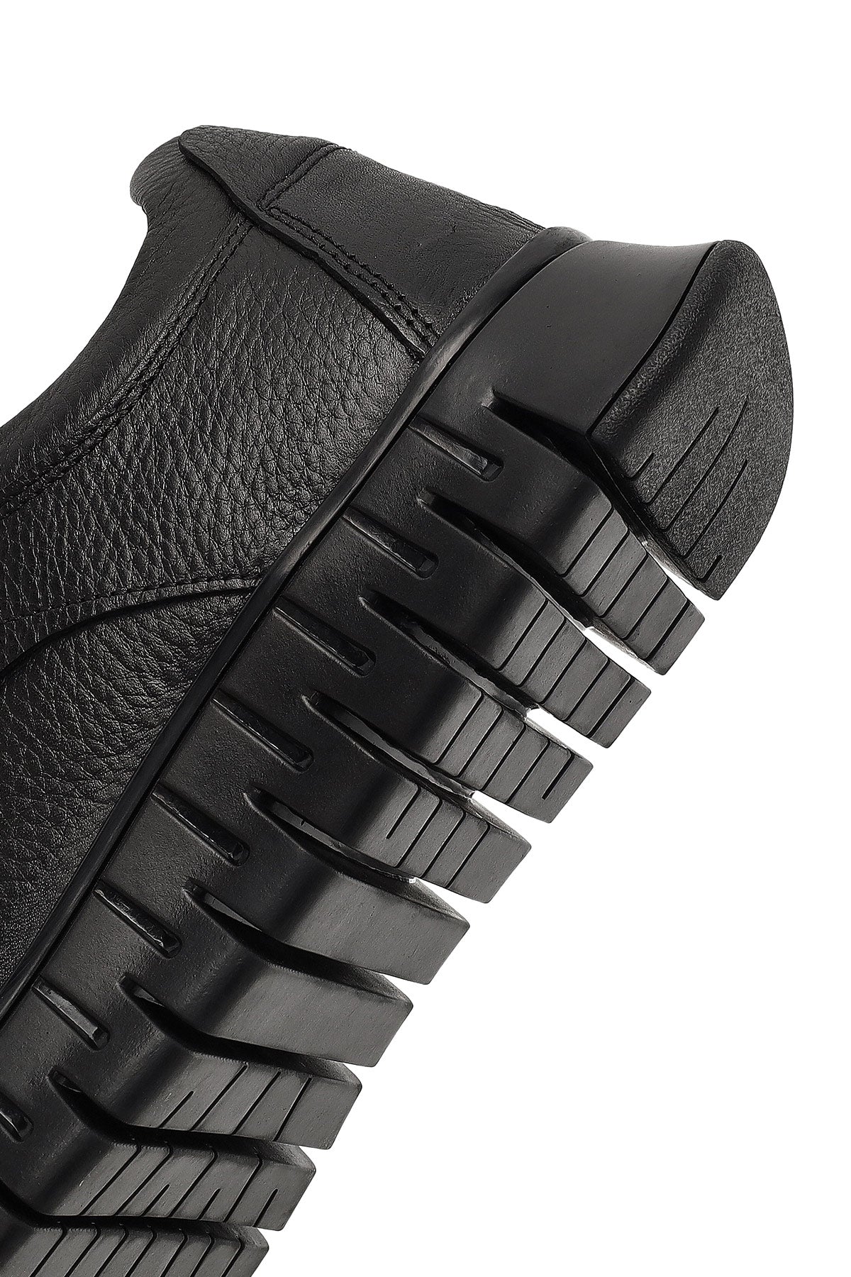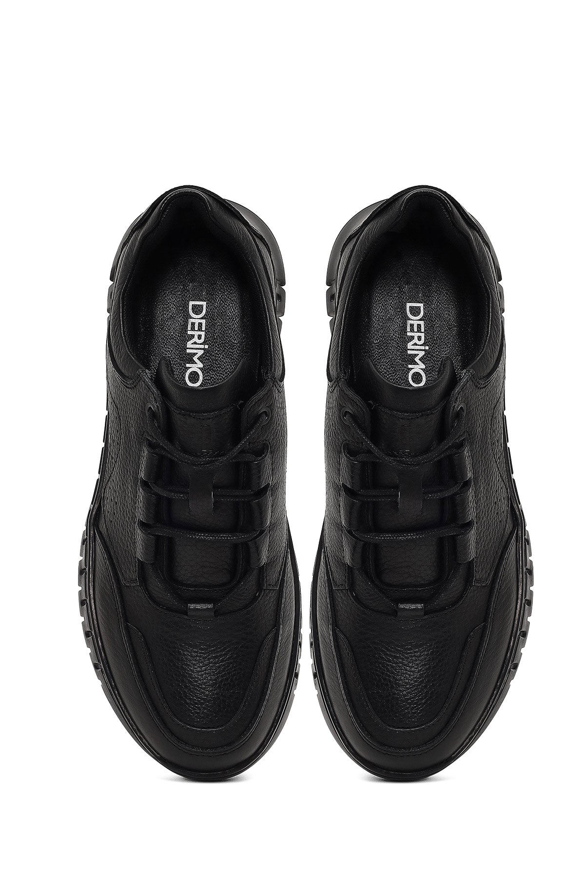 Erkek Siyah Bağcıklı Kalın Tabanlı Deri Casual Sneaker