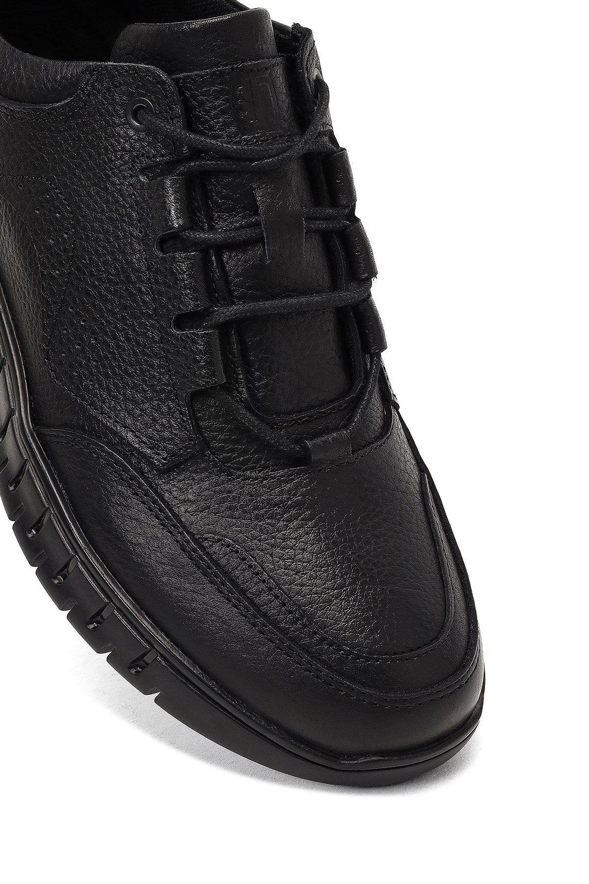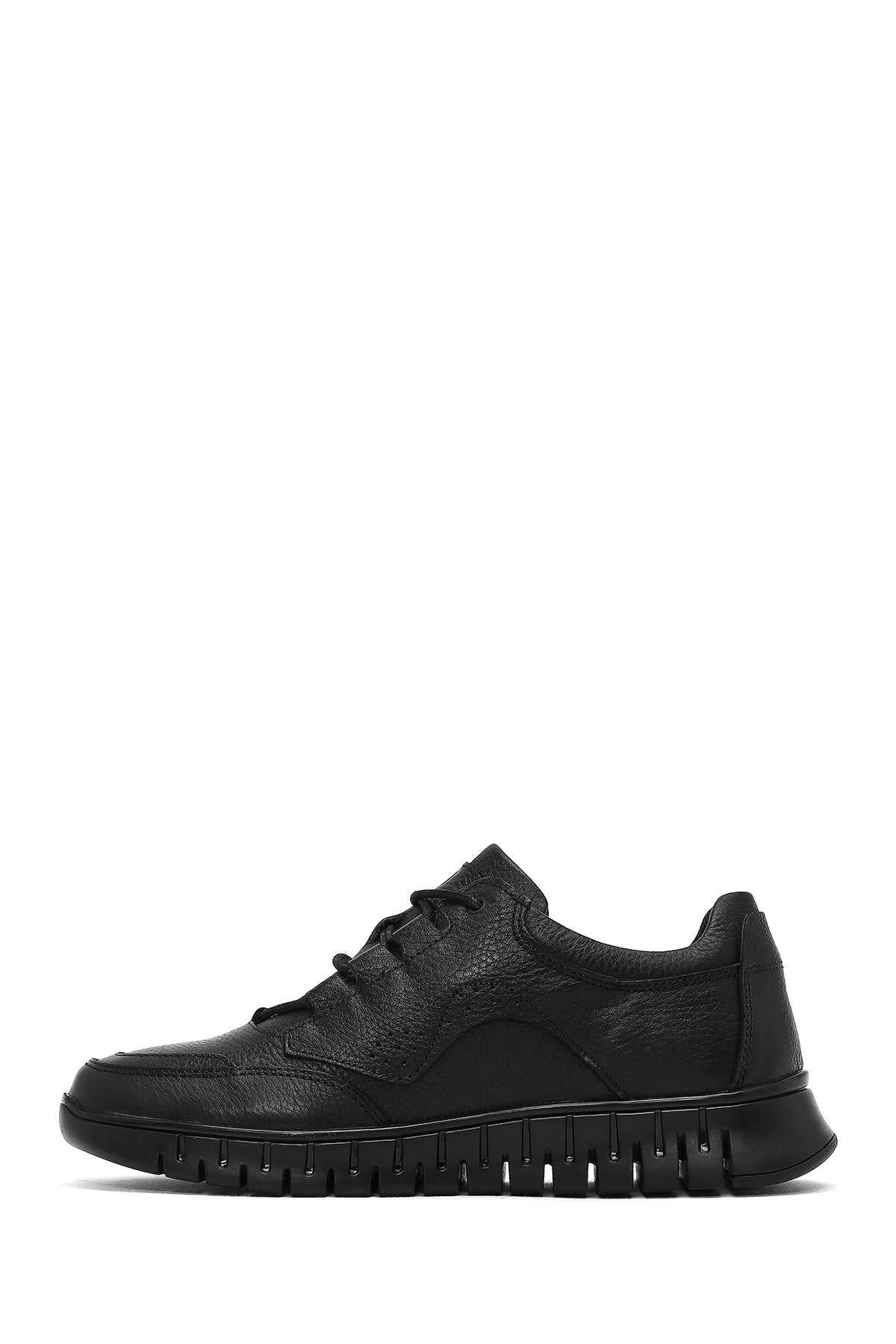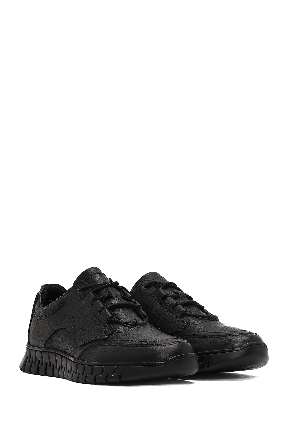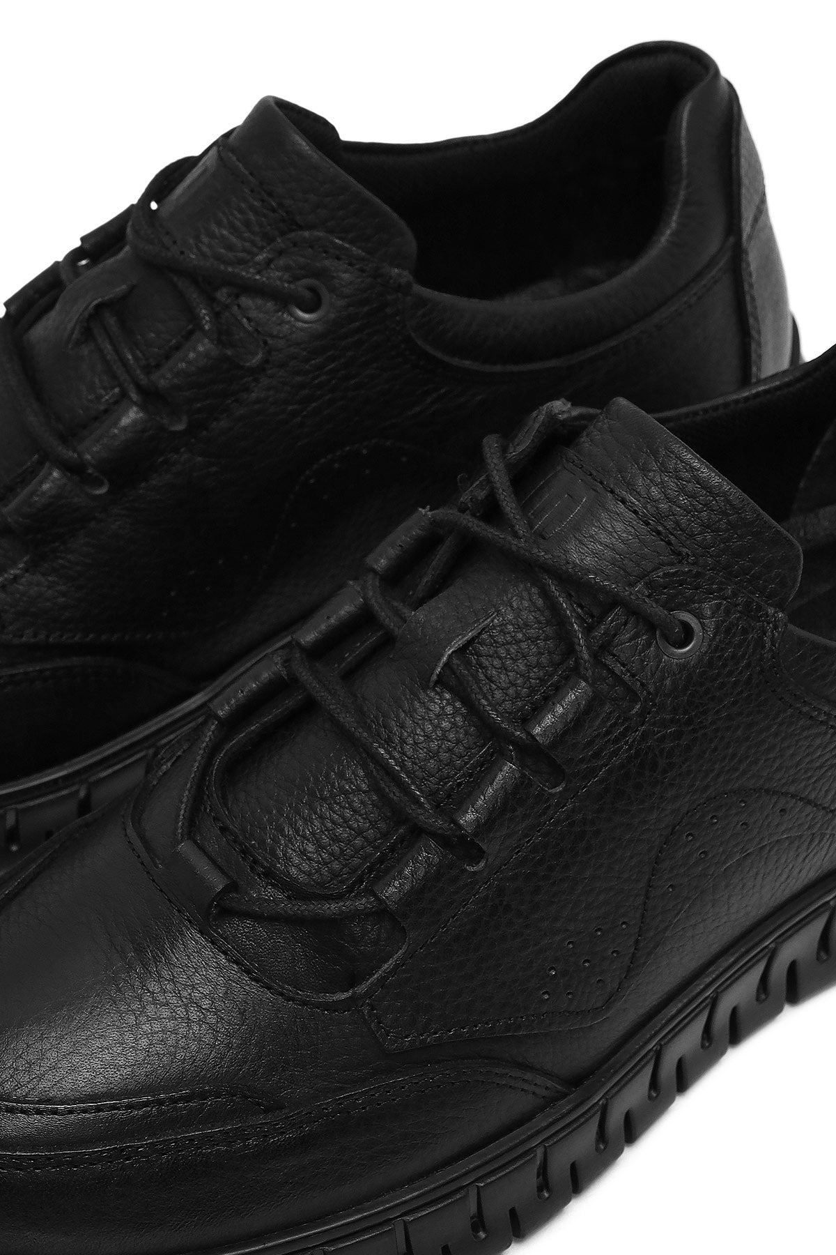 Erkek Siyah Bağcıklı Kalın Tabanlı Deri Casual Sneaker
