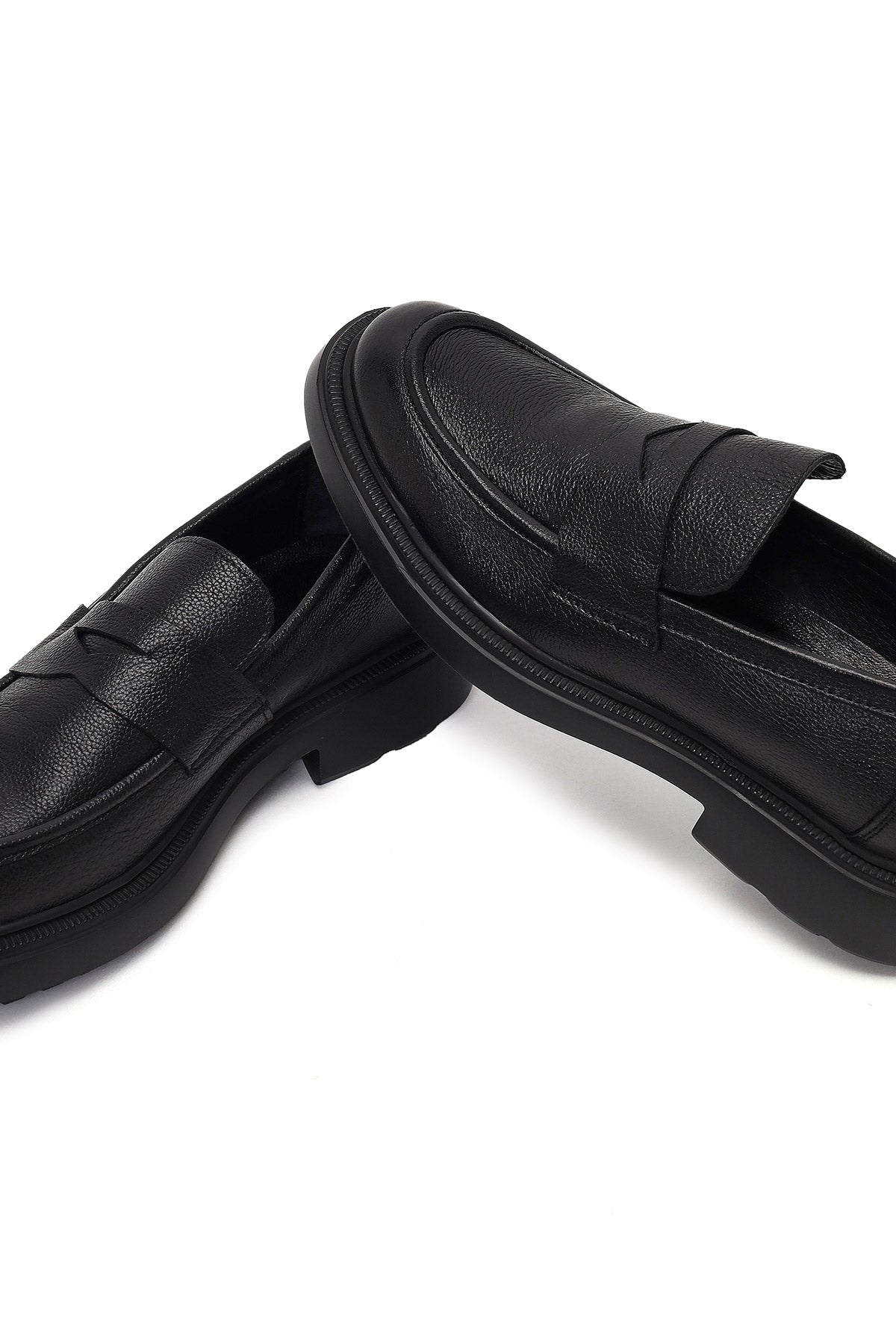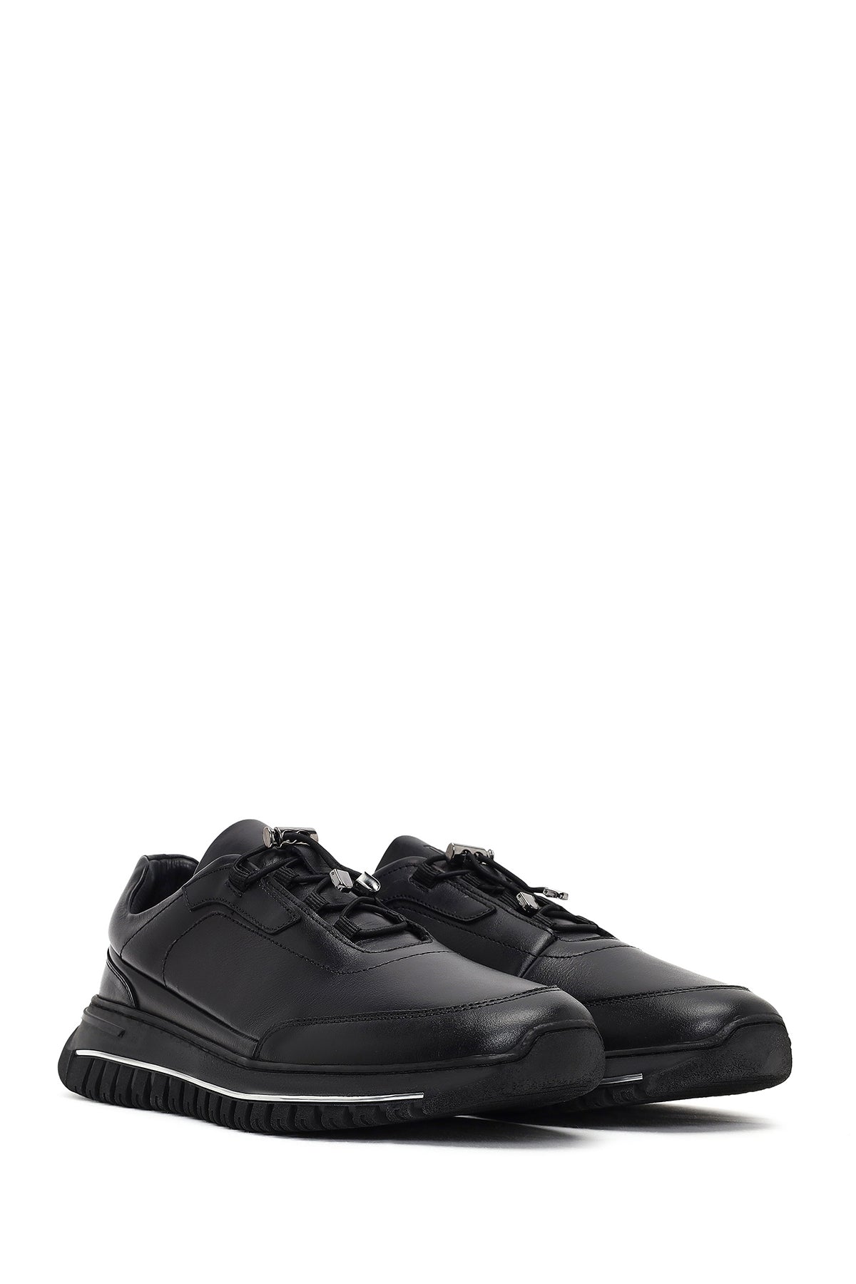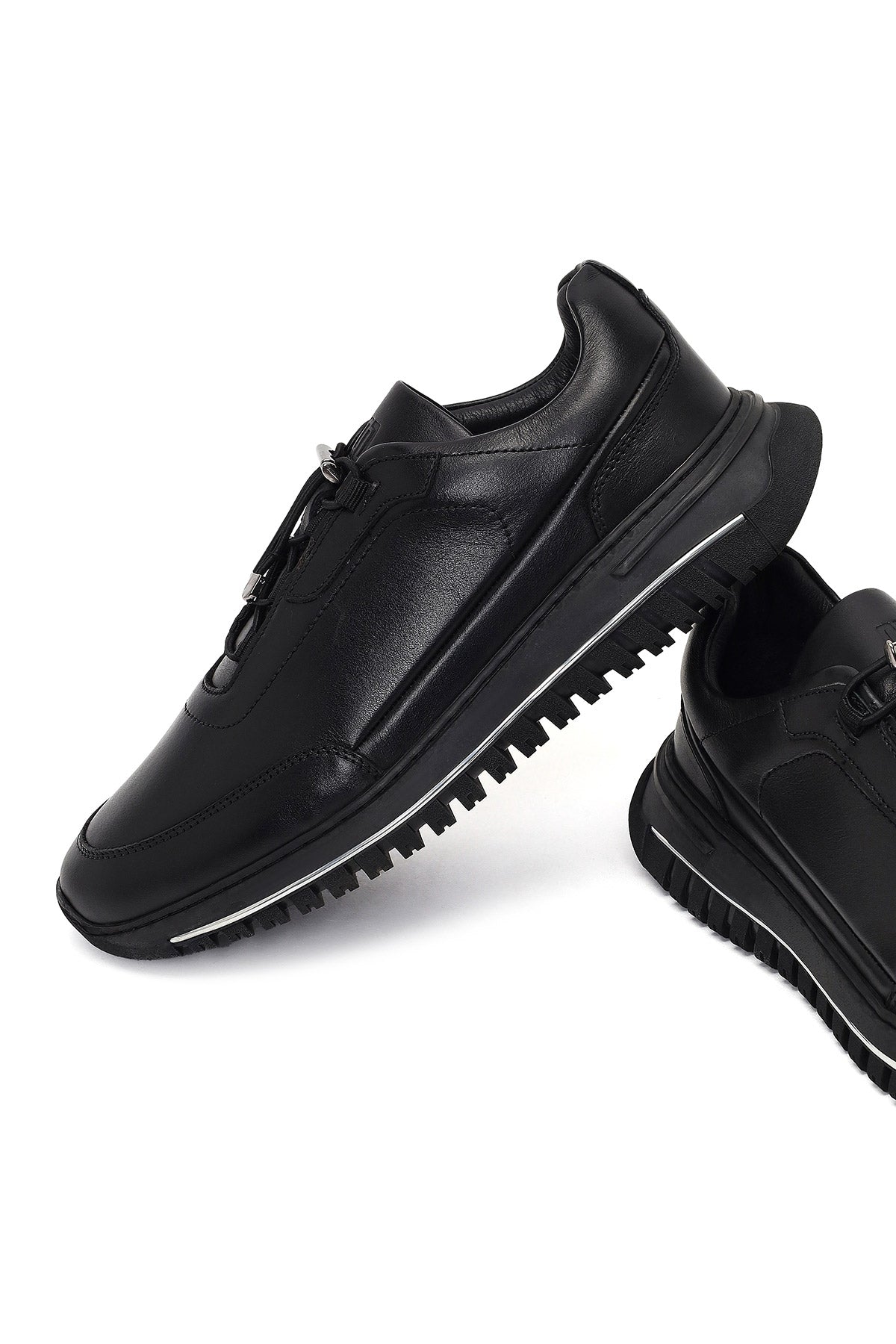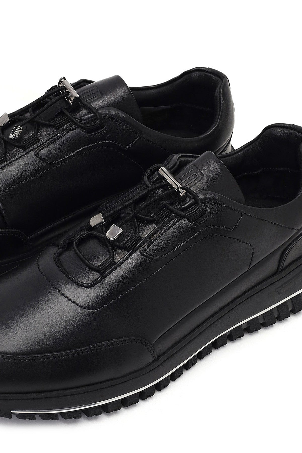 Erkek Siyah Bağcıklı Kalın Tabanlı Deri Casual Sneaker