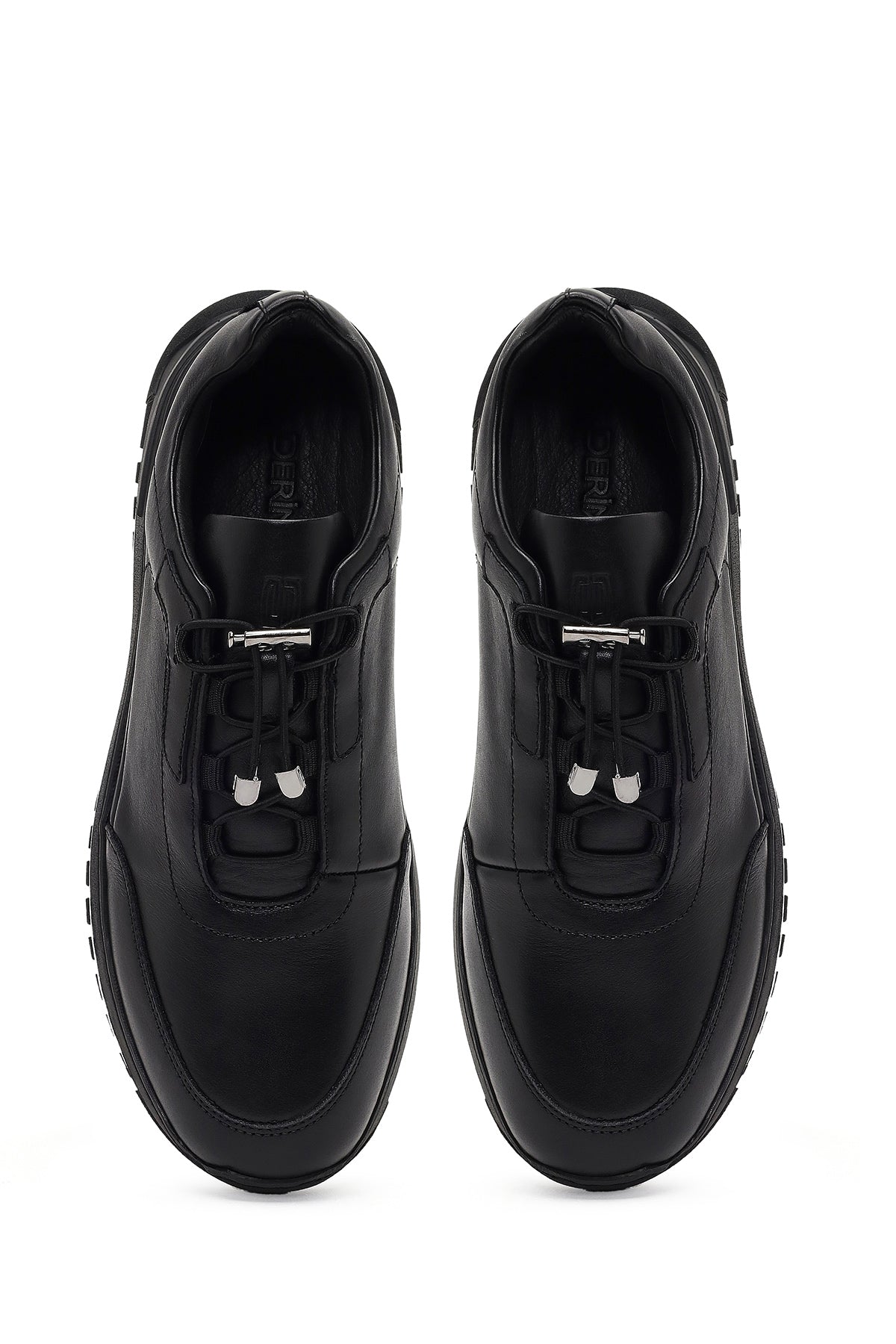 کتونی مردانه چرمی مشکی بندی کژوال با زیره ضخیم دری مد
