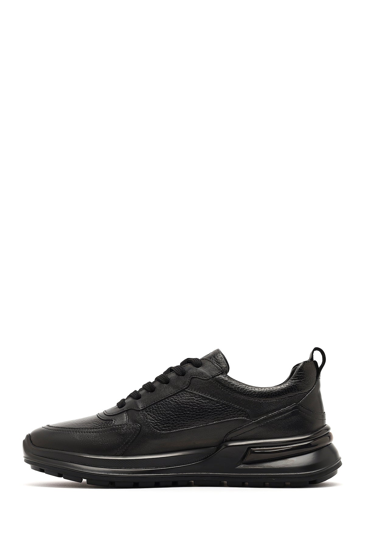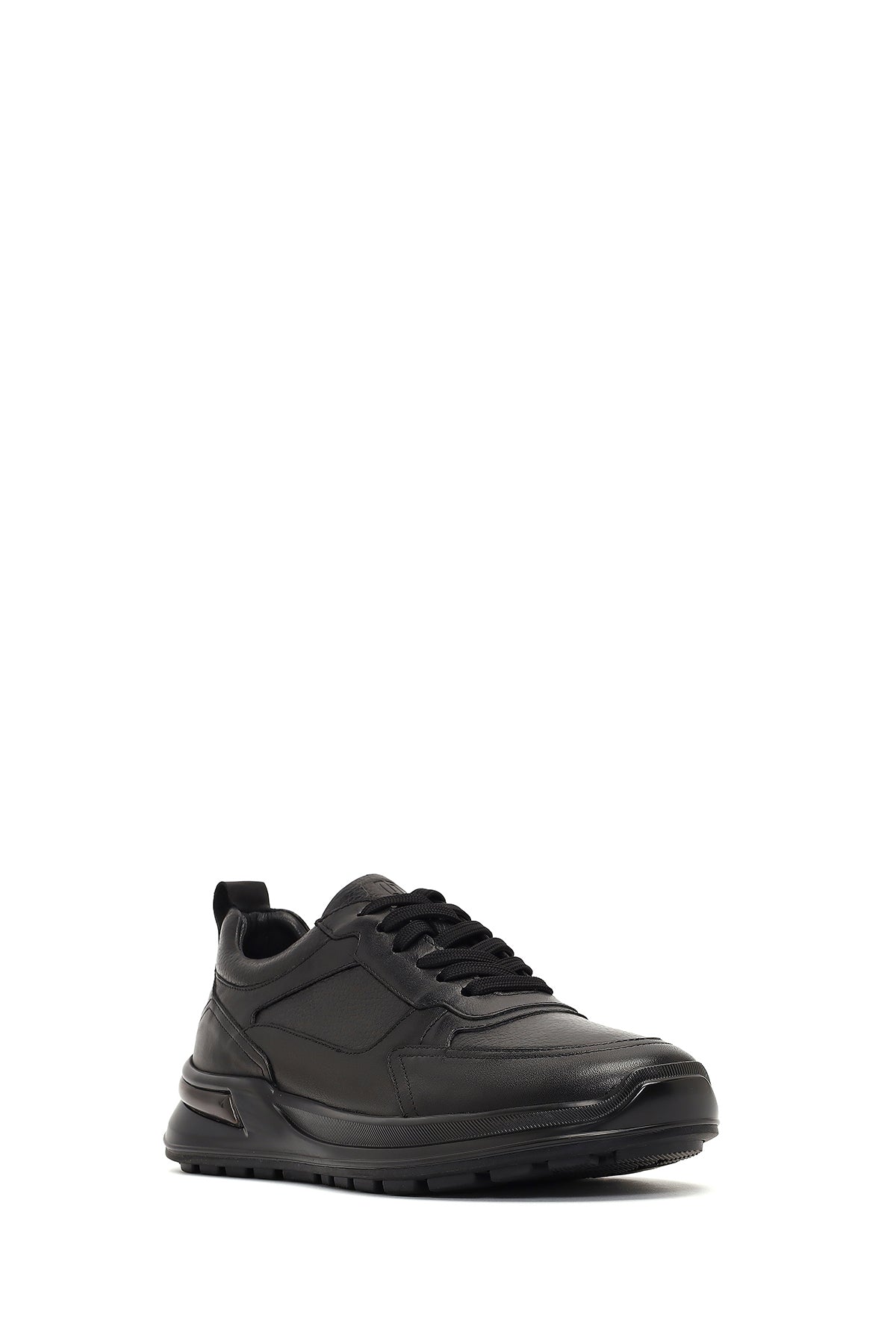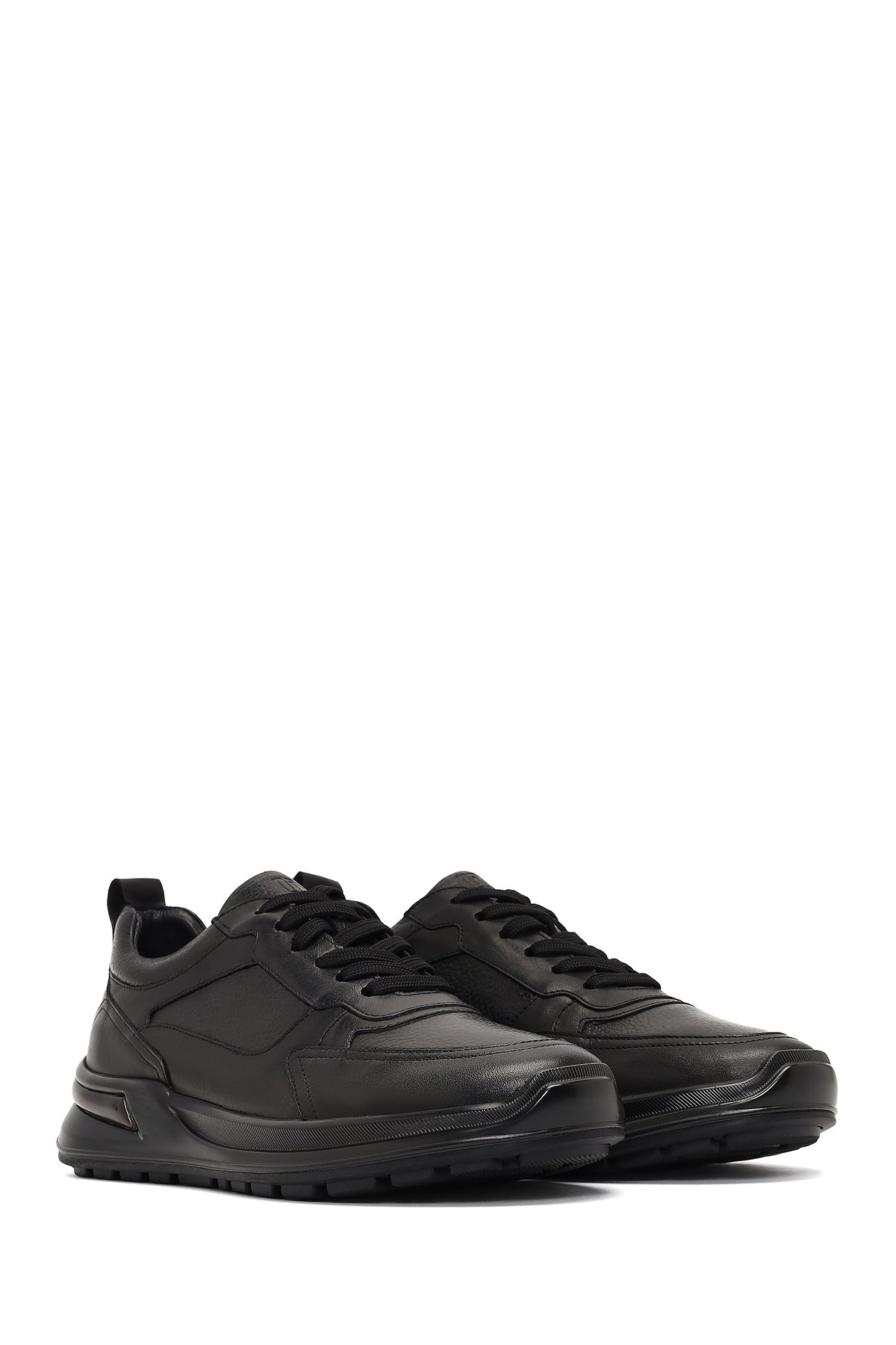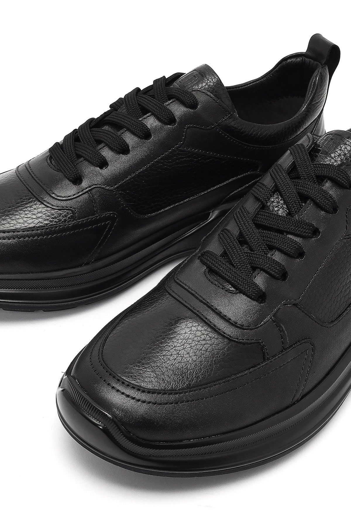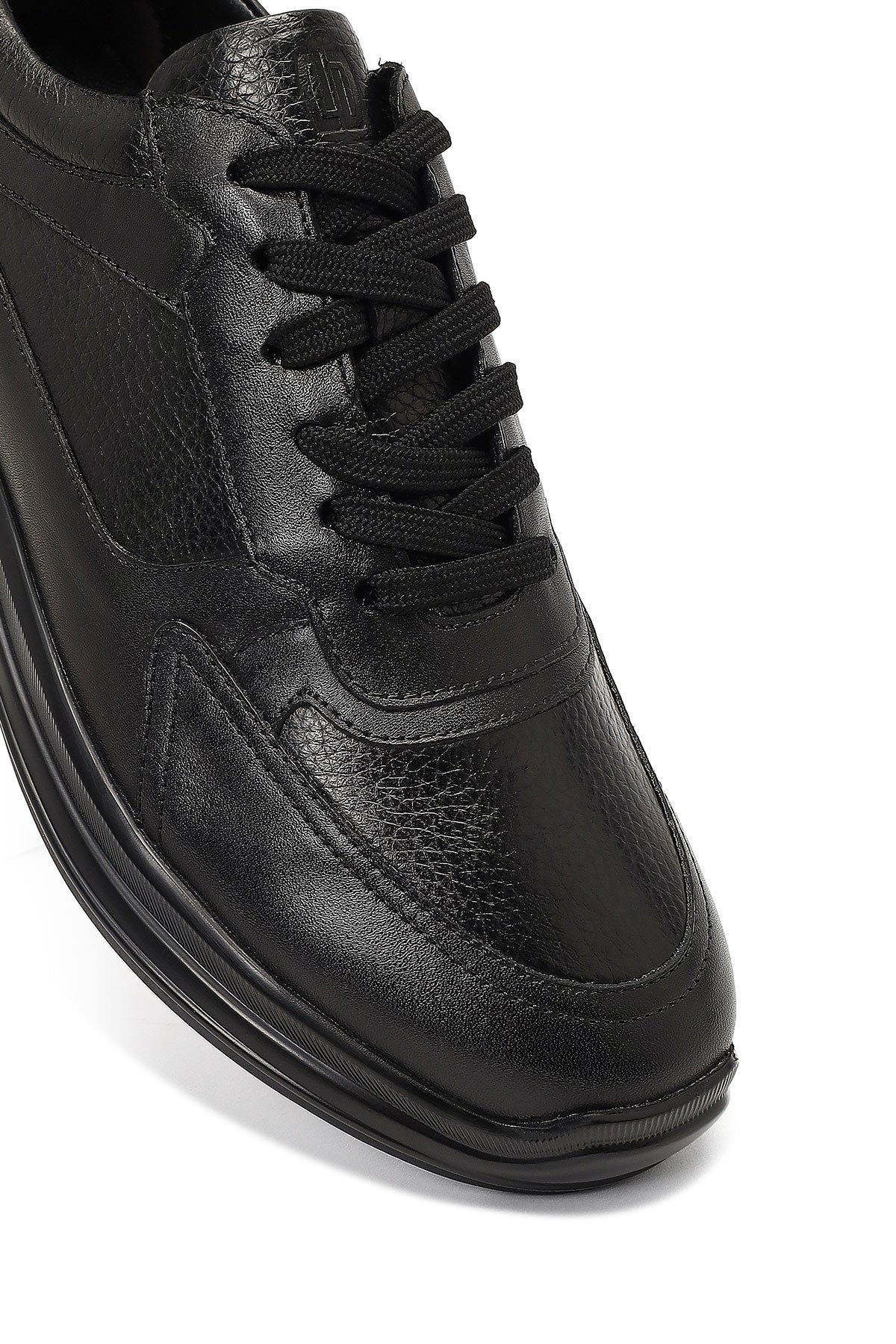 Erkek Siyah Bağcıklı Kalın Tabanlı Deri Casual Sneaker