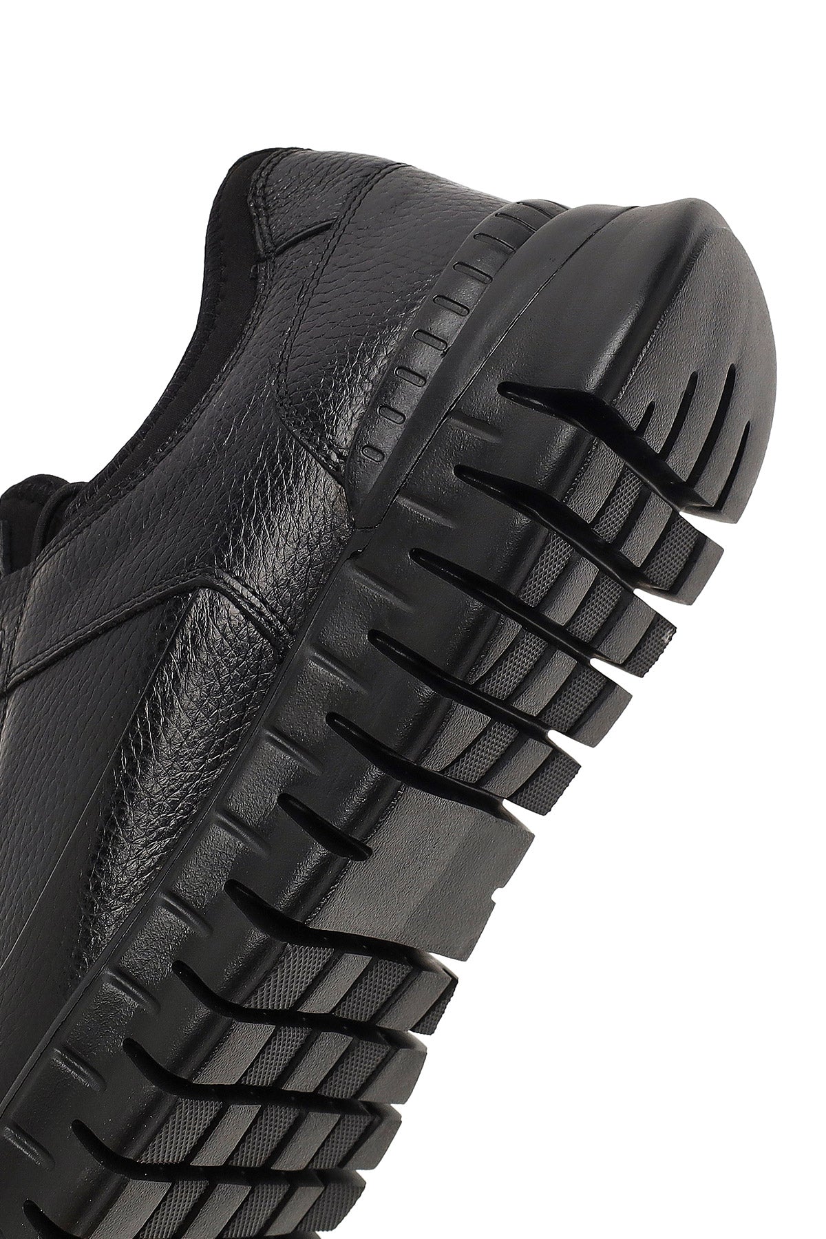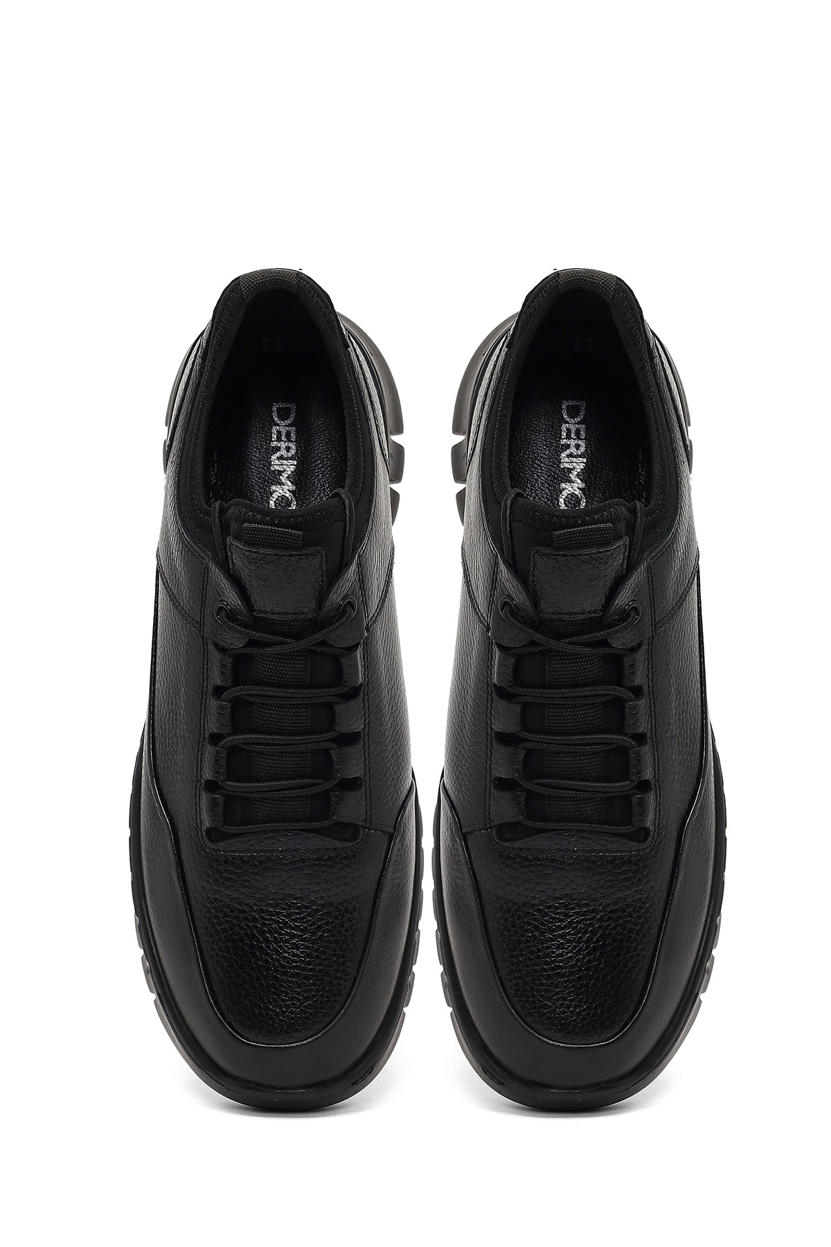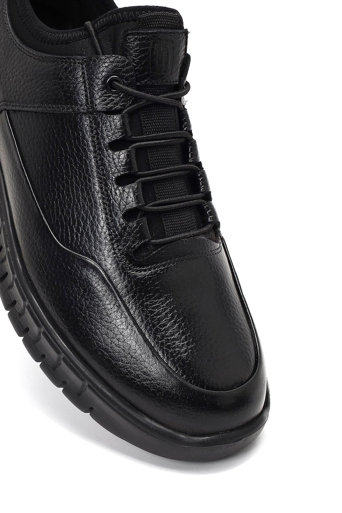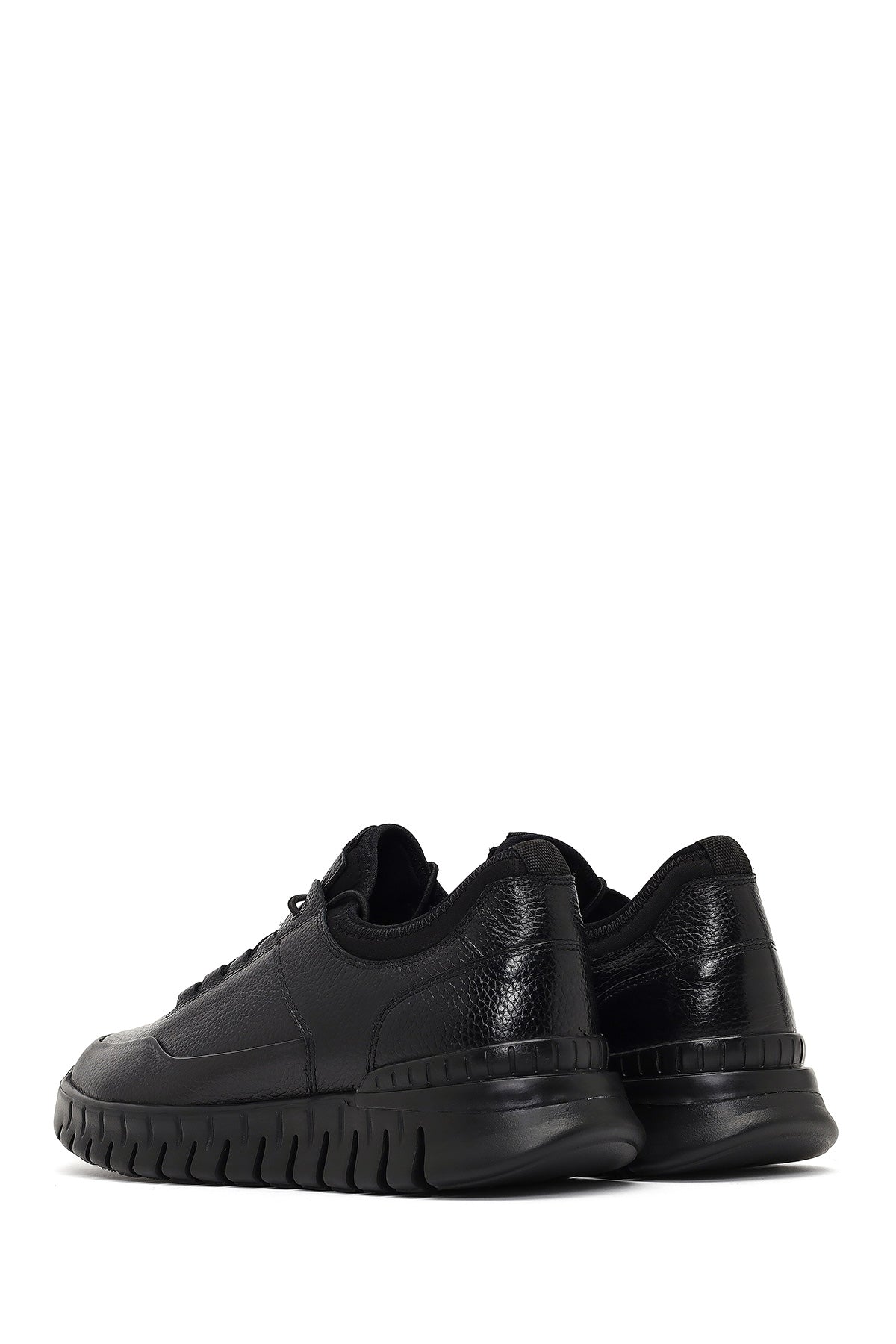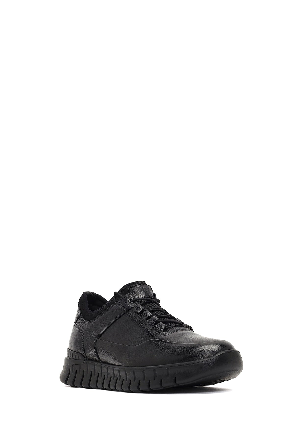 Erkek Siyah Bağcıklı Kalın Tabanlı Deri Casual Sneaker