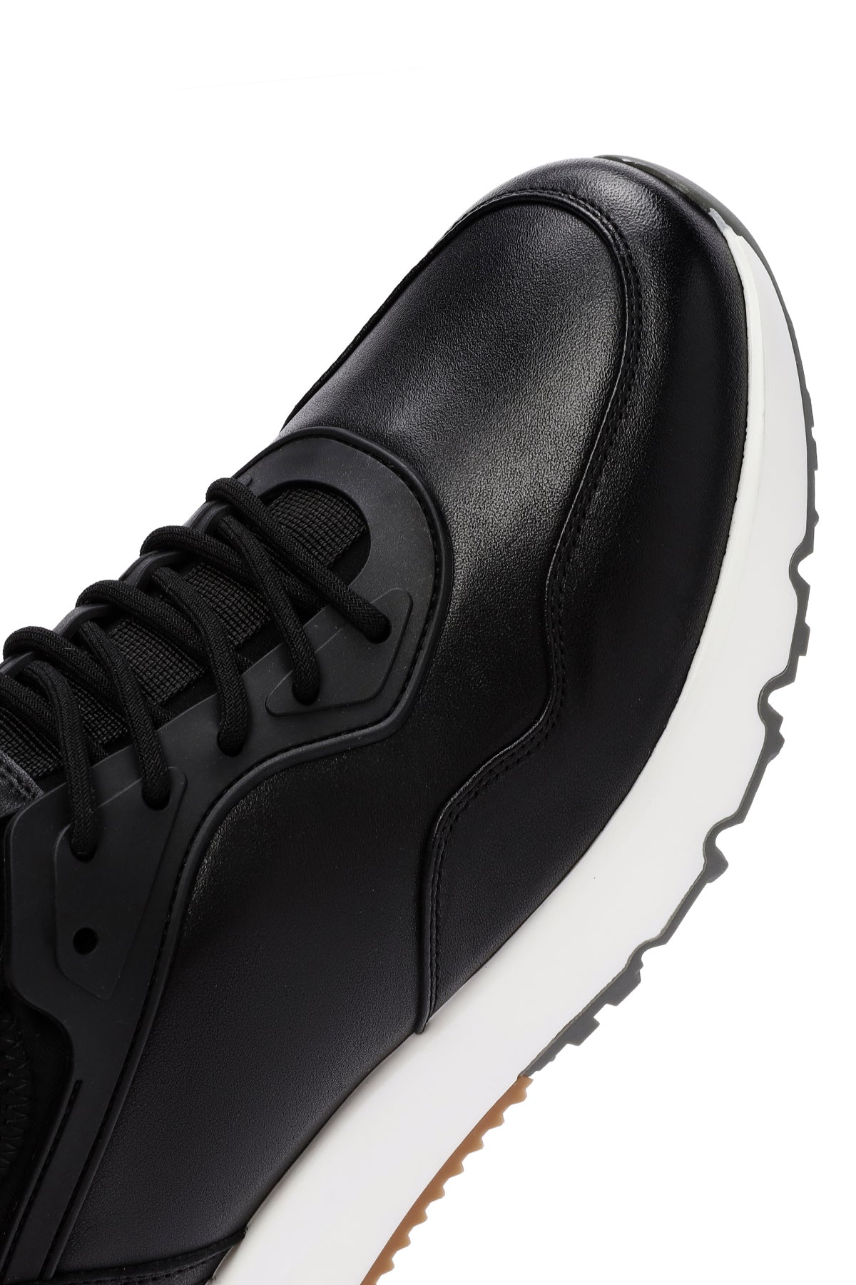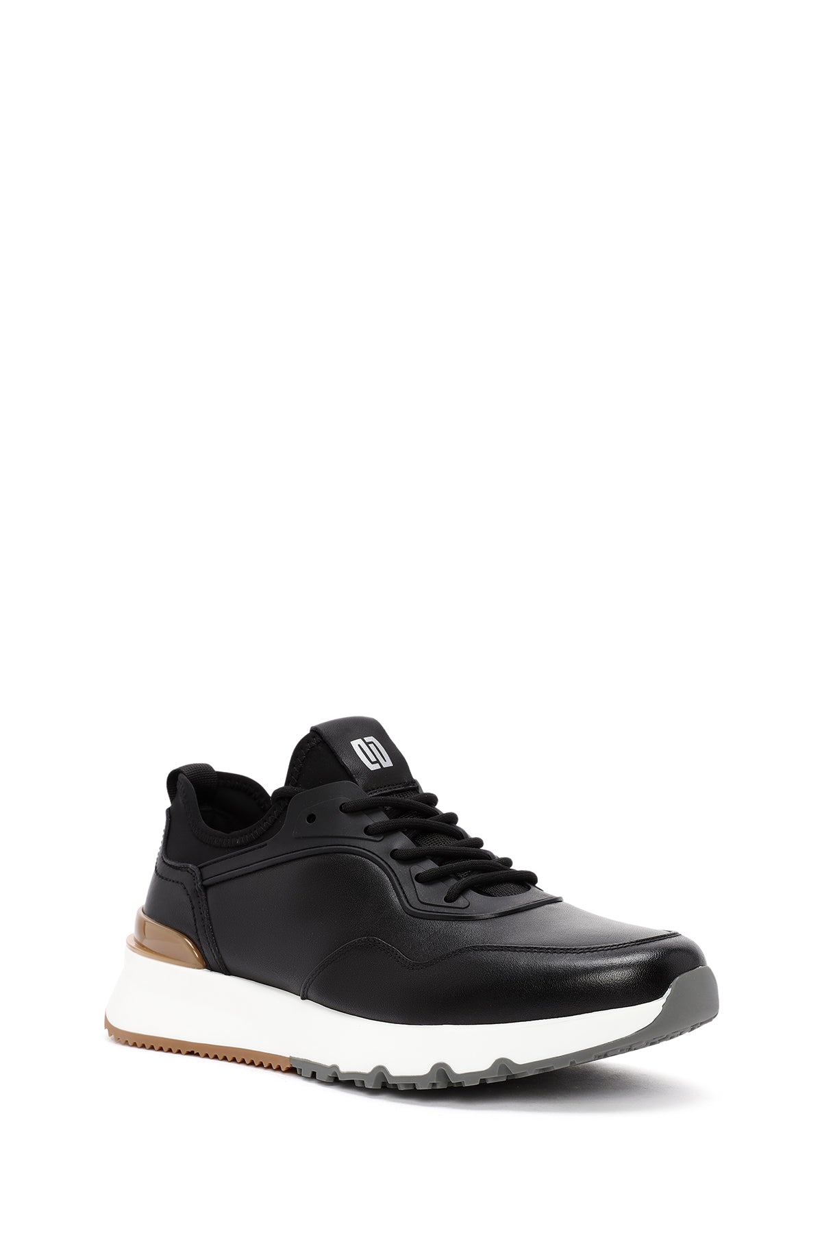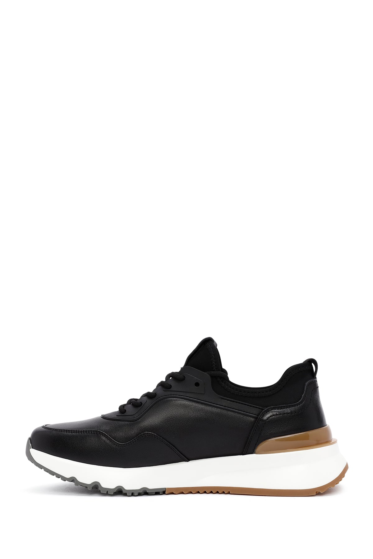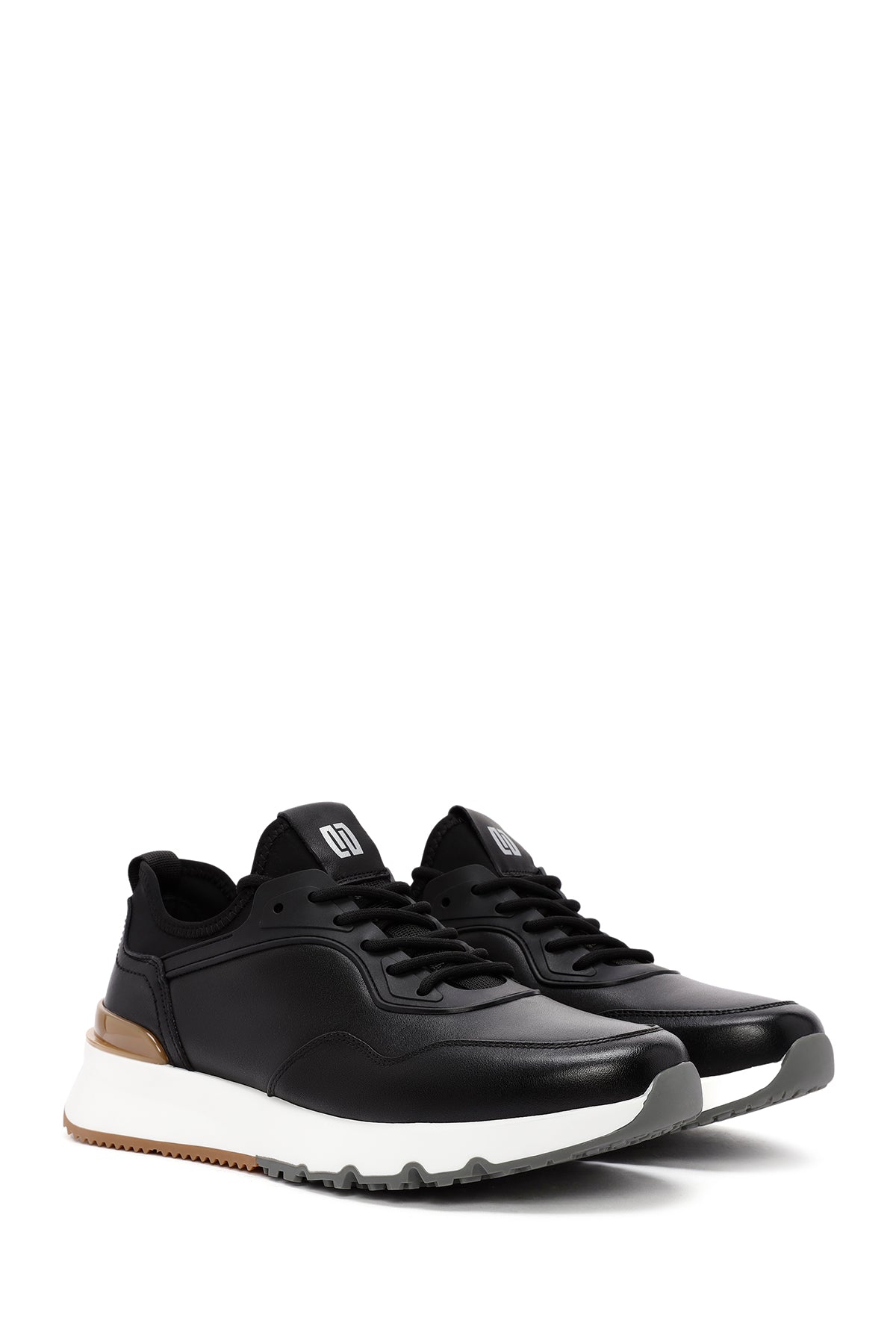 Erkek Siyah Bağcıklı Kalın Tabanlı Deri Casual Sneaker