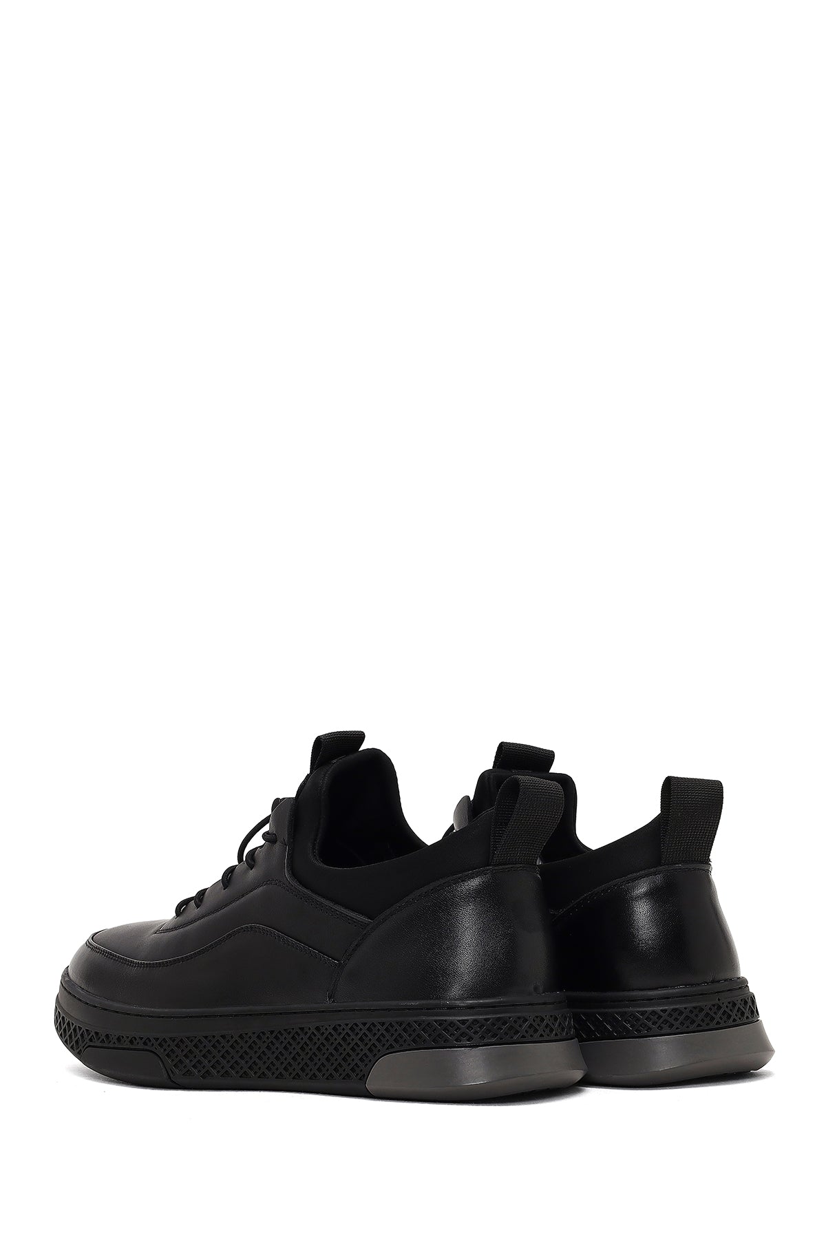 Erkek Siyah Bağcıklı Kalın Tabanlı Deri Sneaker