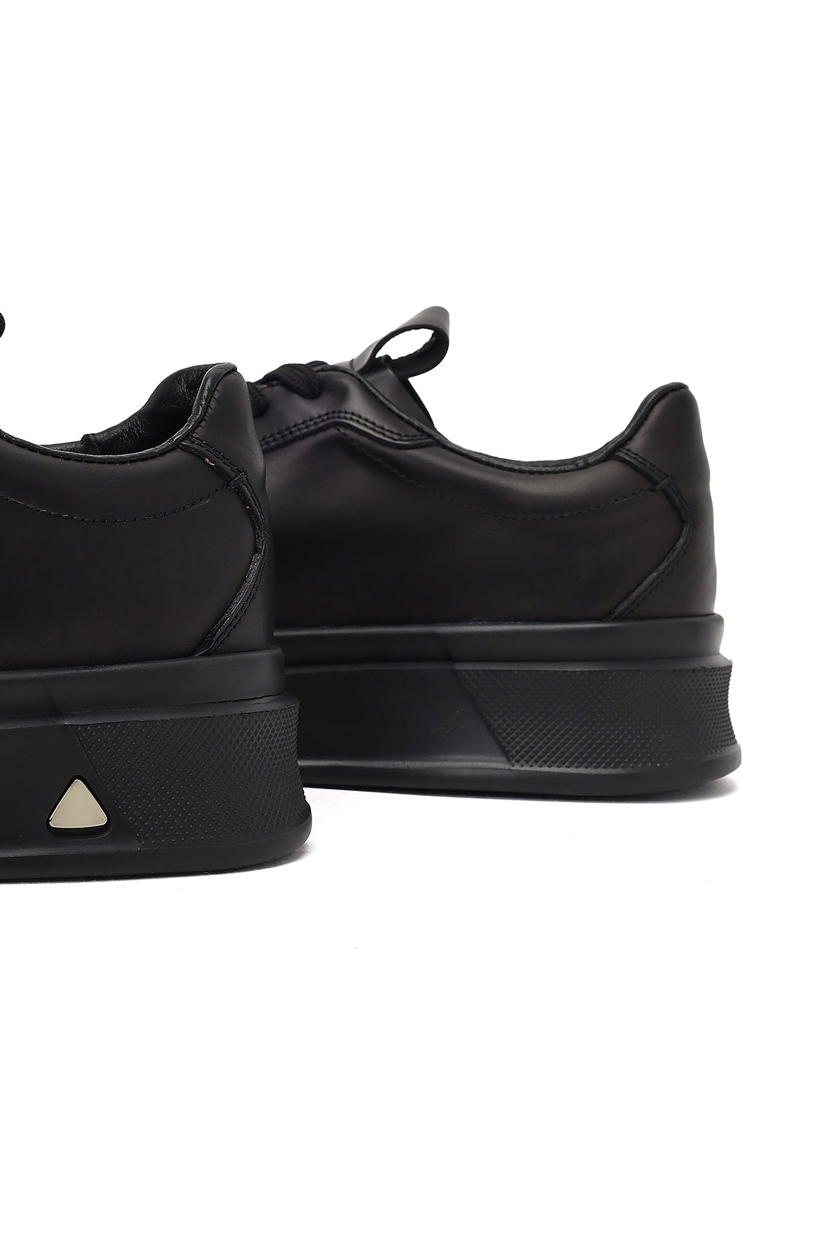 Erkek Siyah Bağcıklı Kalın Tabanlı Deri Sneaker