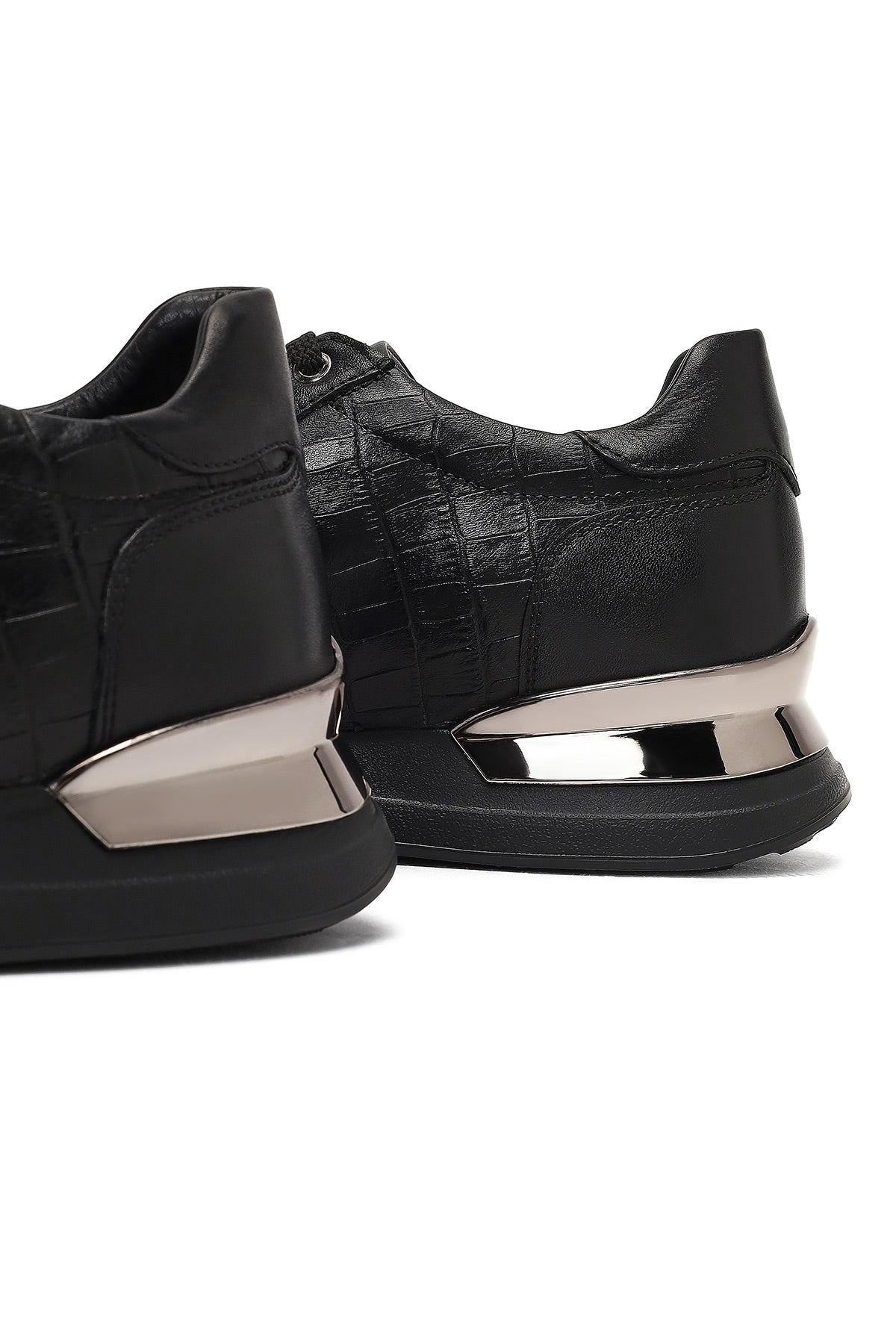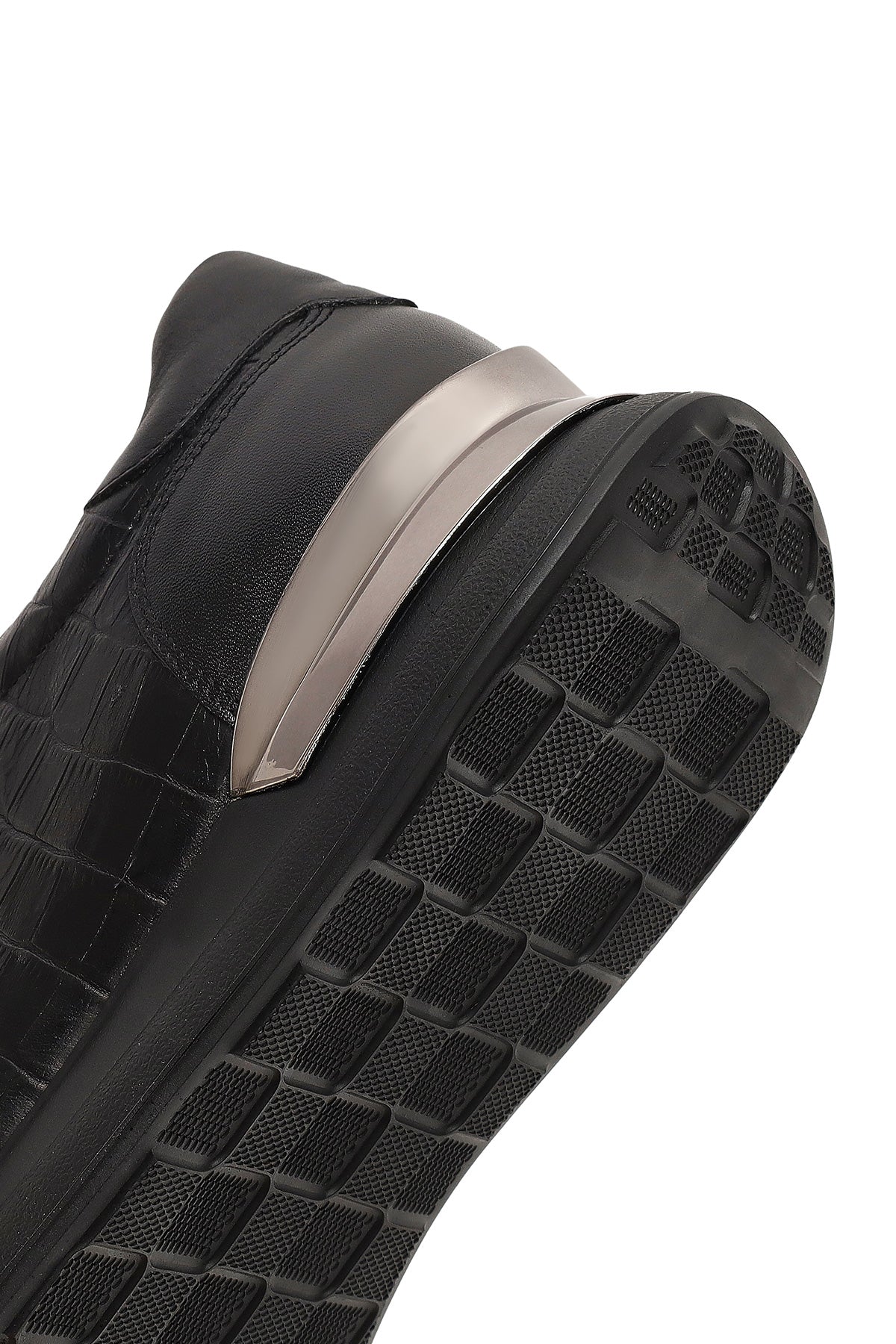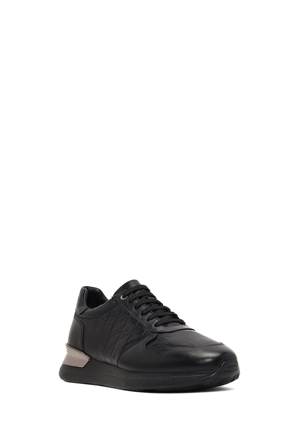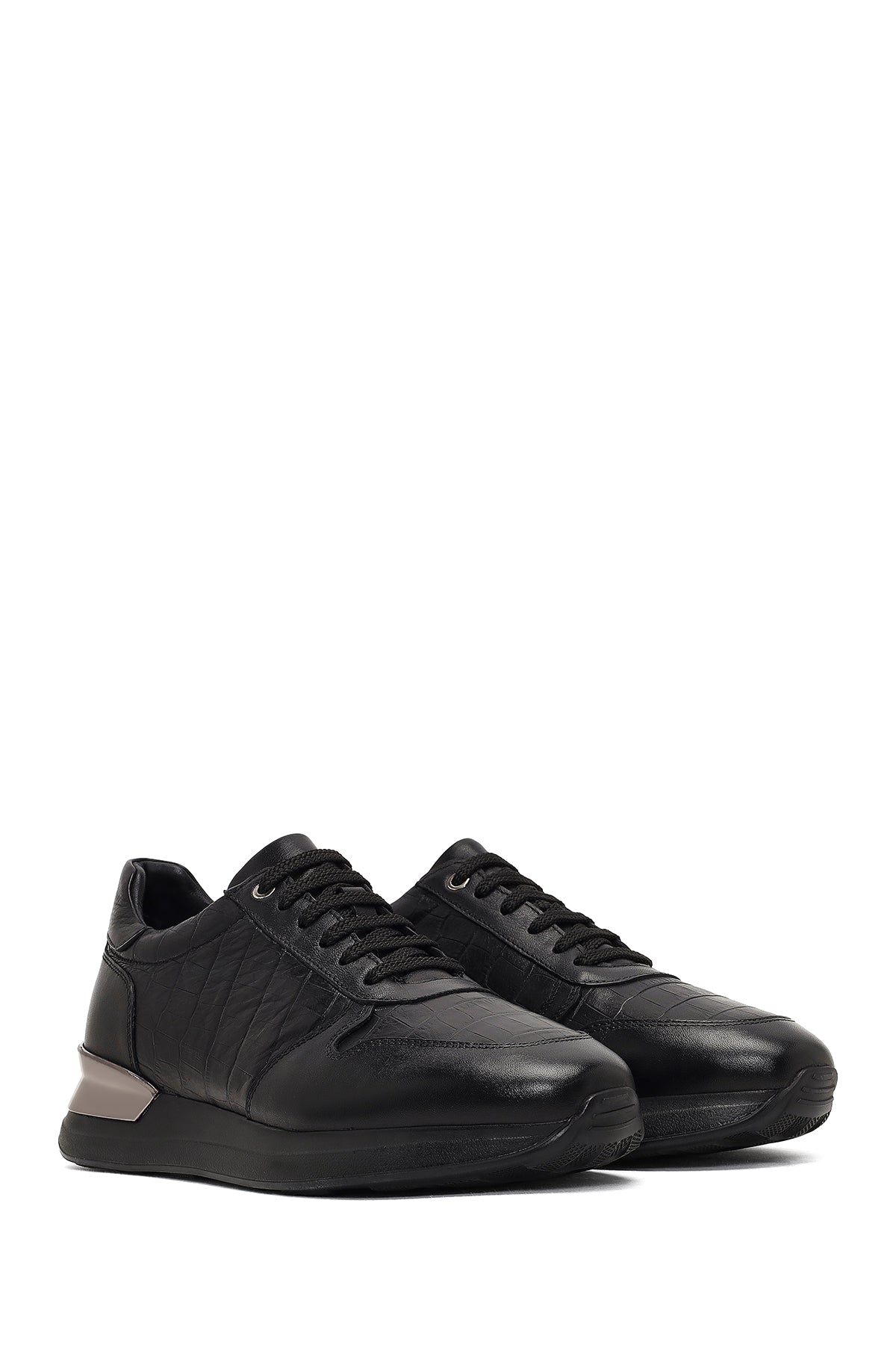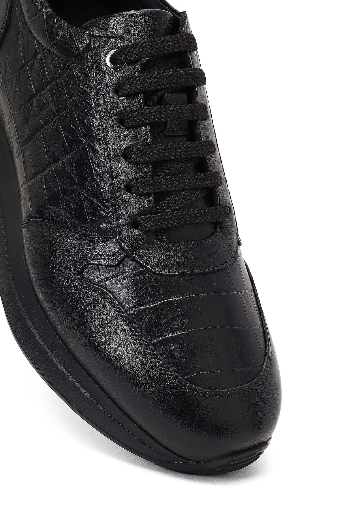 Erkek Siyah Bağcıklı Kalın Tabanlı Deri Sneaker
