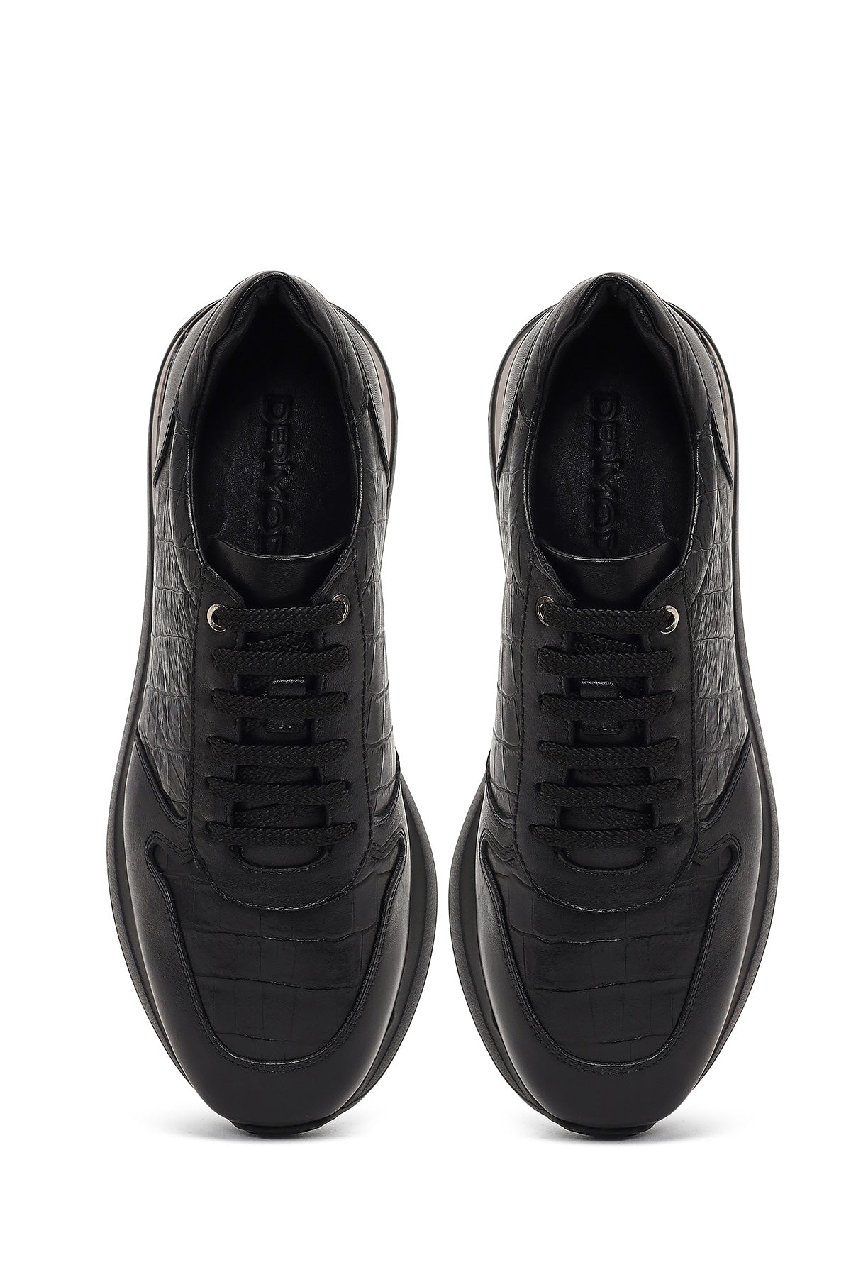 کتونی مردانه چرمی مشکی بندی با زیره ضخیم دری مد