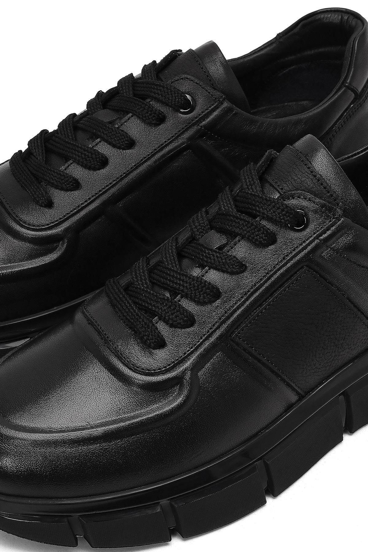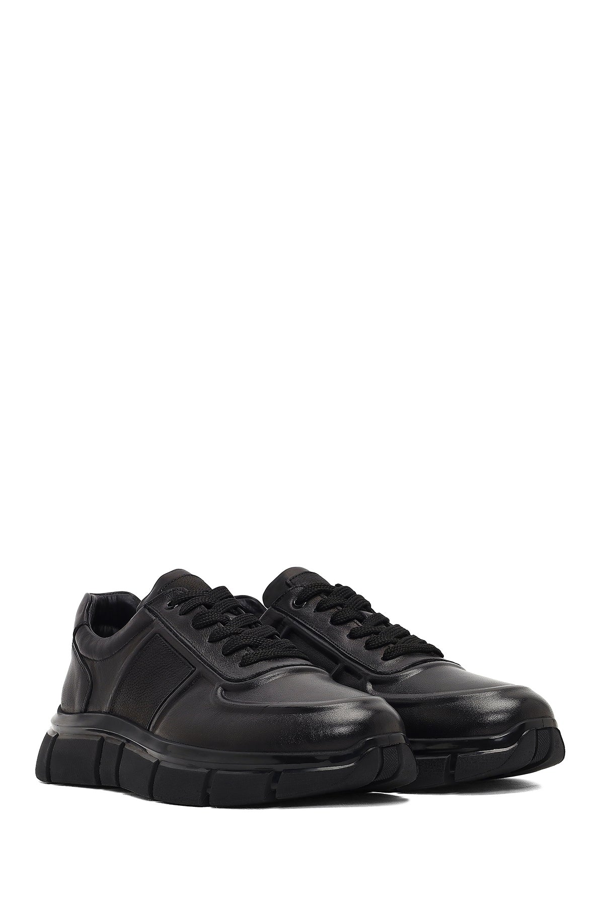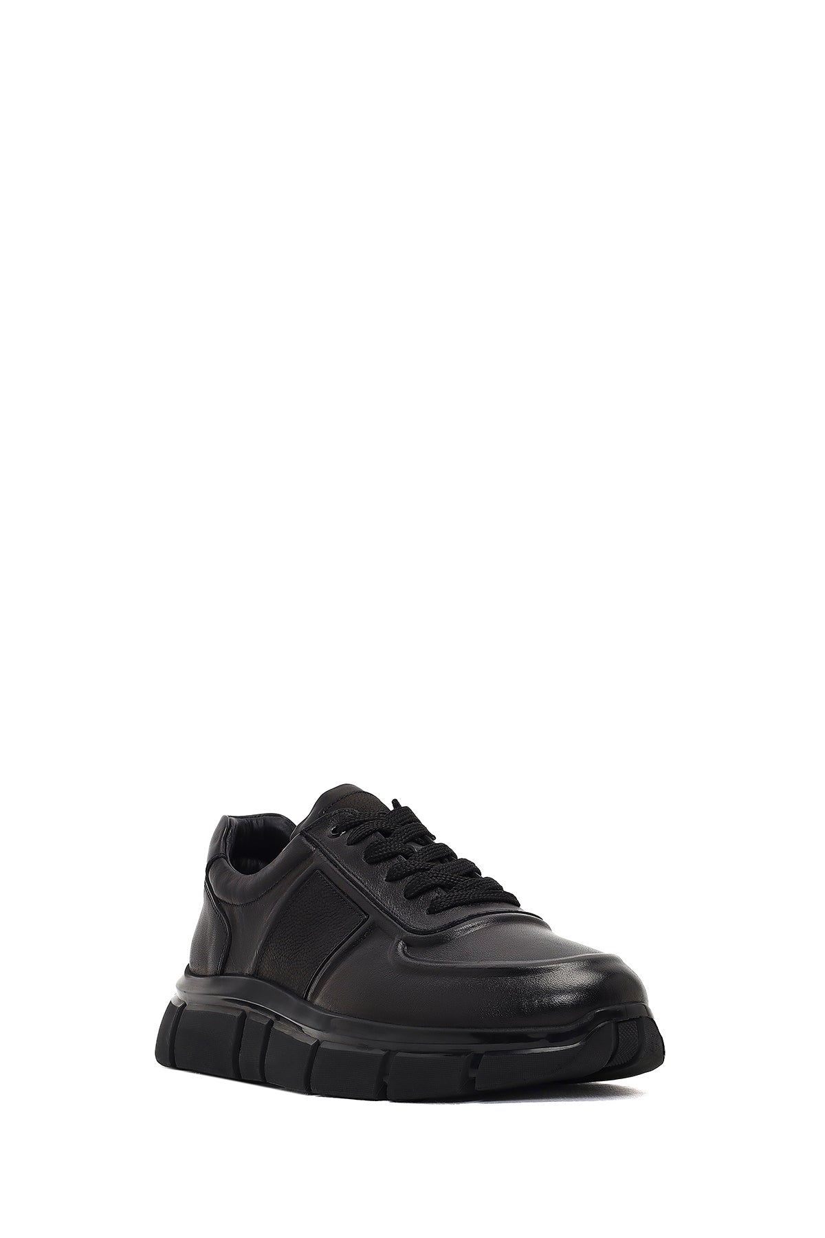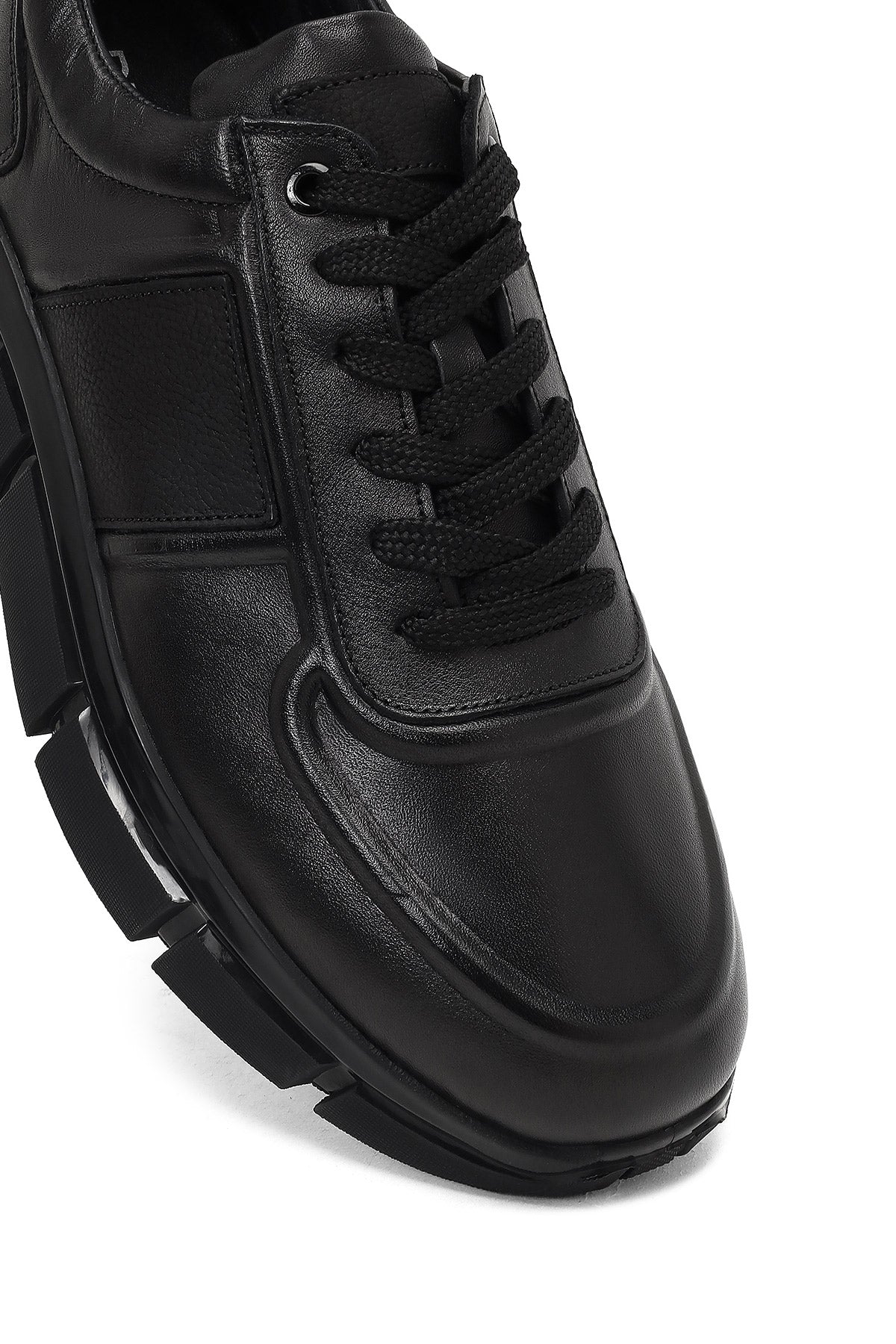 Erkek Siyah Bağcıklı Kalın Tabanlı Deri Sneaker
