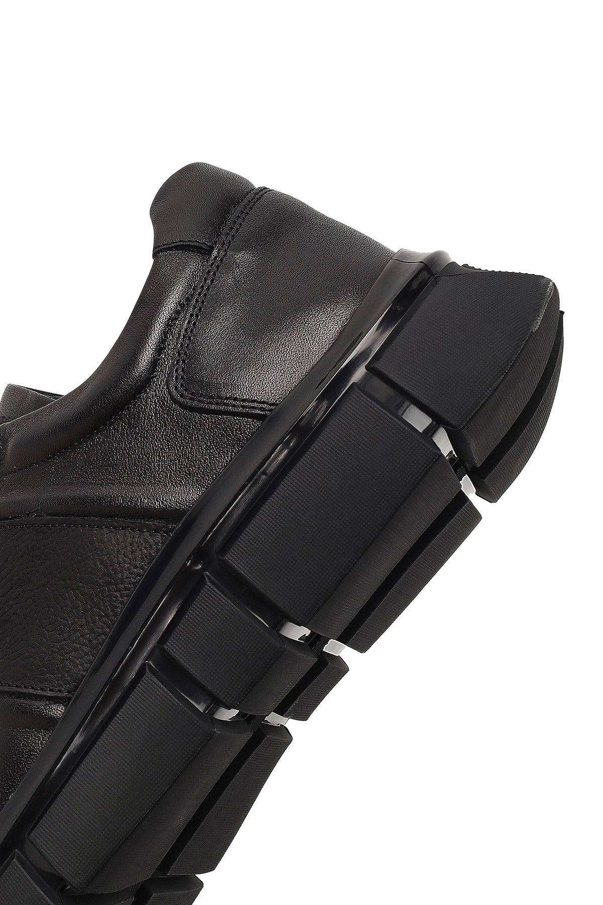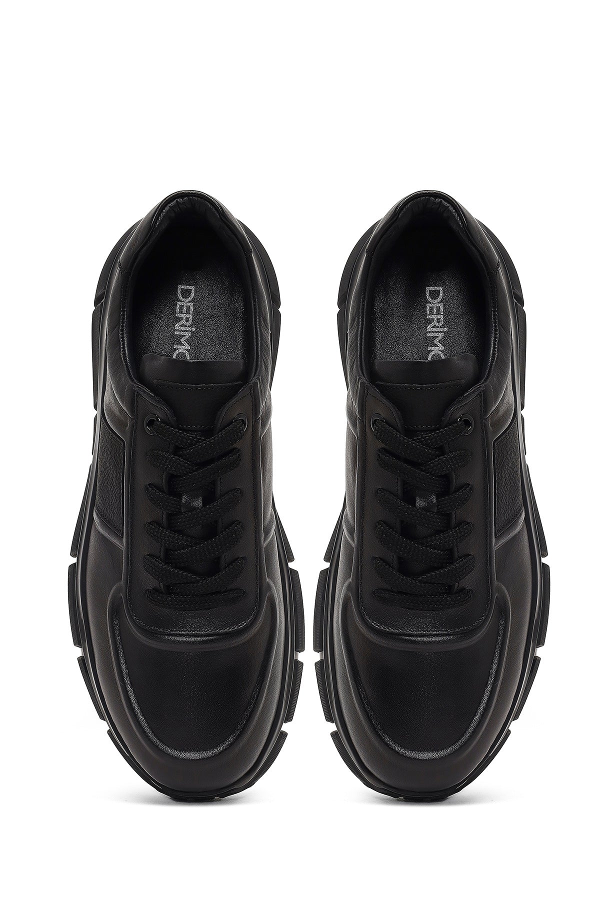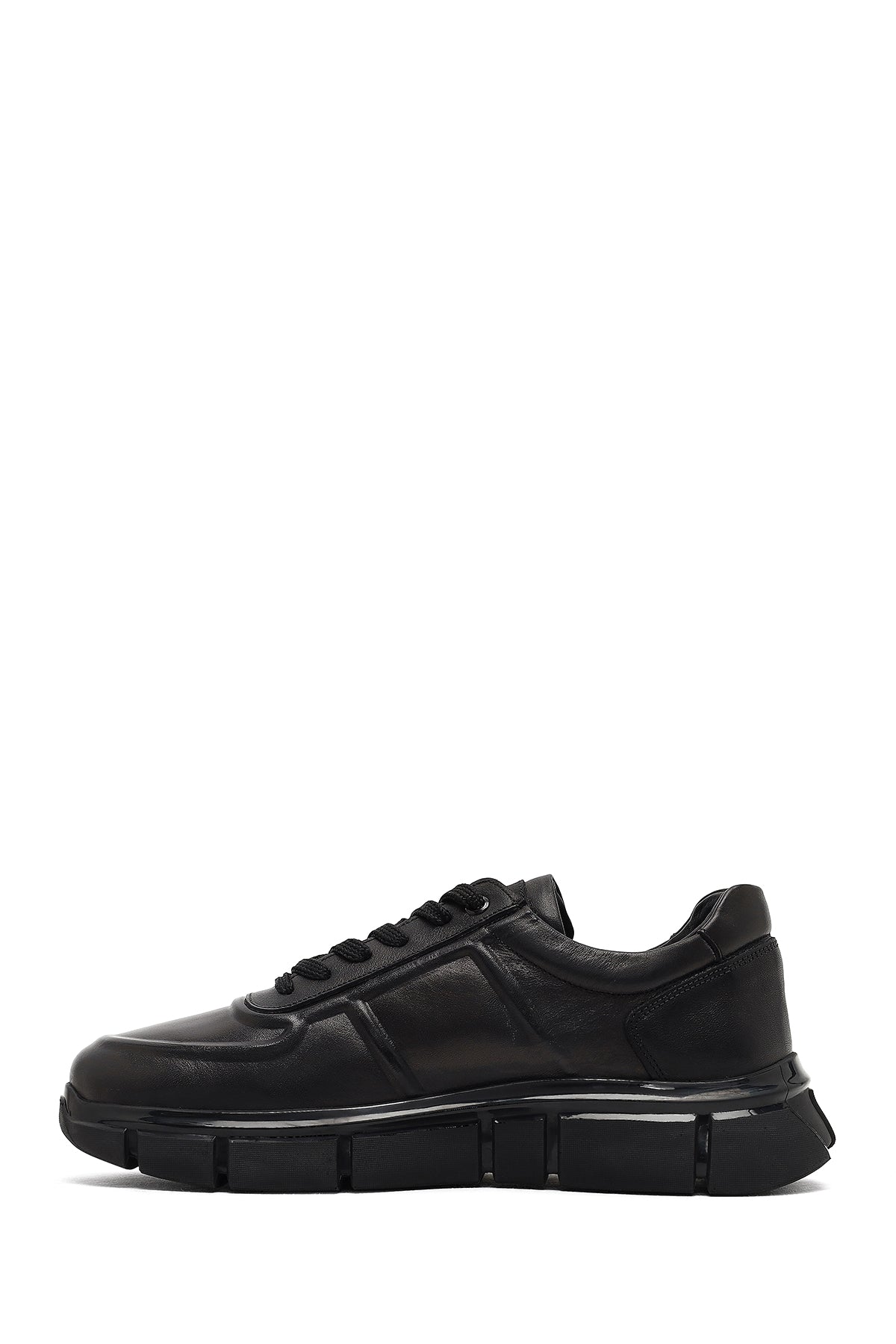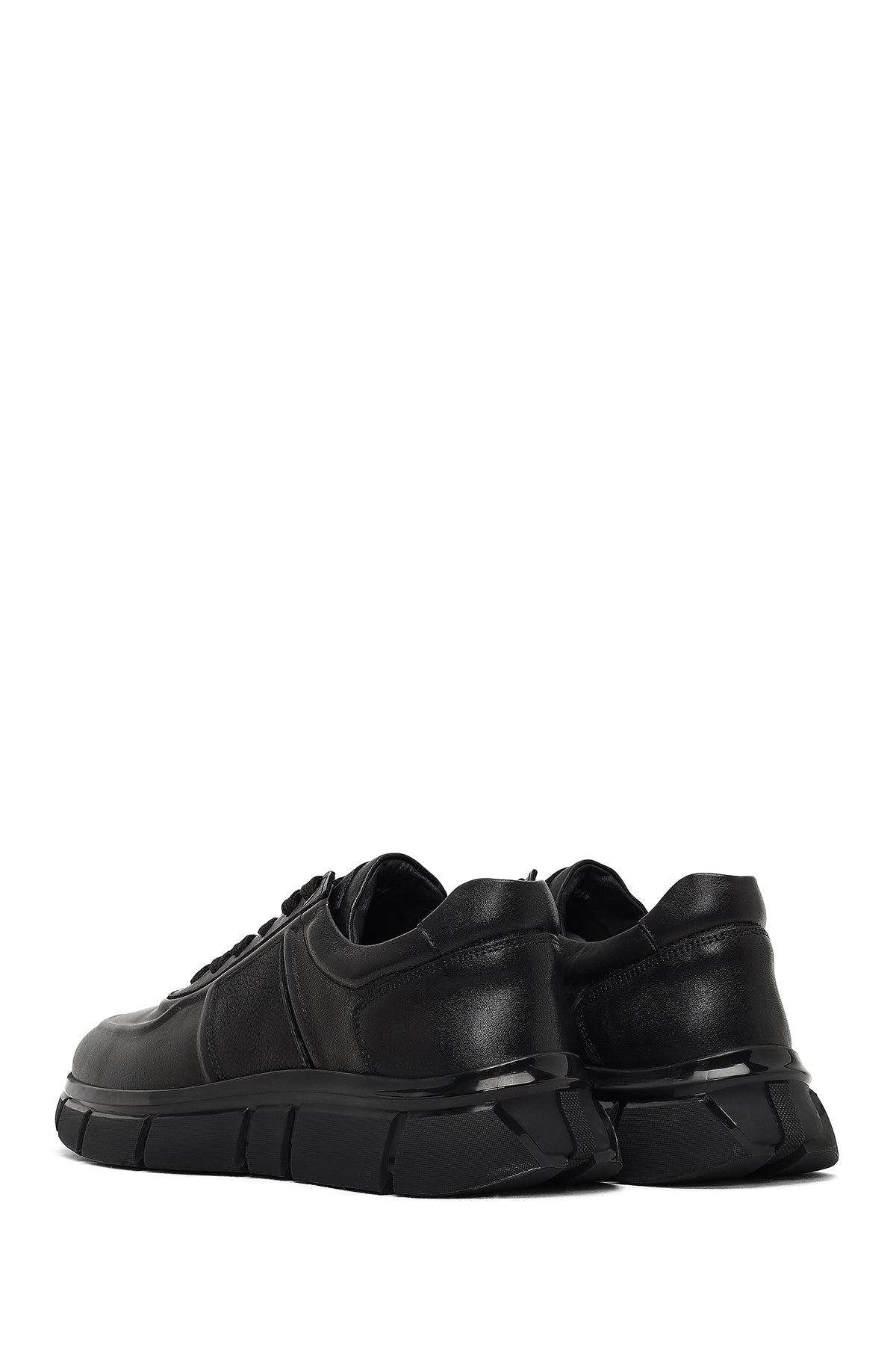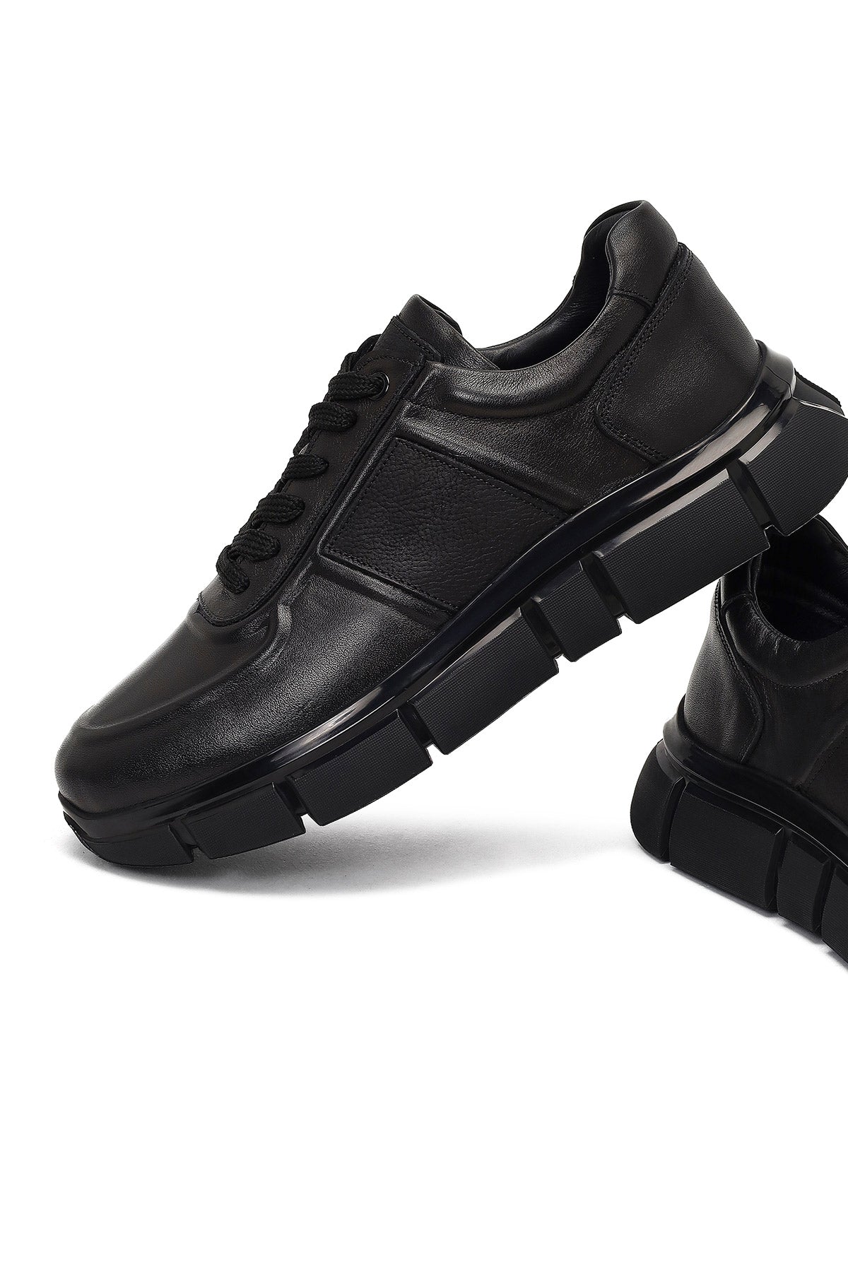 Erkek Siyah Bağcıklı Kalın Tabanlı Deri Sneaker