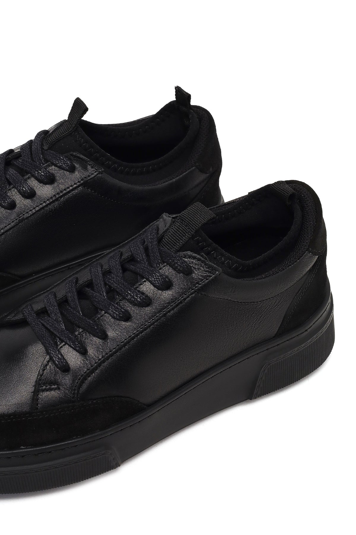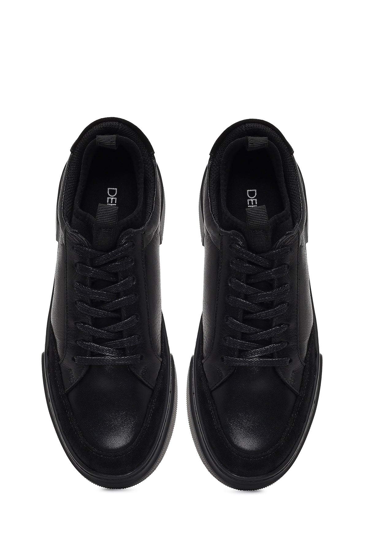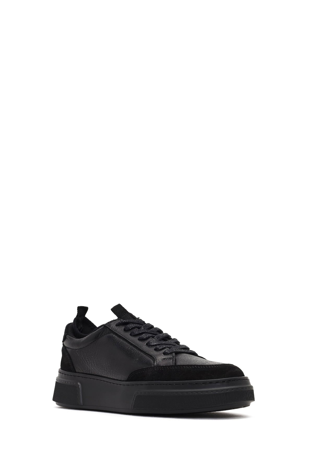 Erkek Siyah Bağcıklı Kalın Tabanlı Deri Sneaker