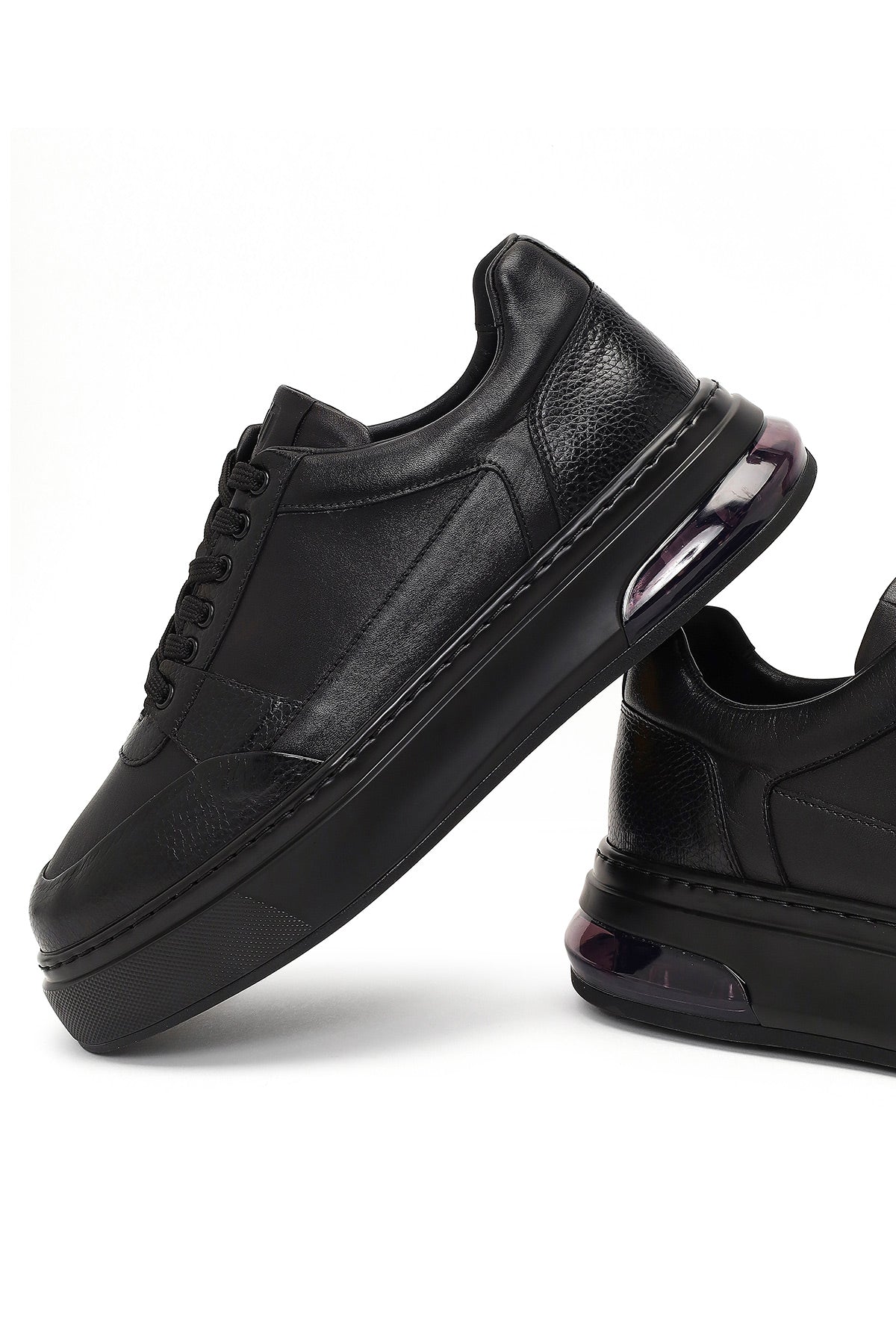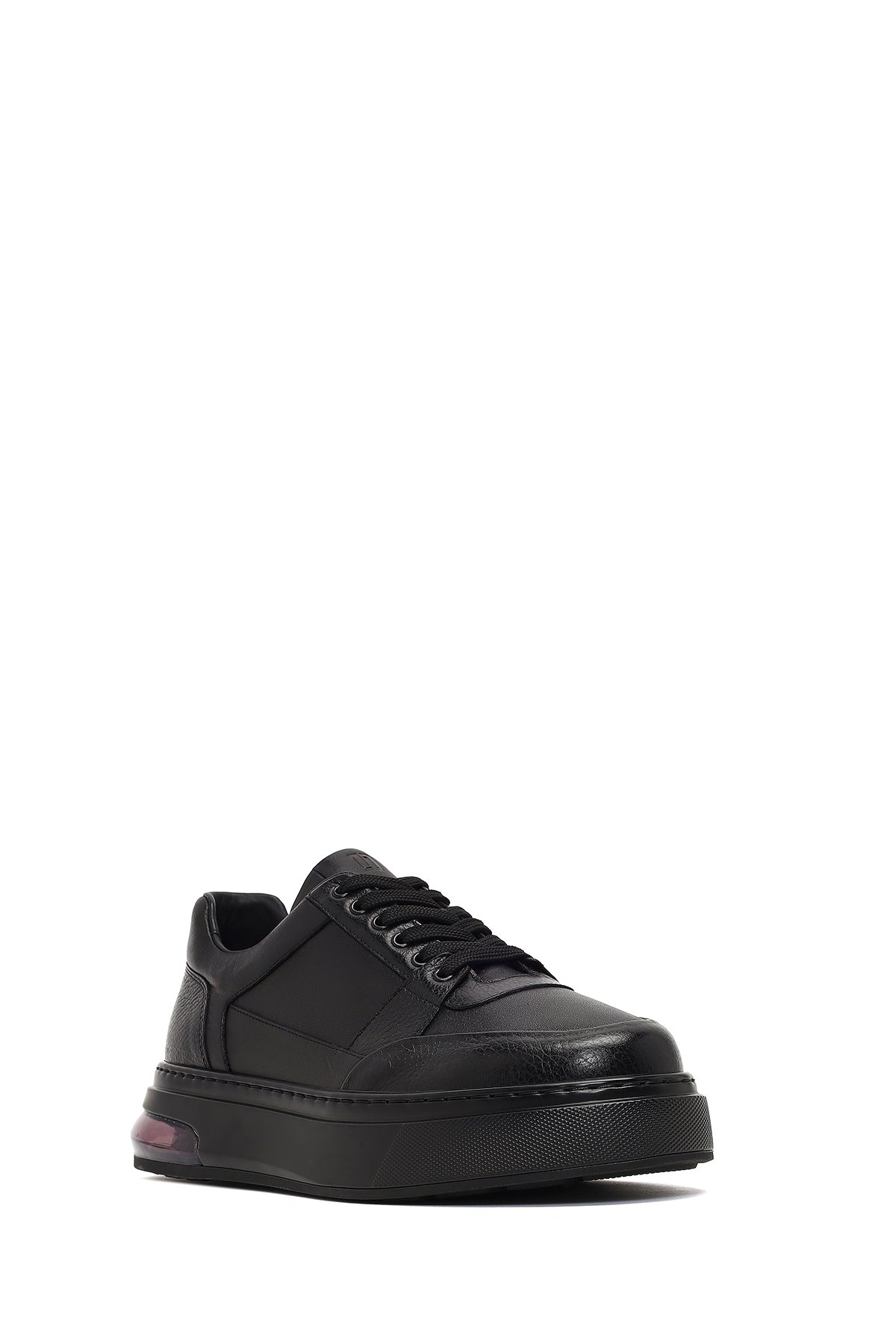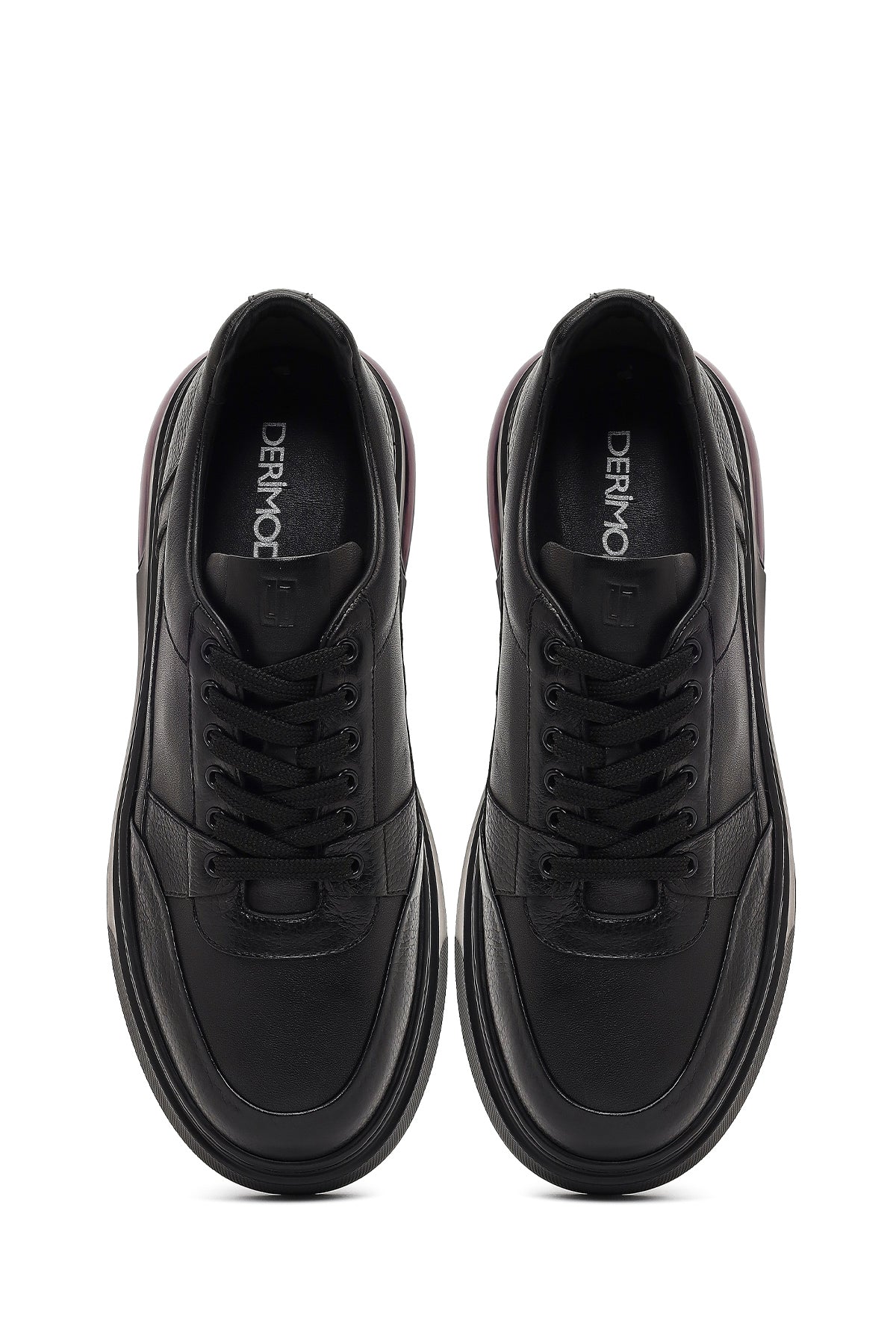 Erkek Siyah Bağcıklı Kalın Tabanlı Deri Sneaker