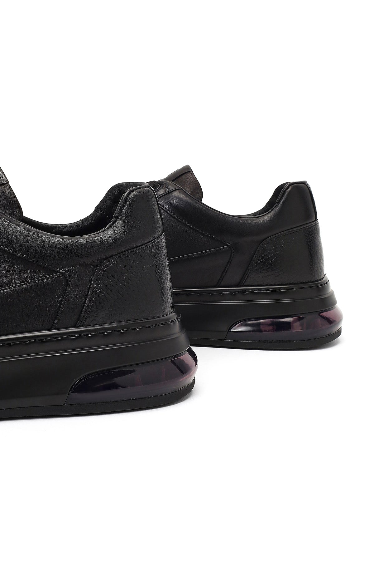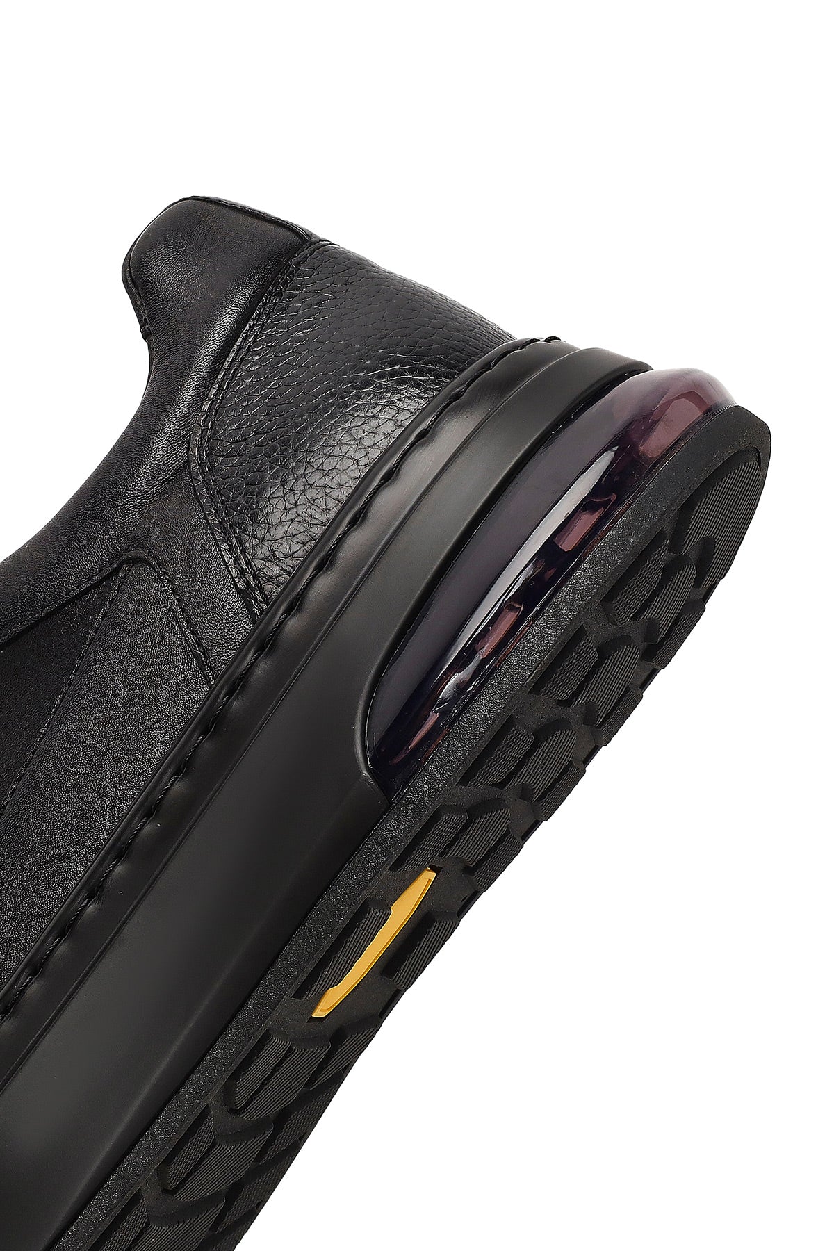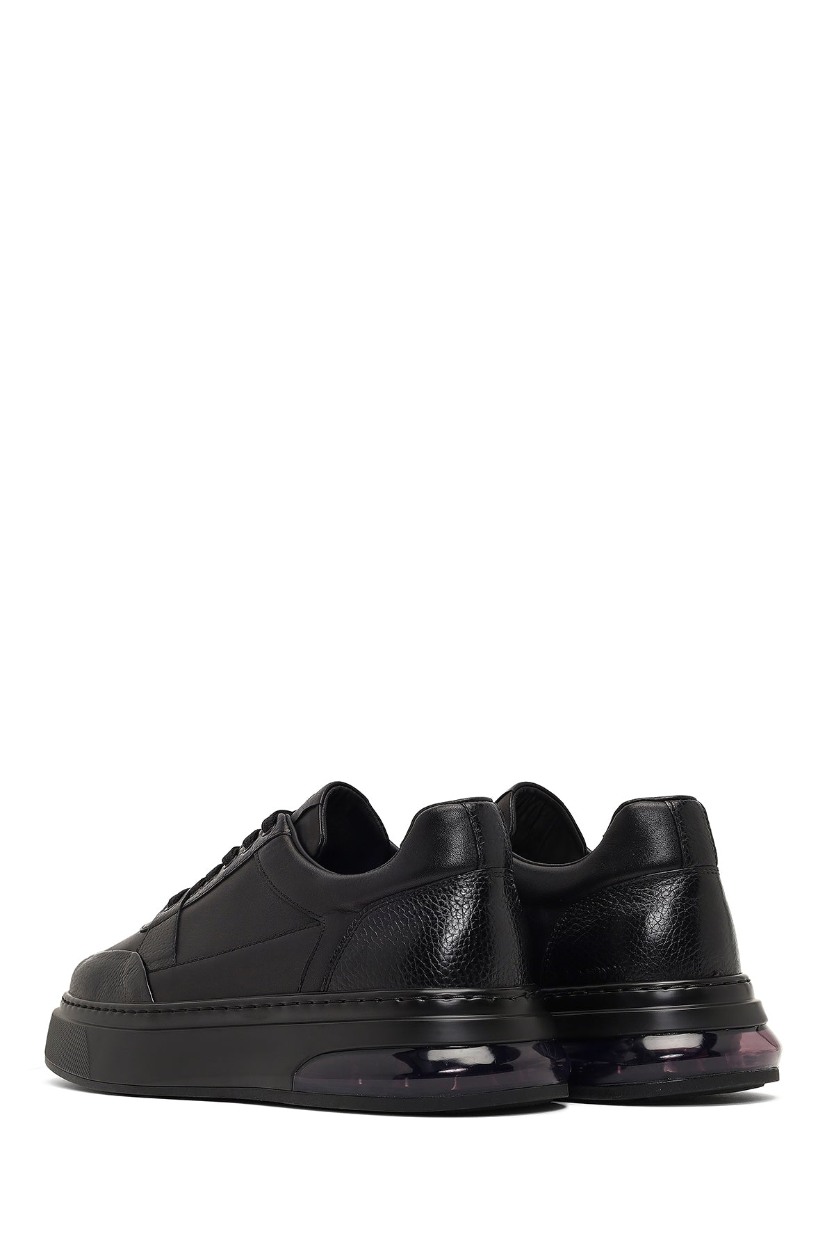 Erkek Siyah Bağcıklı Kalın Tabanlı Deri Sneaker
