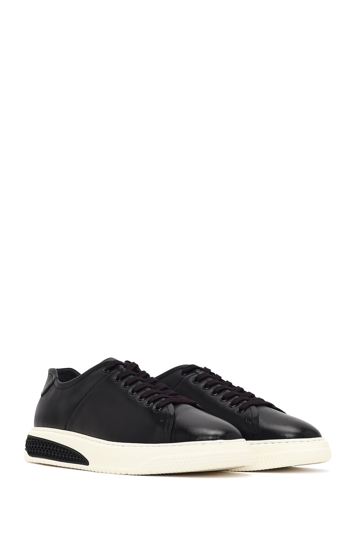 Erkek Siyah Bağcıklı Kalın Tabanlı Deri Sneaker