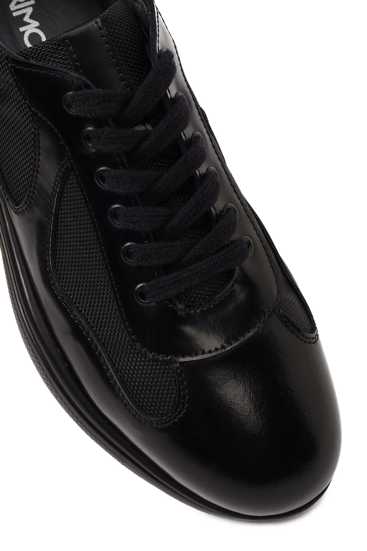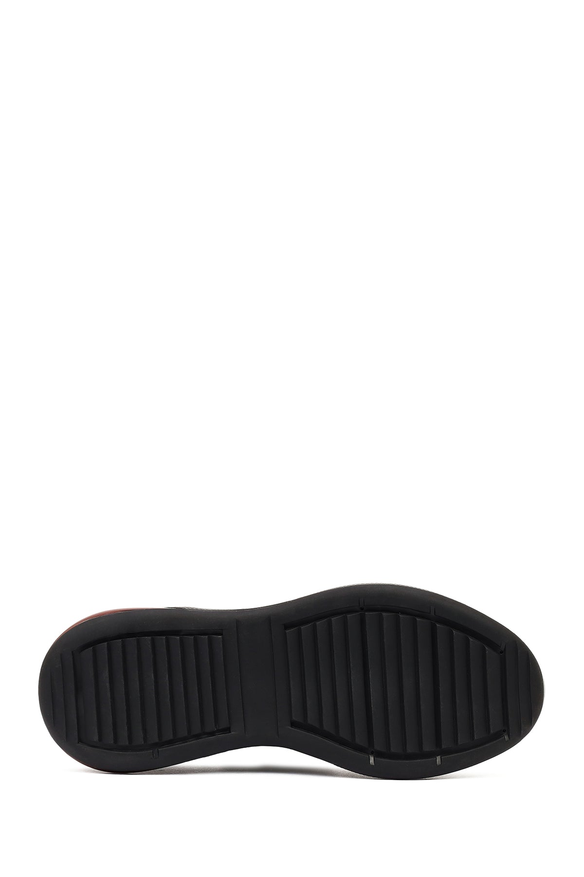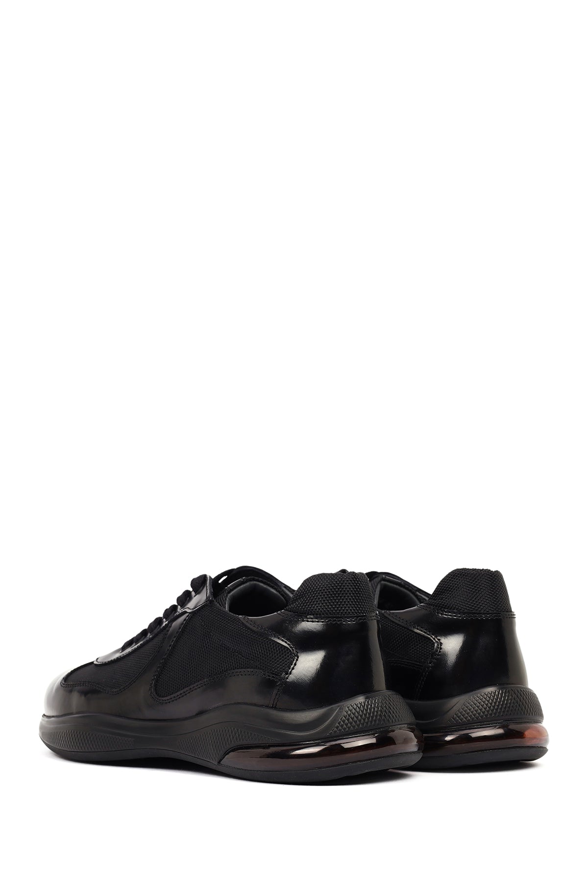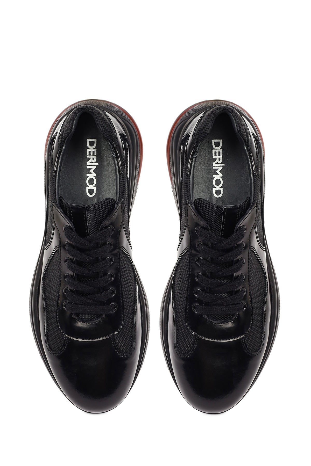 Erkek Siyah Bağcıklı Kalın Tabanlı Deri Casual Sneaker