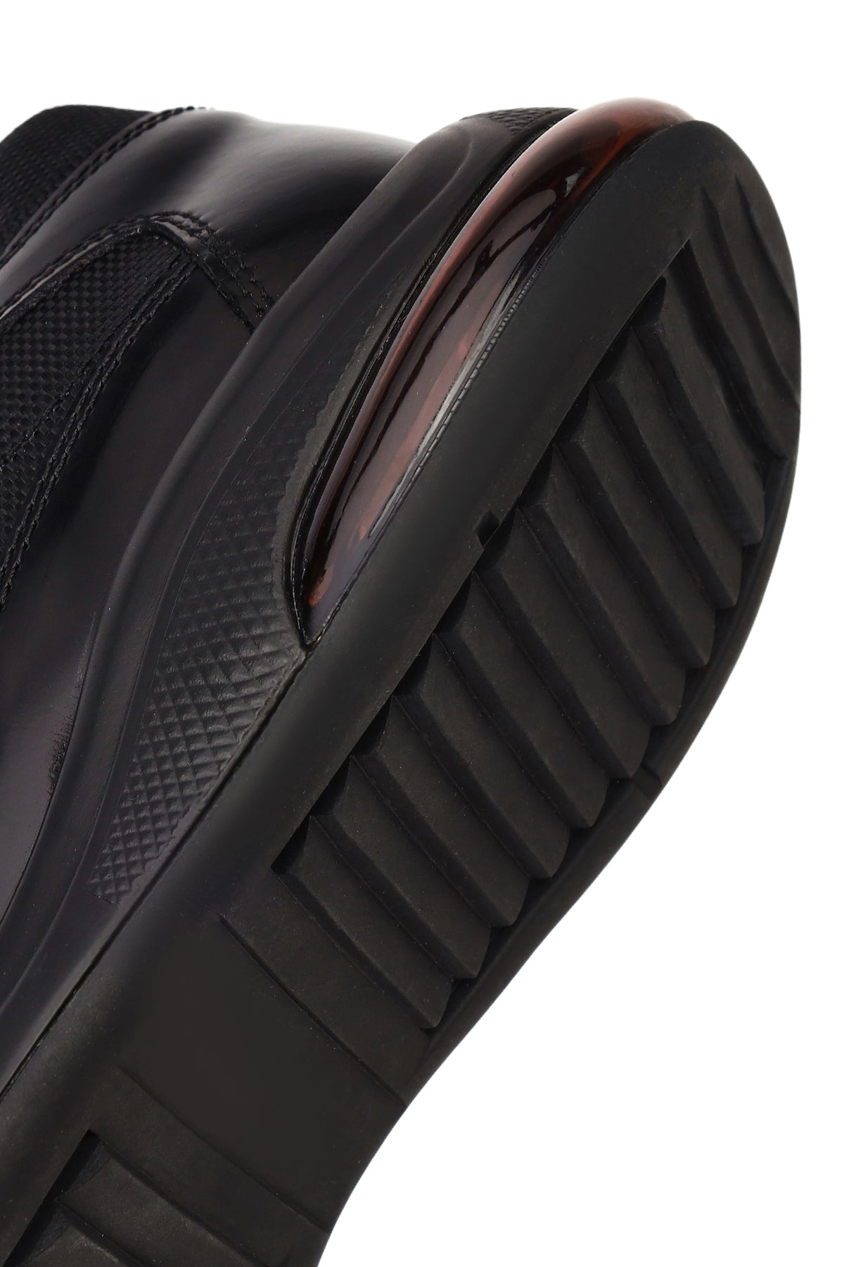 کتونی مردانه چرمی مشکی بندی با زیره ضخیم دری مد