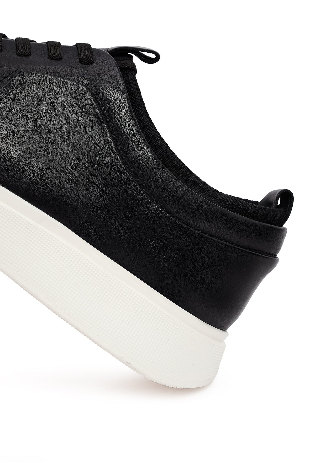 Erkek Siyah Bağcıklı Kalın Tabanlı Deri Sneaker