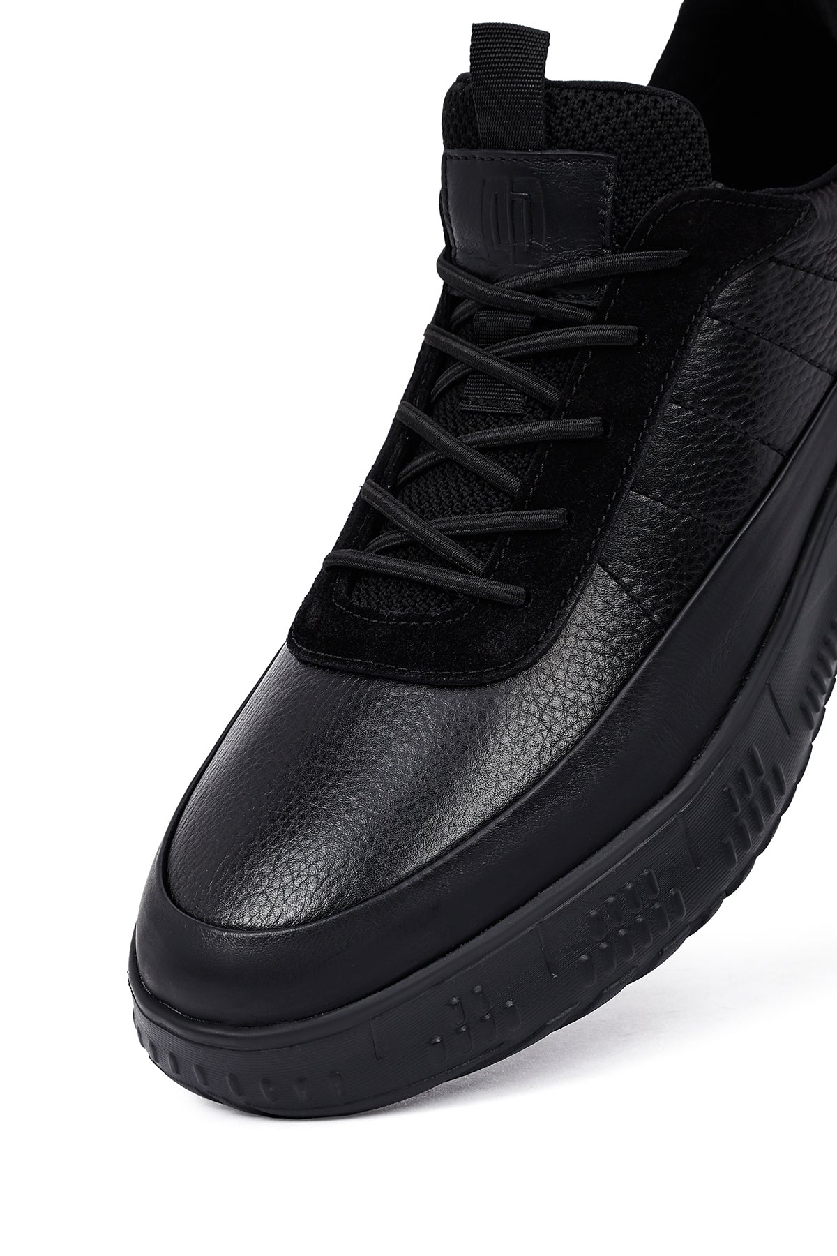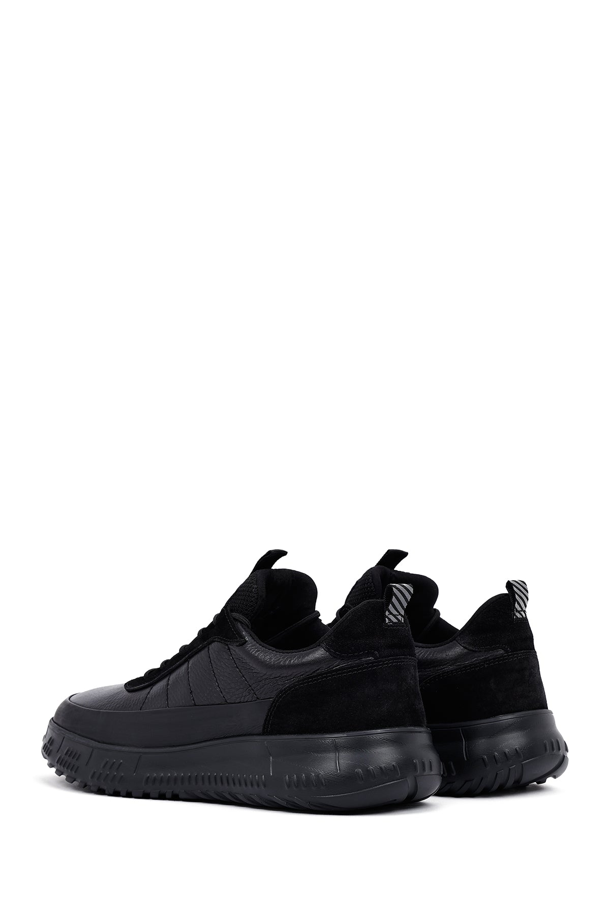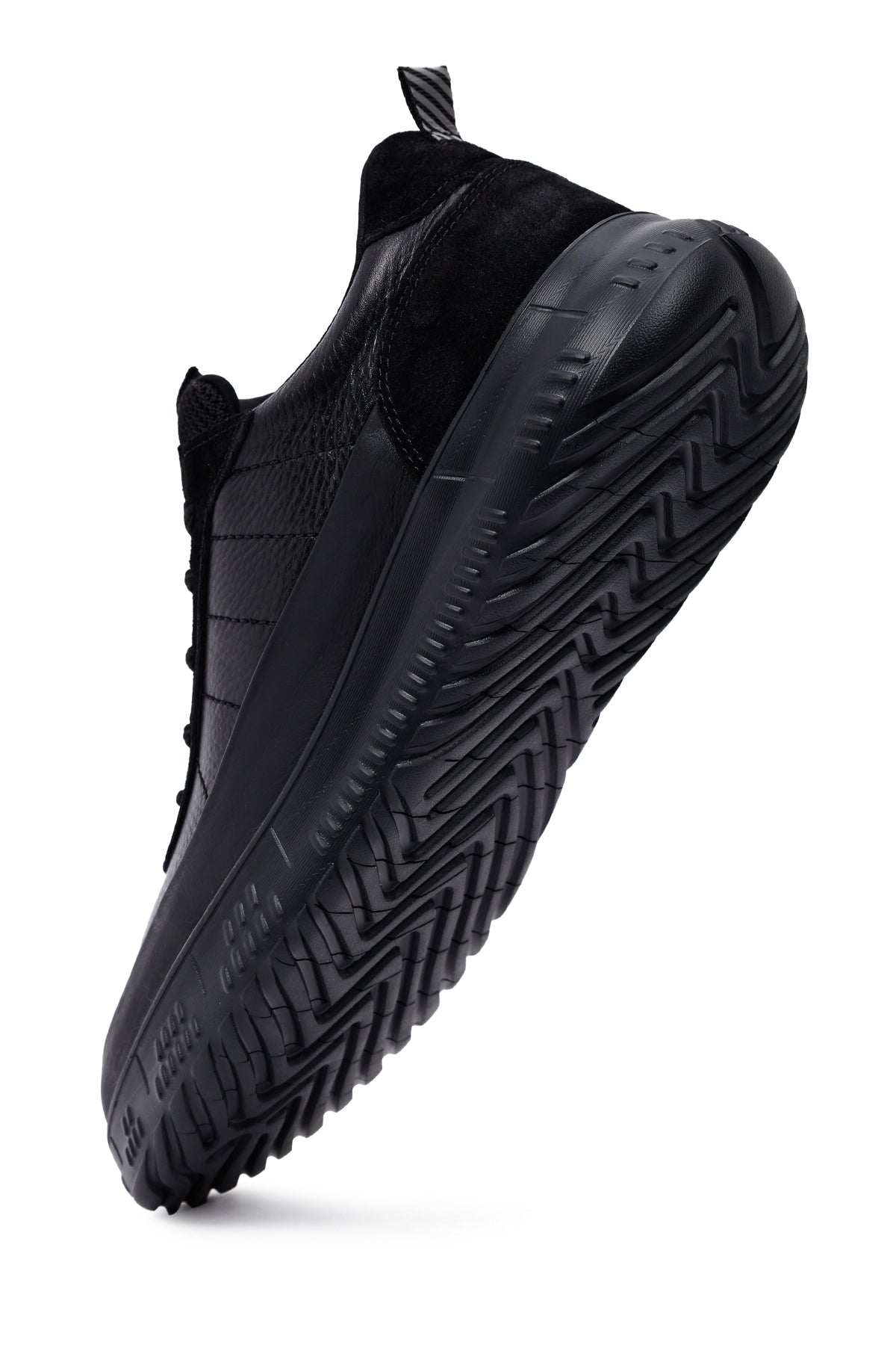 Erkek Siyah Bağcıklı Kalın Tabanlı Deri Sneaker