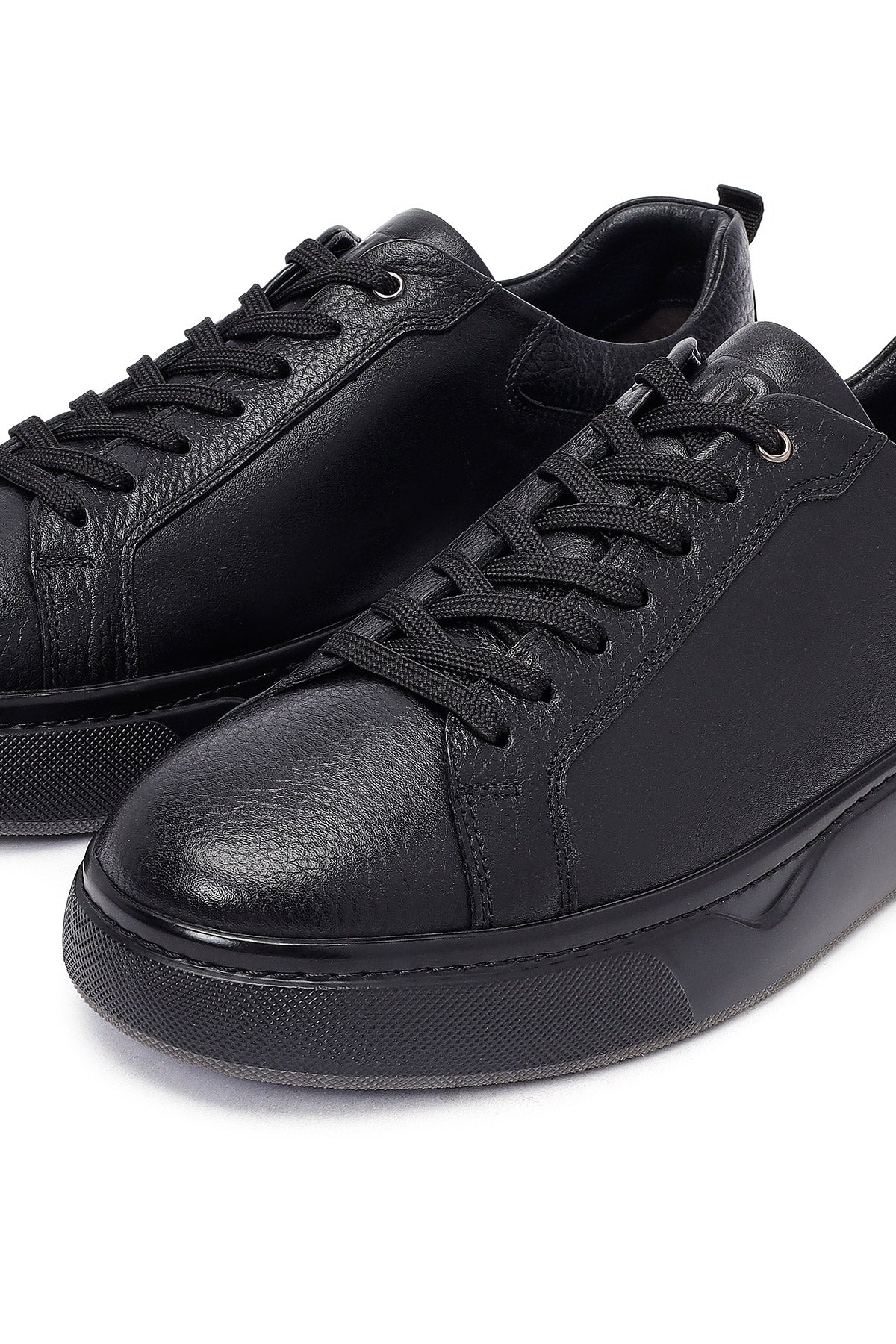 Erkek Siyah Bağcıklı Kalın Tabanlı Deri Sneaker