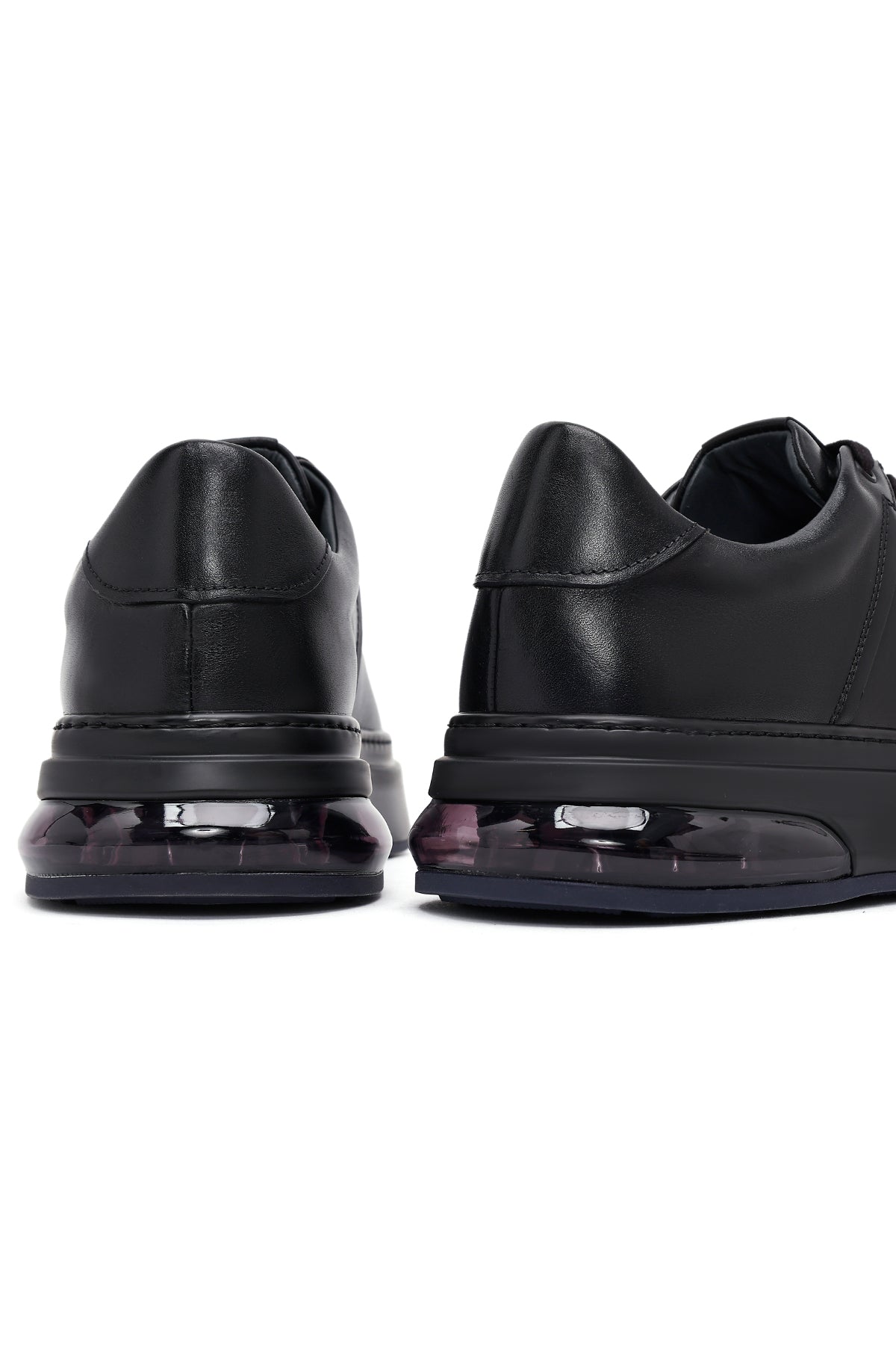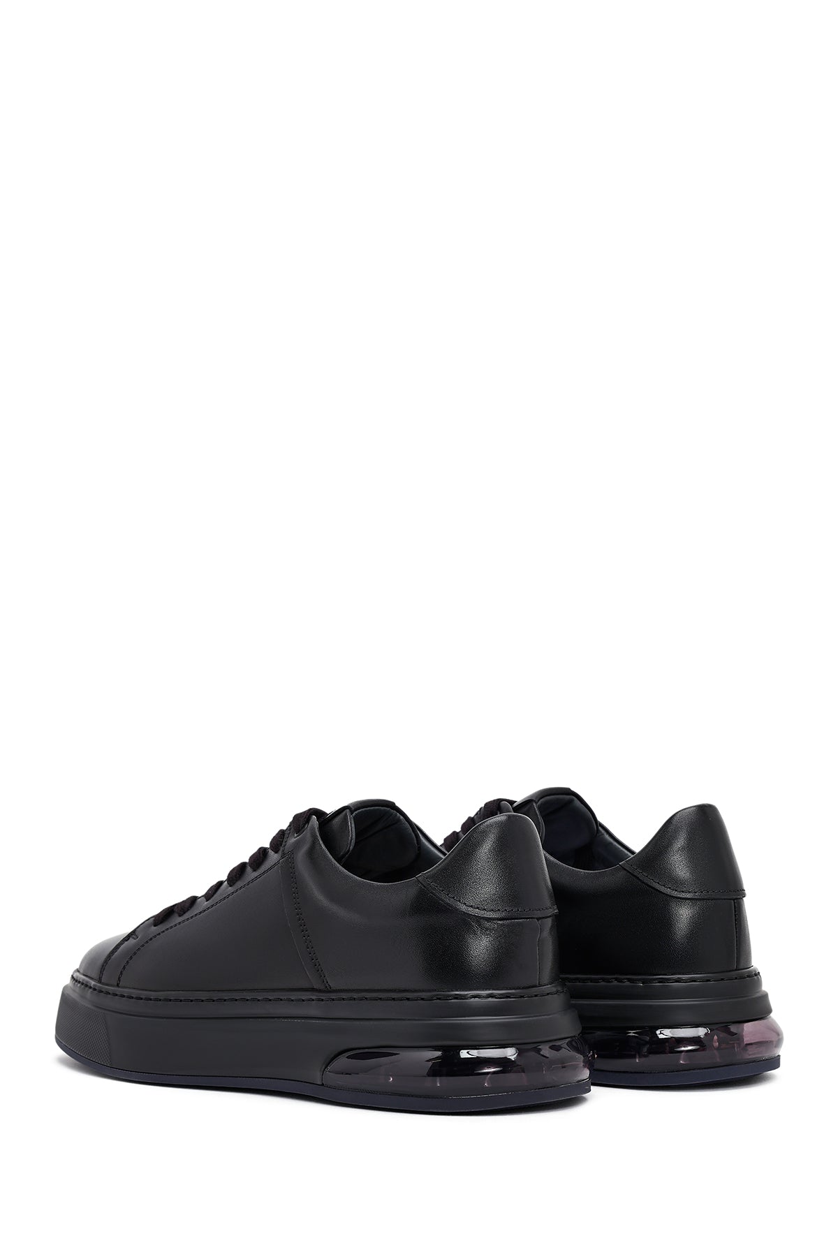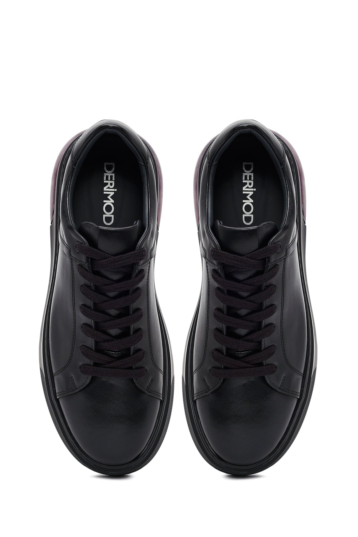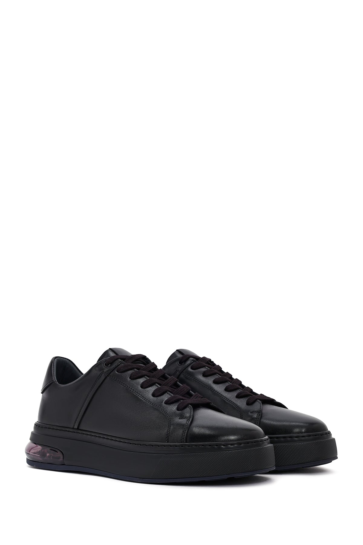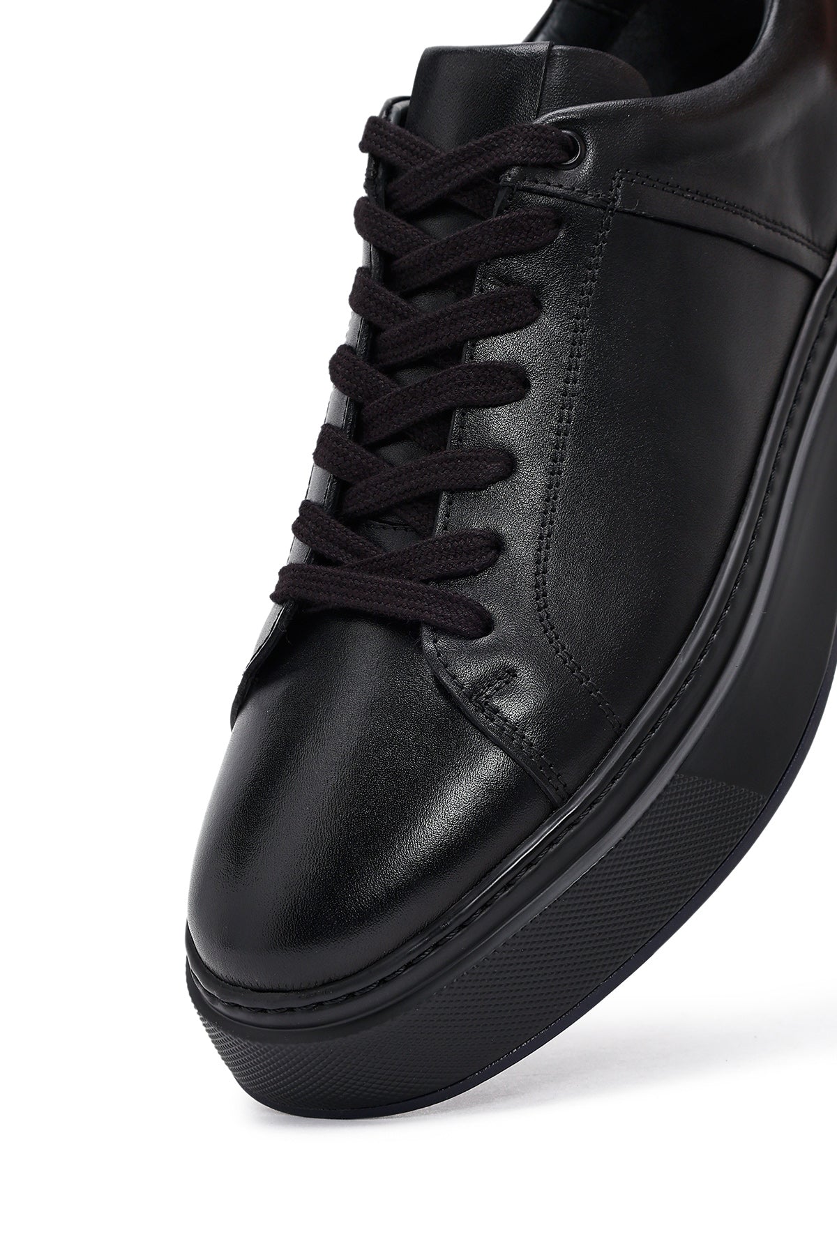 Erkek Siyah Bağcıklı Kalın Tabanlı Deri Sneaker