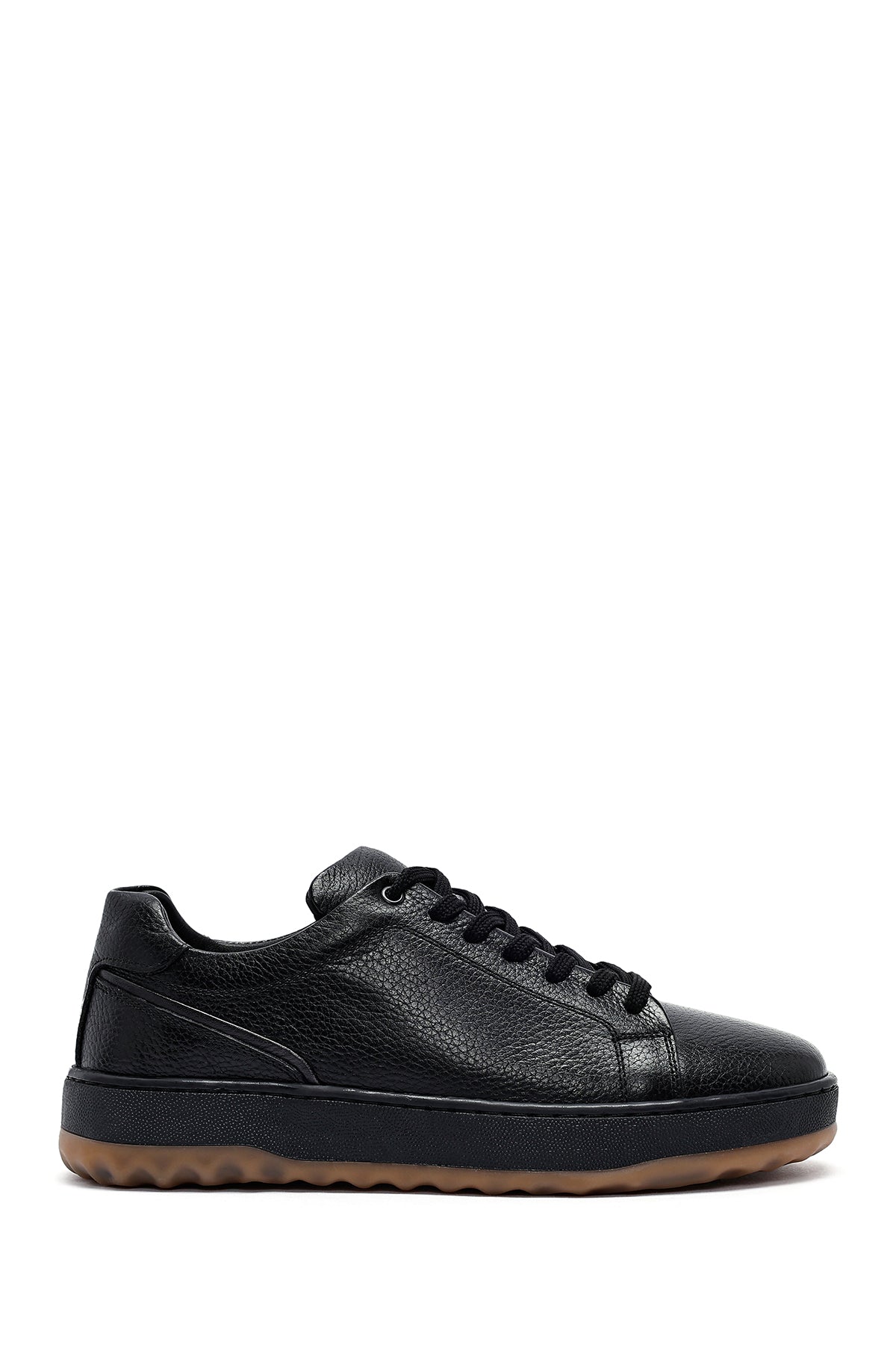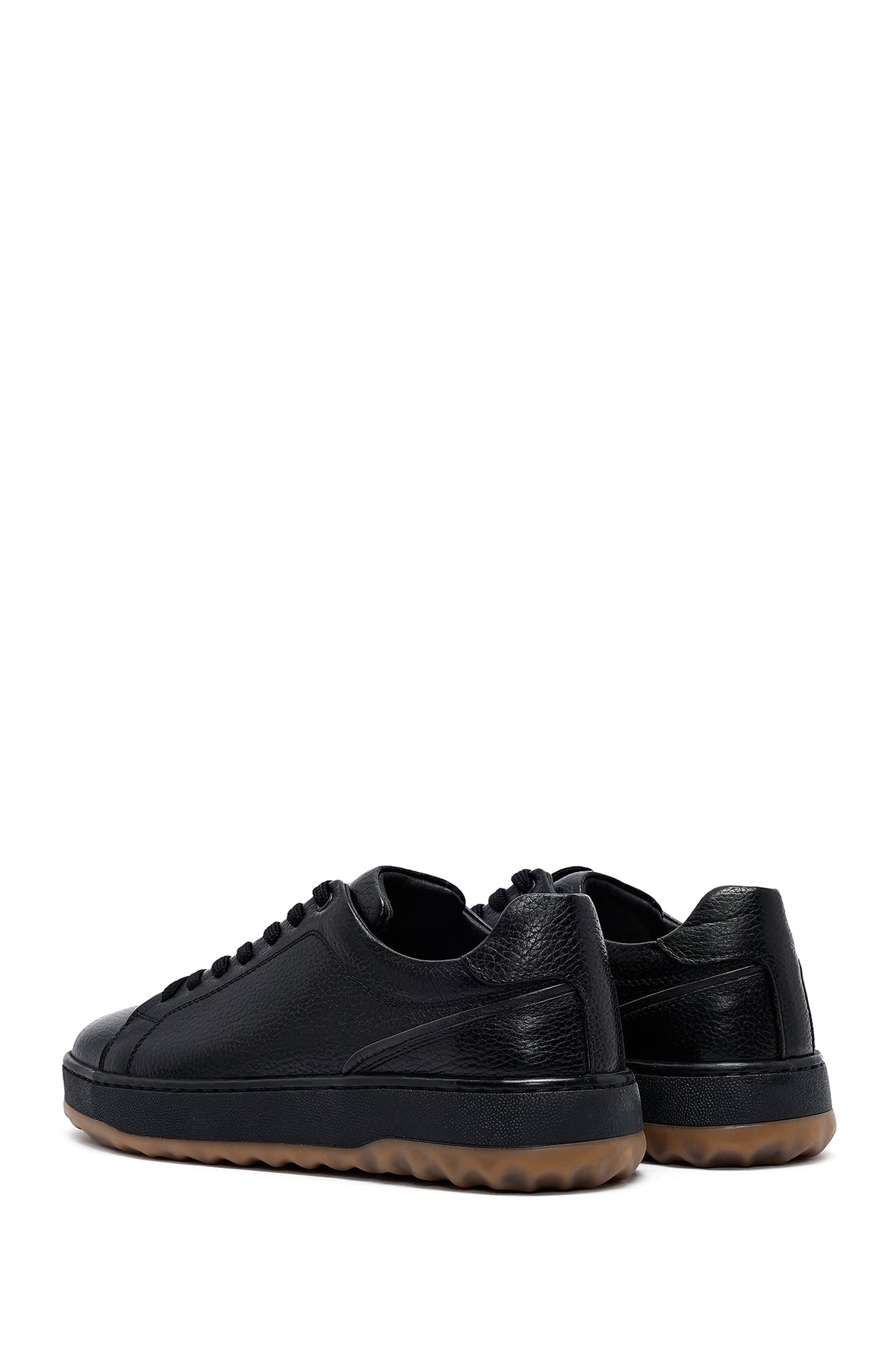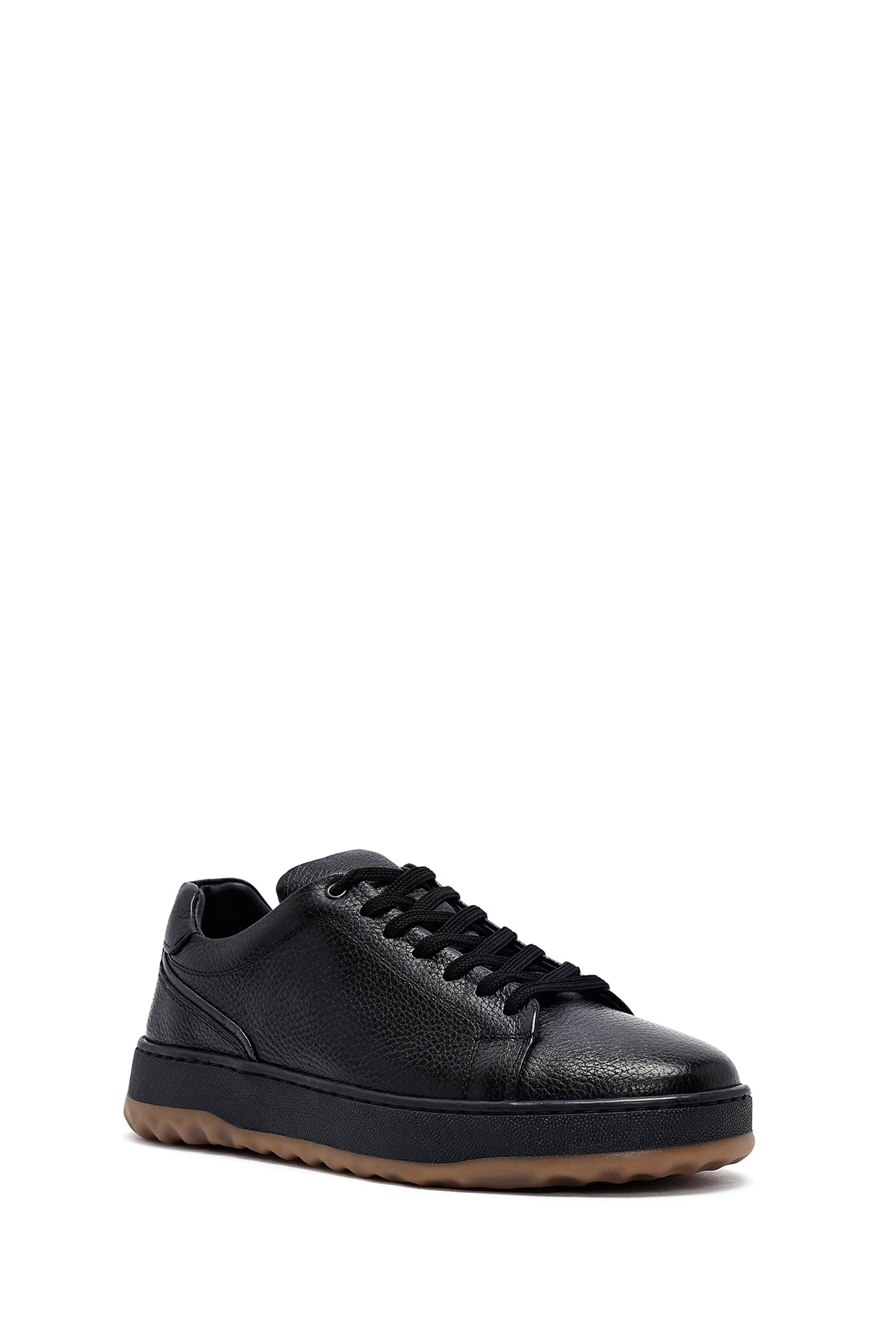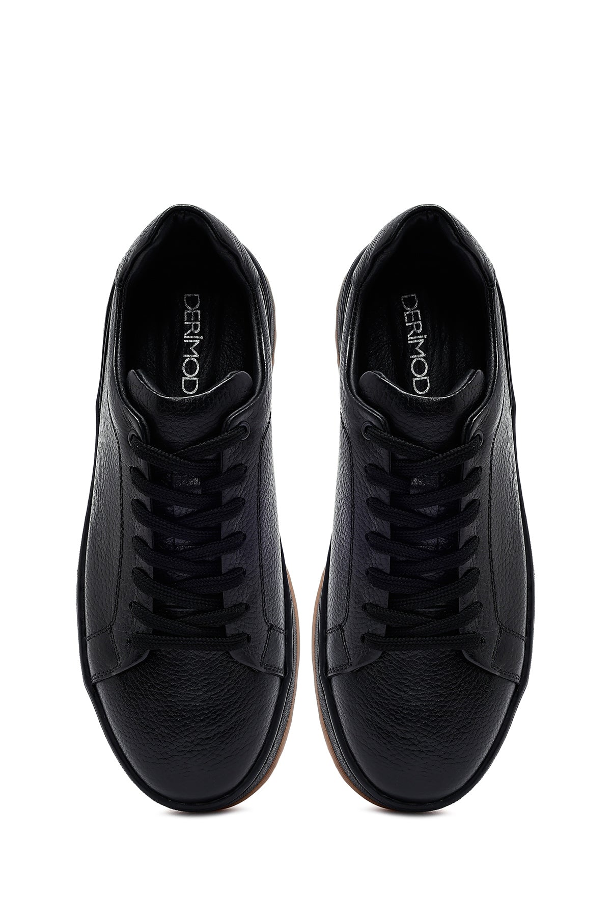Erkek Siyah Bağcıklı Kalın Tabanlı Deri Sneaker