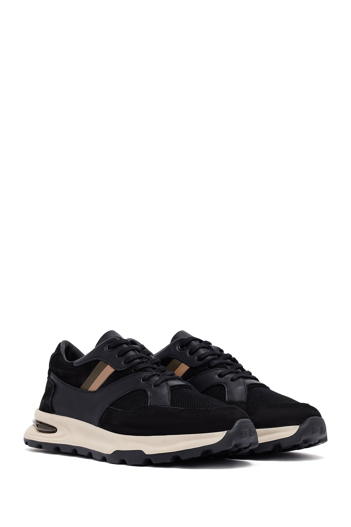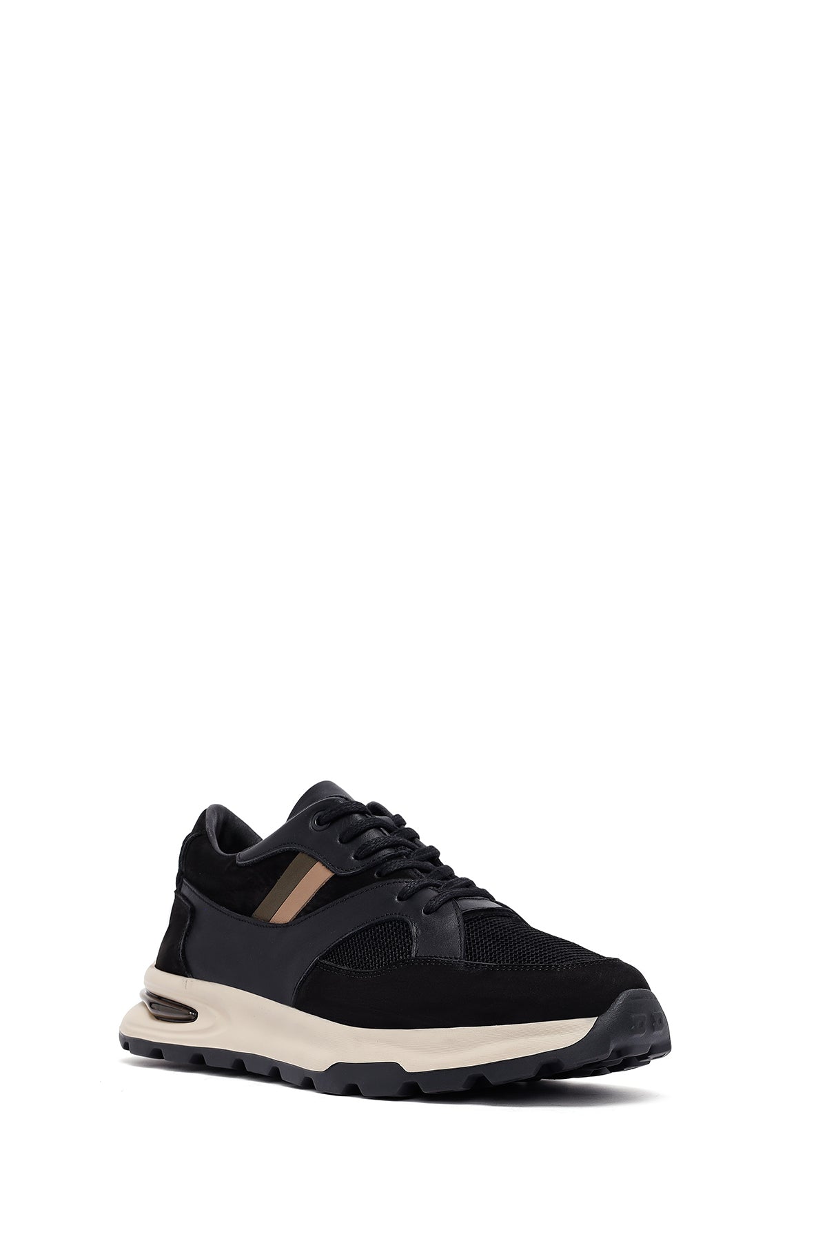 Erkek Siyah Bağcıklı Kalın Tabanlı Deri Sneaker