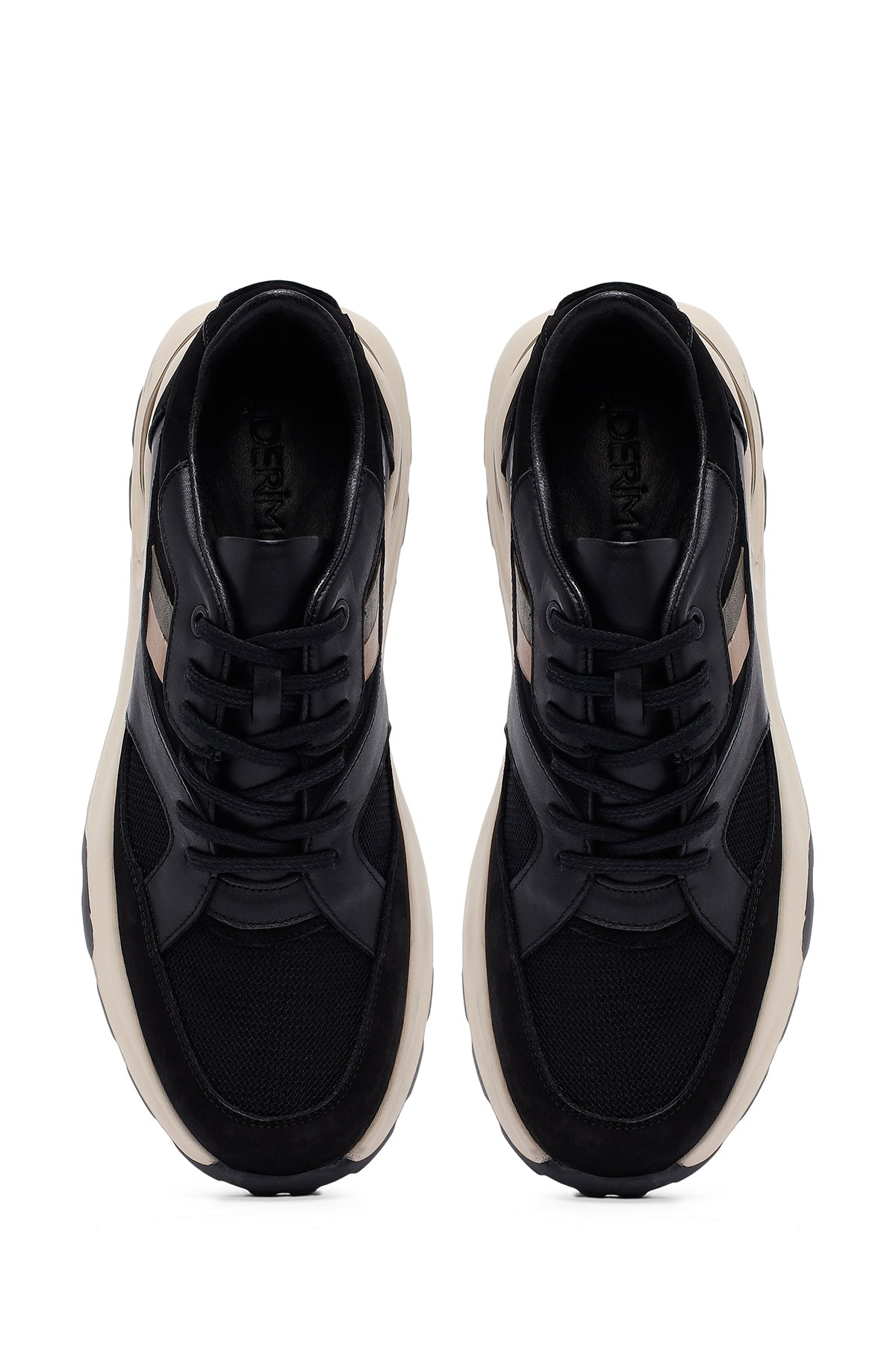 کتونی مردانه چرمی مشکی بندی زیره ضخیم دری مد