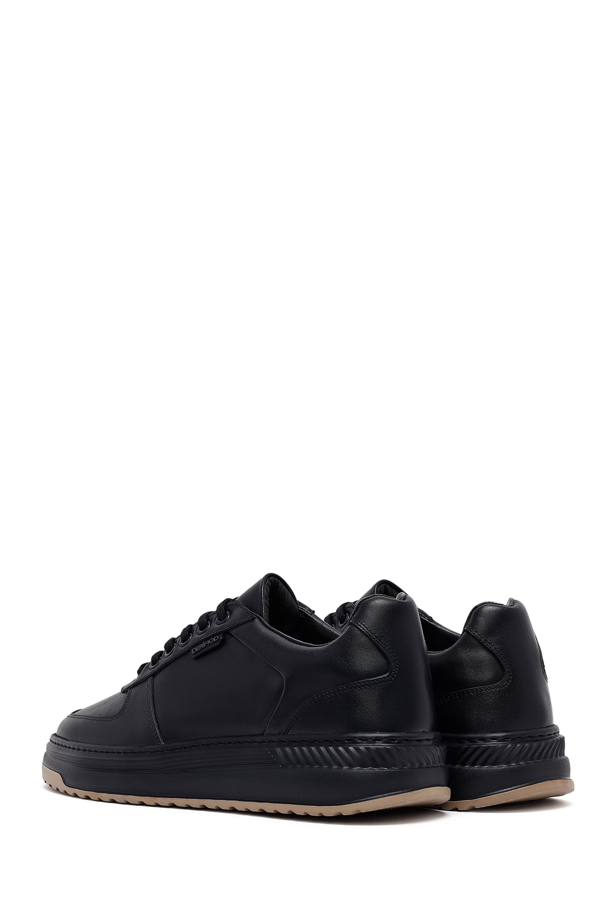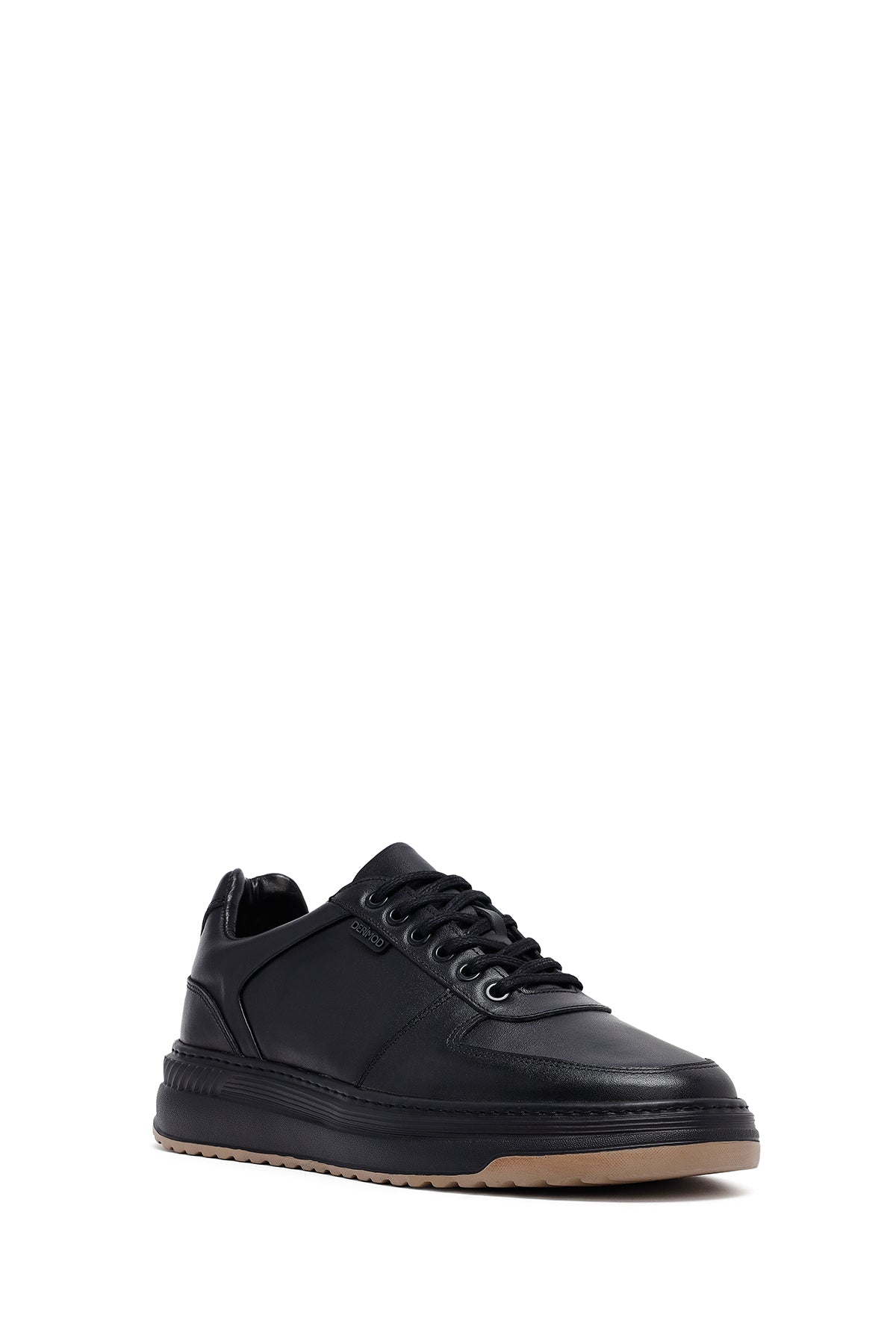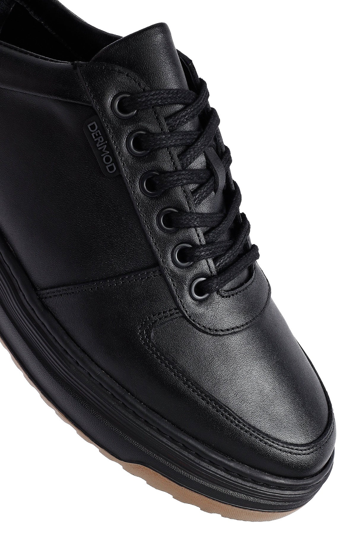 Erkek Siyah Bağcıklı Kalın Tabanlı Deri Sneaker