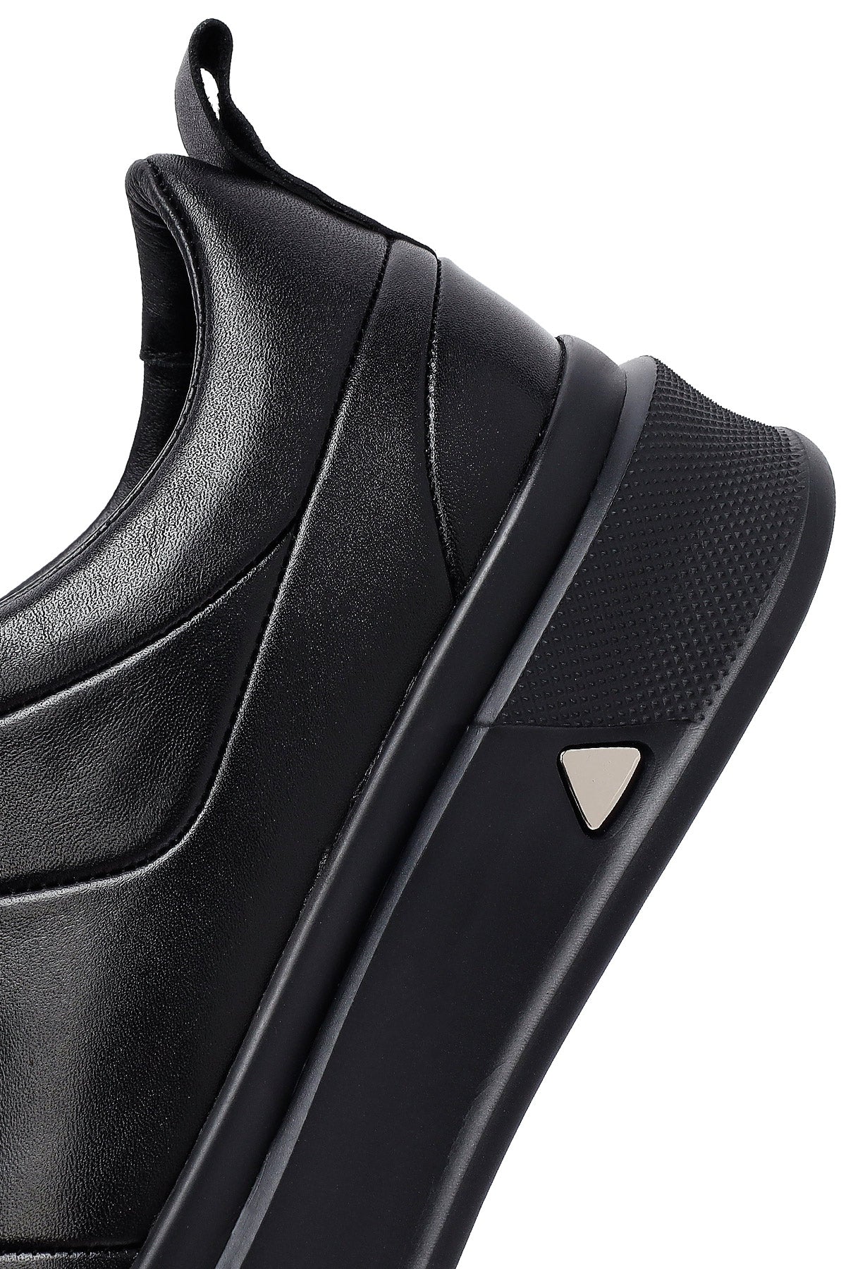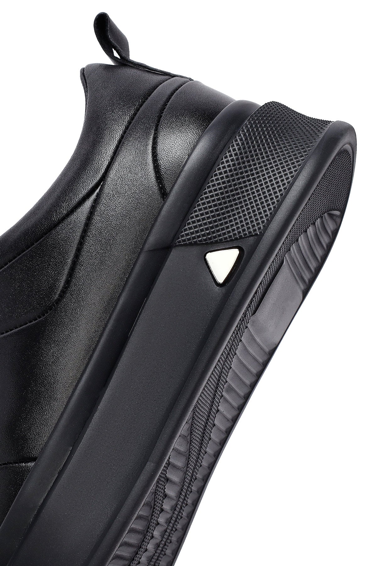 Erkek Siyah Bağcıklı Kalın Tabanlı Deri Sneaker