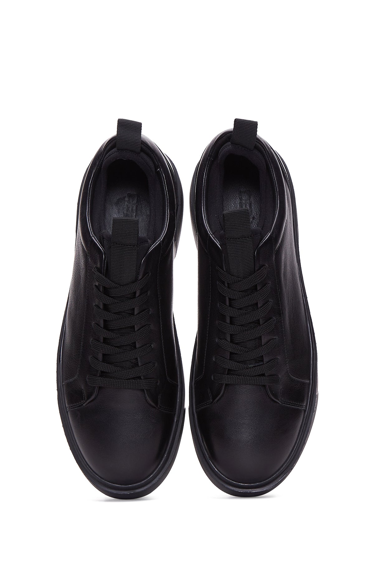 Erkek Siyah Bağcıklı Kalın Tabanlı Deri Sneaker