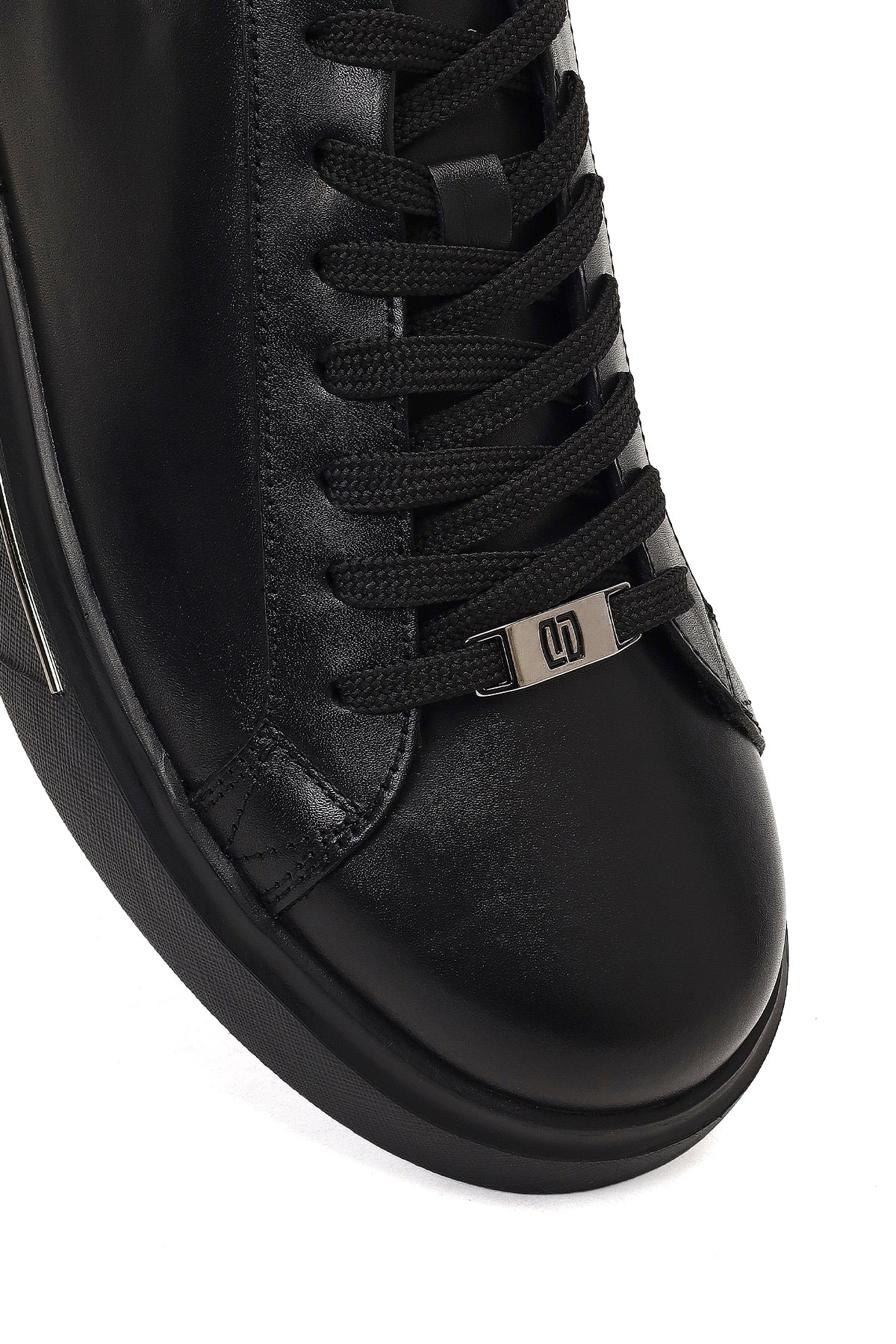 Erkek Siyah Bağcıklı Kalın Tabanlı Deri Sneaker