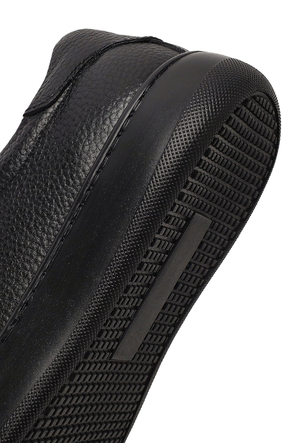Erkek Siyah Bağcıklı Kalın Tabanlı Deri Sneaker