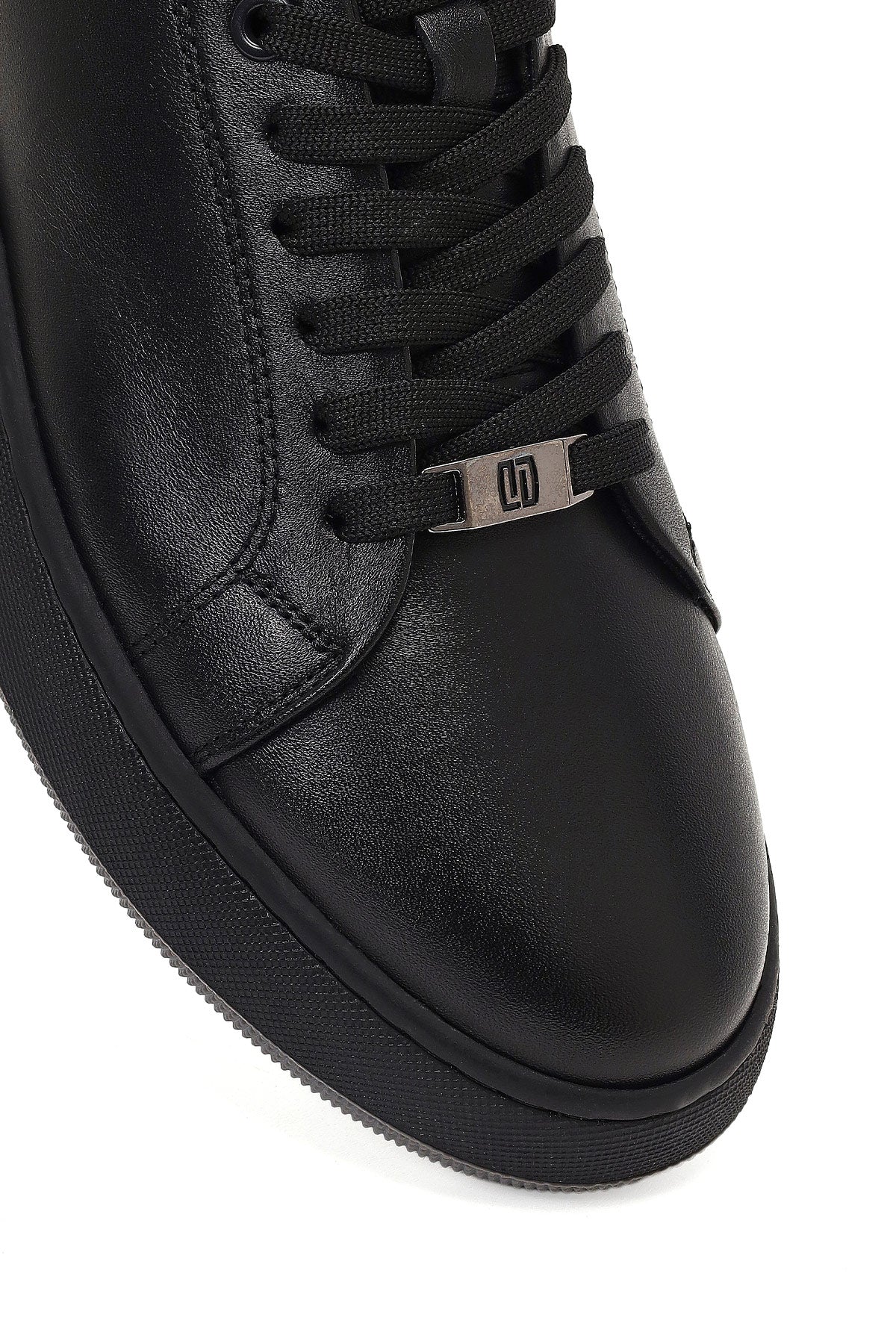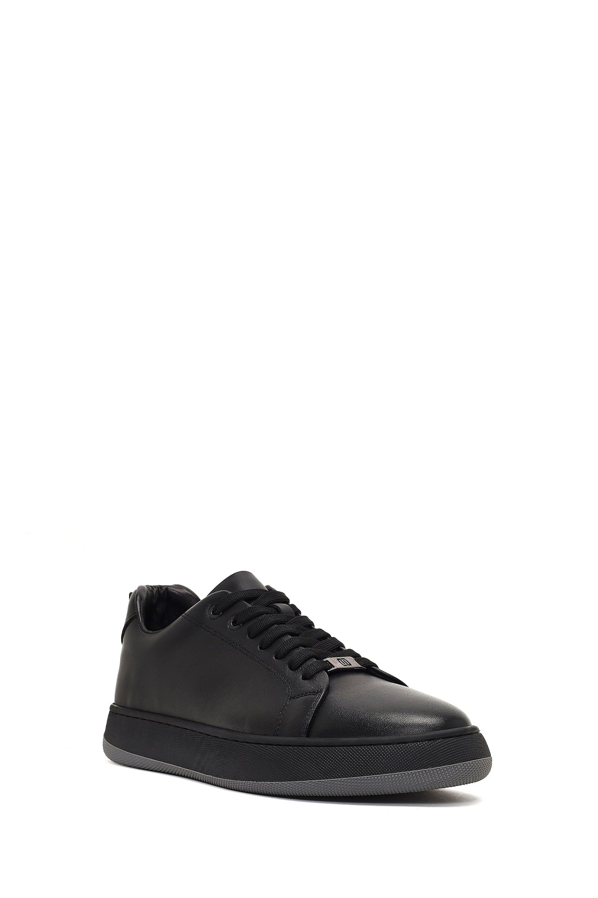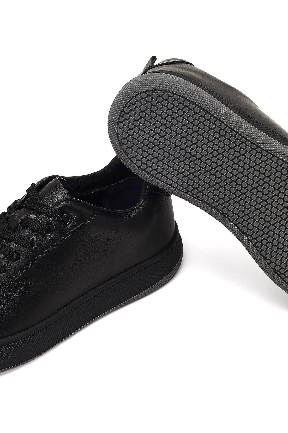 Erkek Siyah Bağcıklı Kalın Tabanlı Deri Sneaker