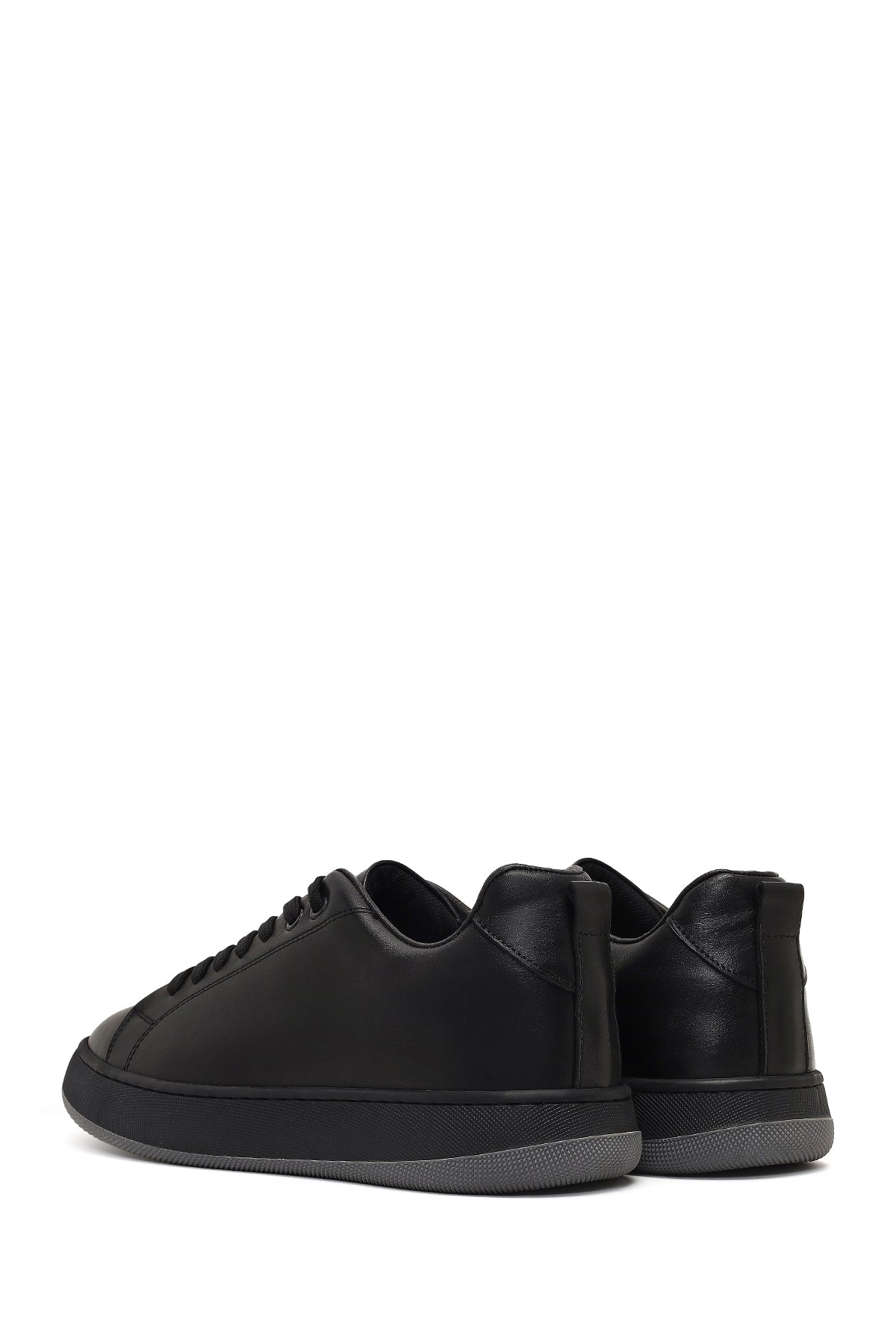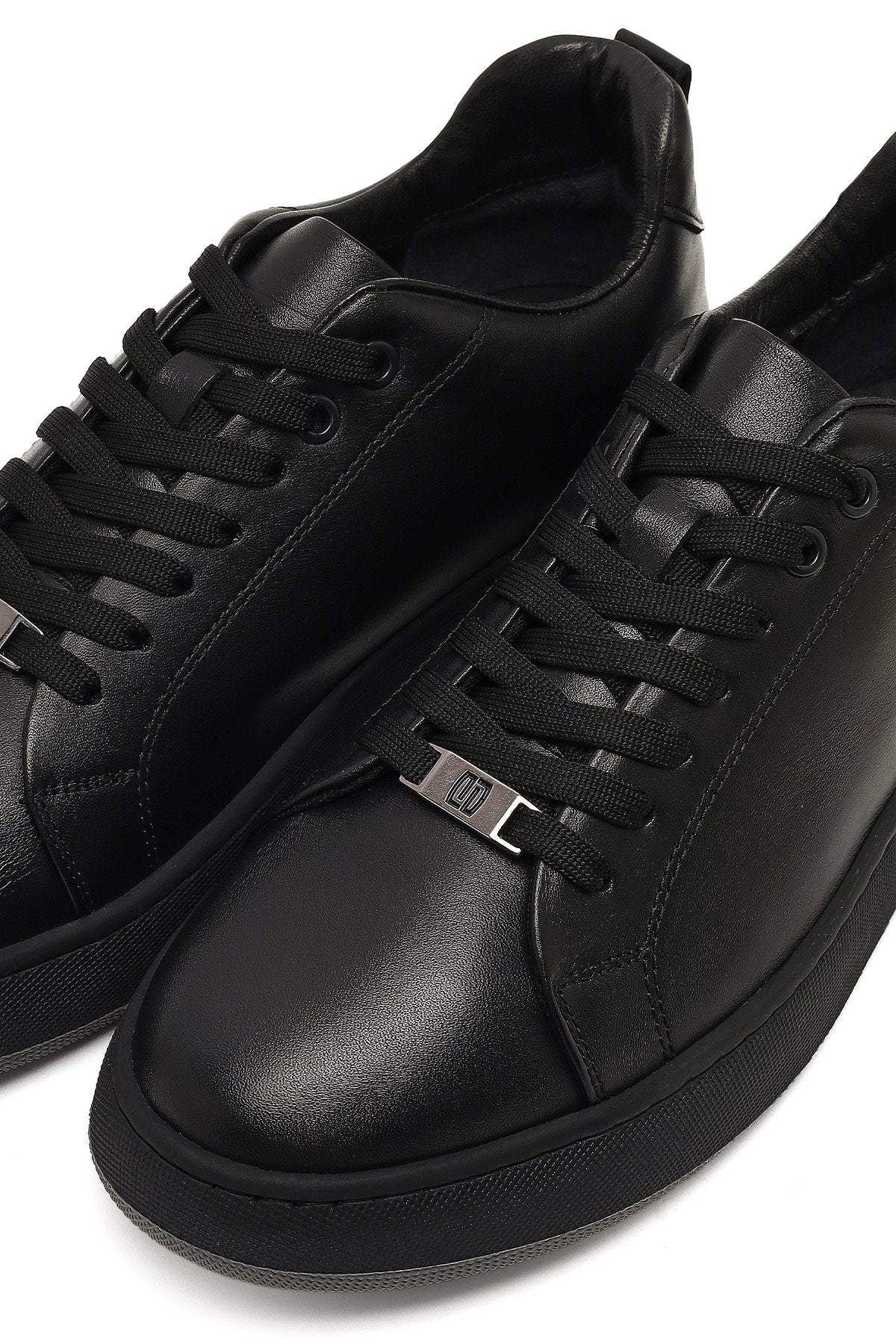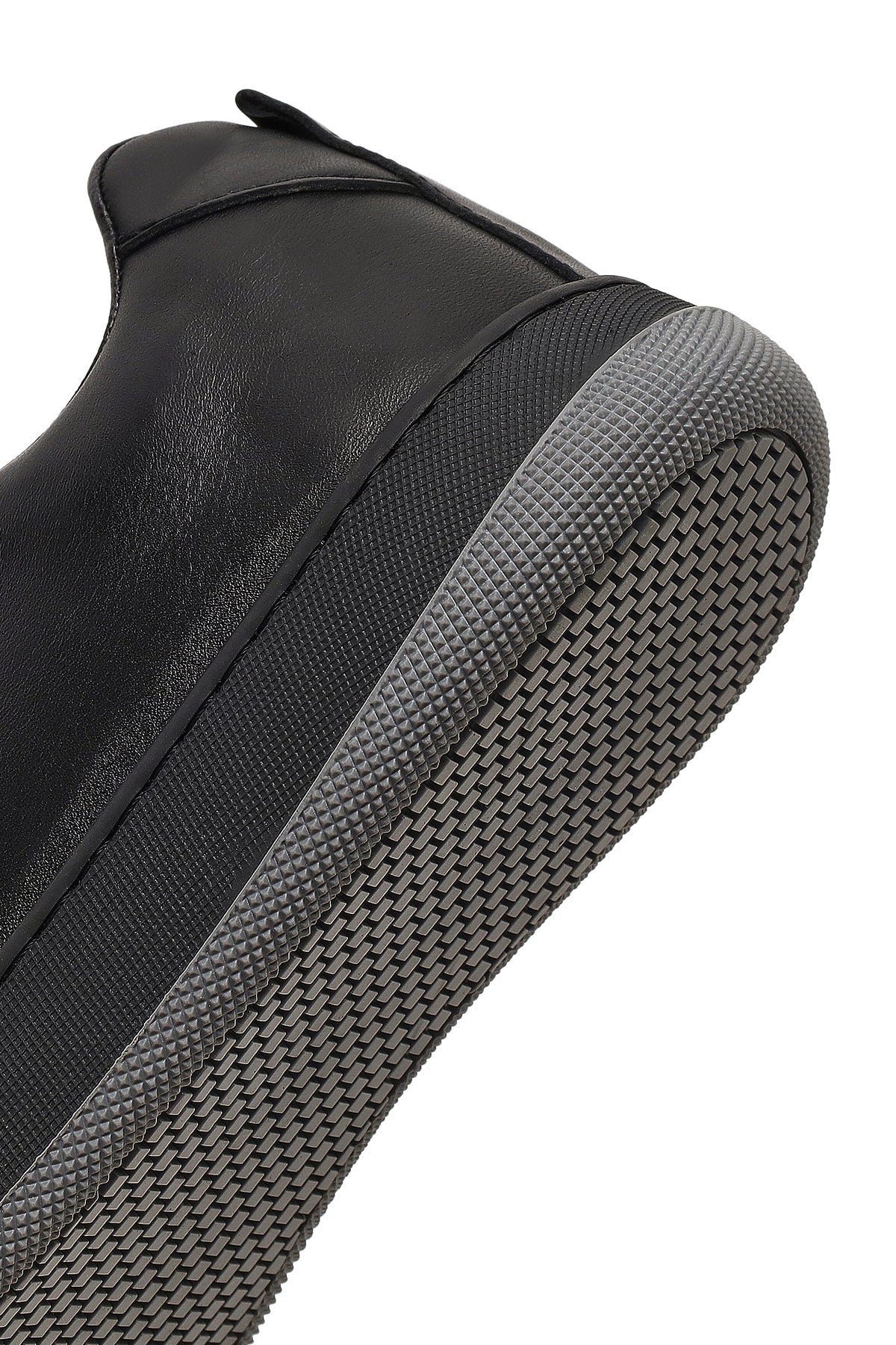 Erkek Siyah Bağcıklı Kalın Tabanlı Deri Sneaker