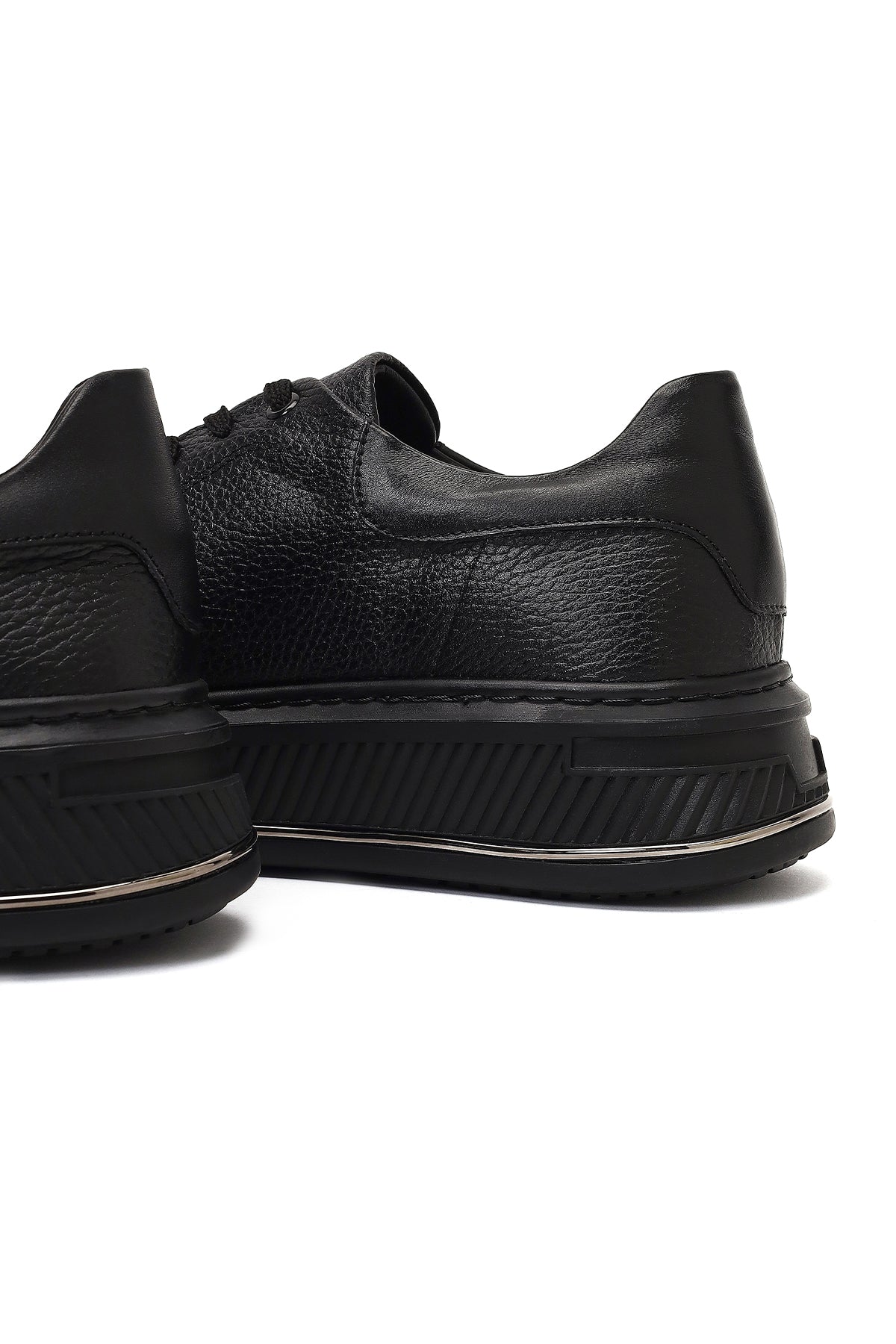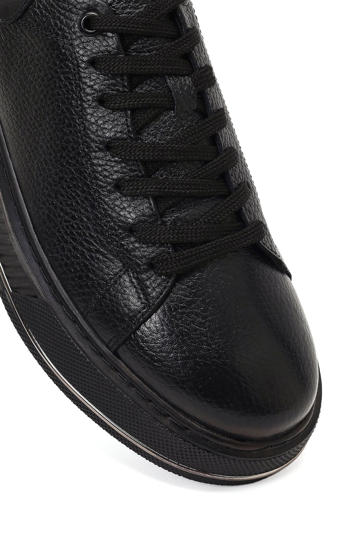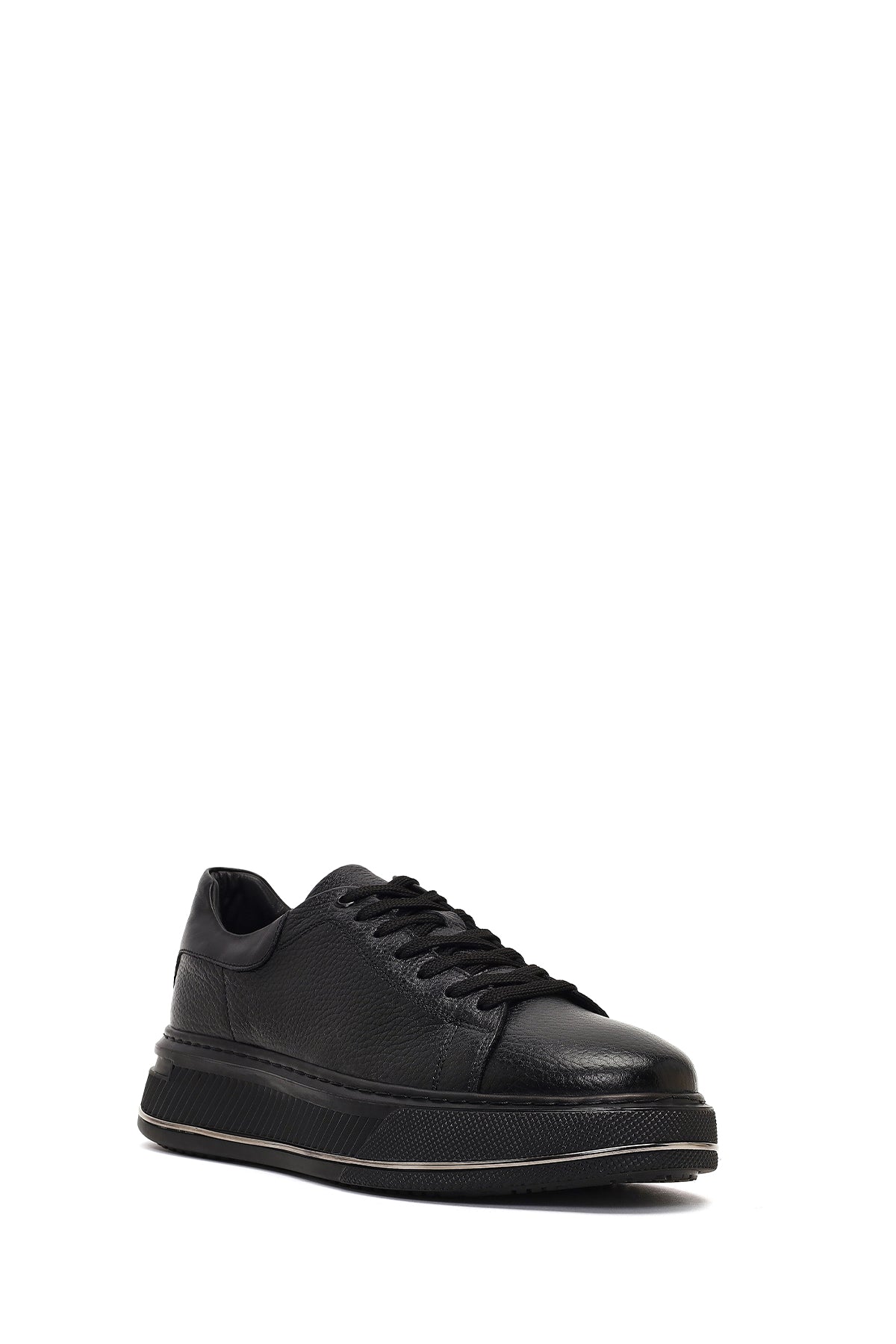 Erkek Siyah Bağcıklı Kalın Tabanlı Deri Sneaker