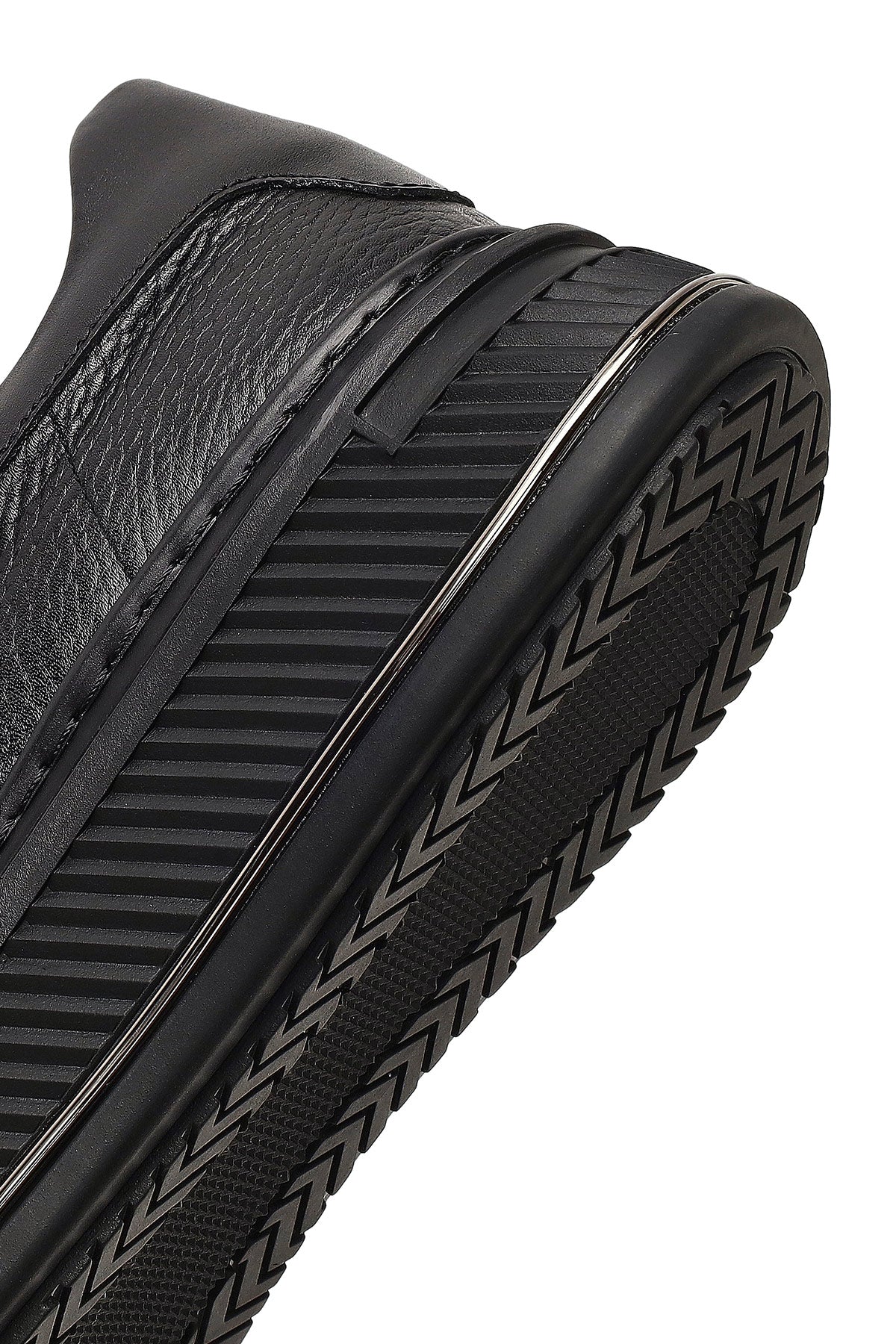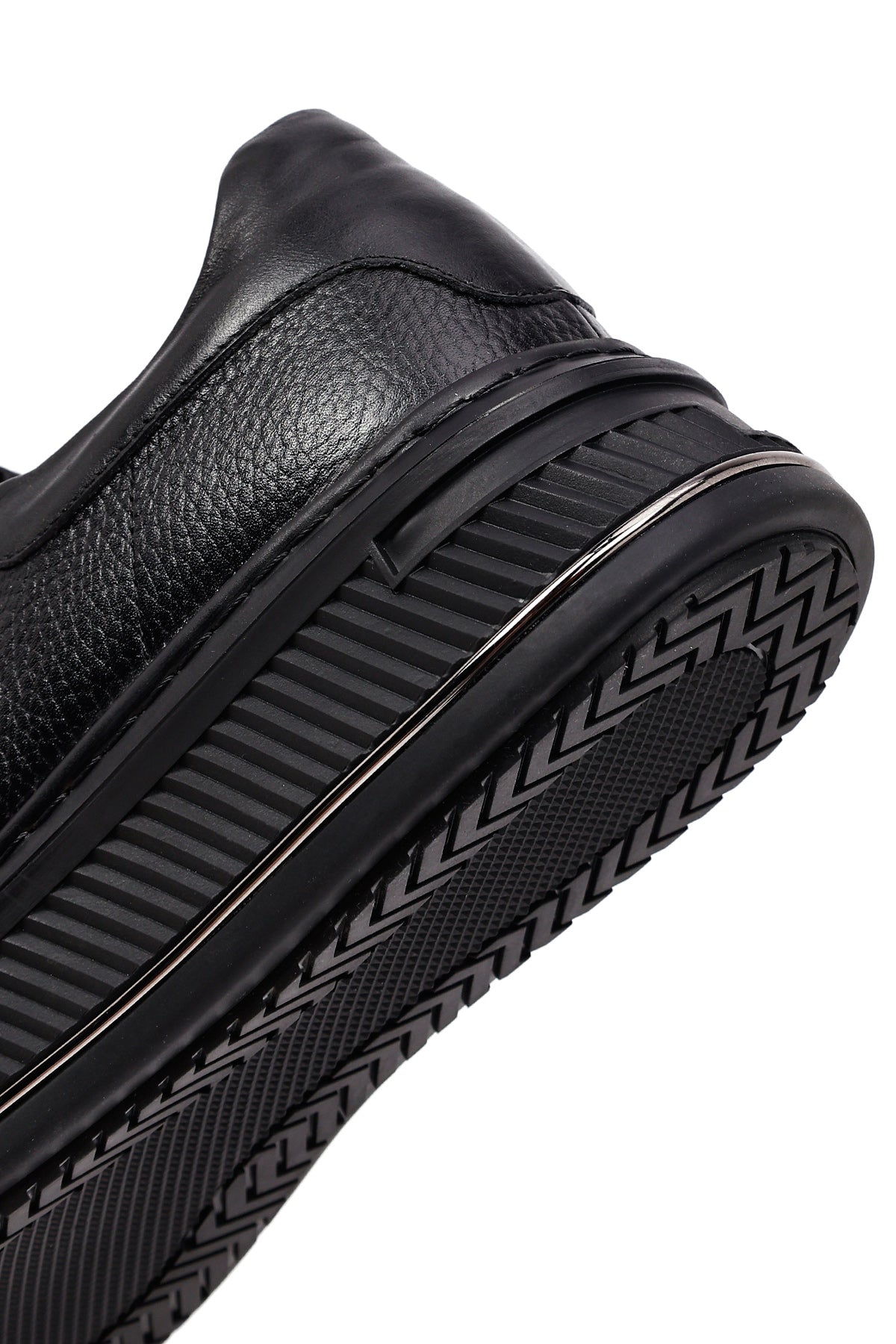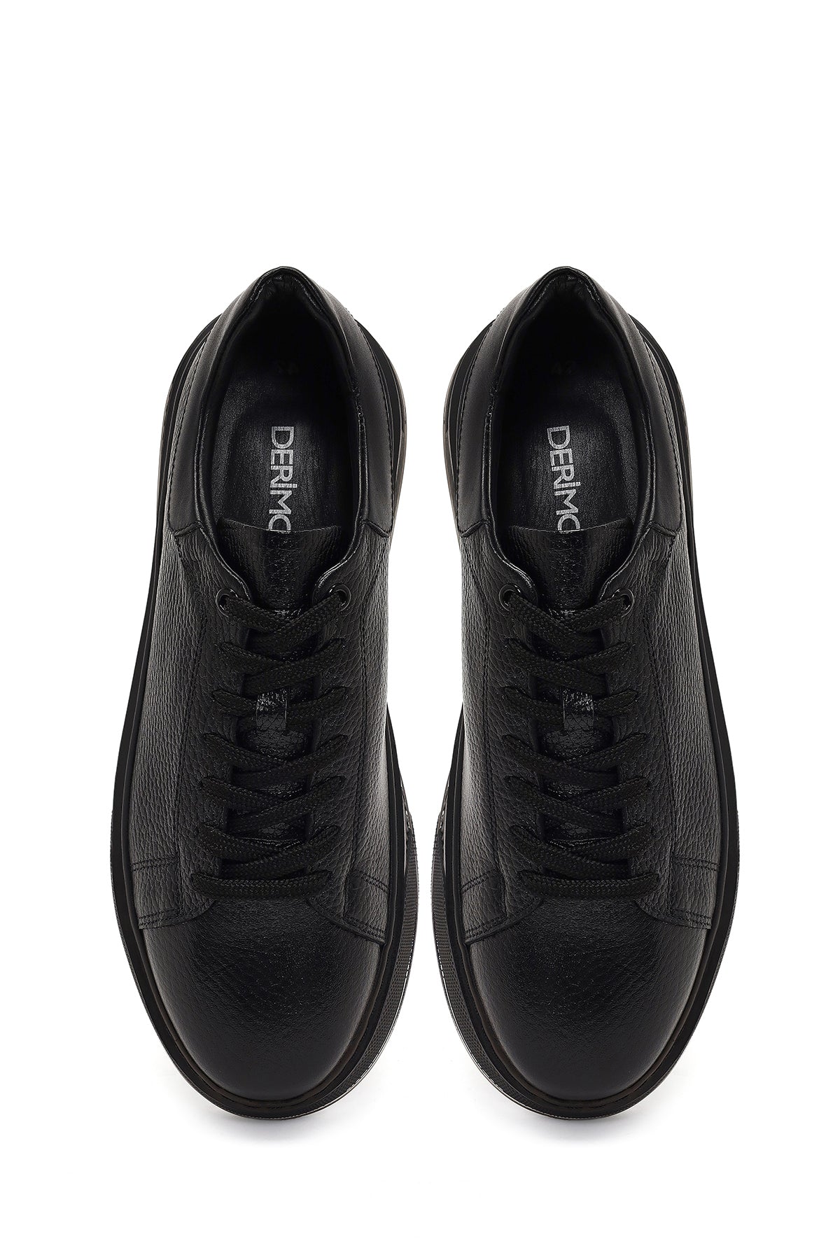 Erkek Siyah Bağcıklı Kalın Tabanlı Deri Sneaker