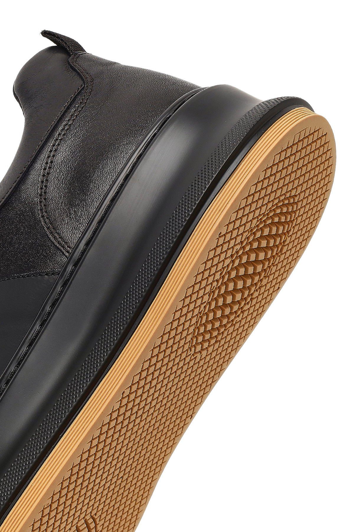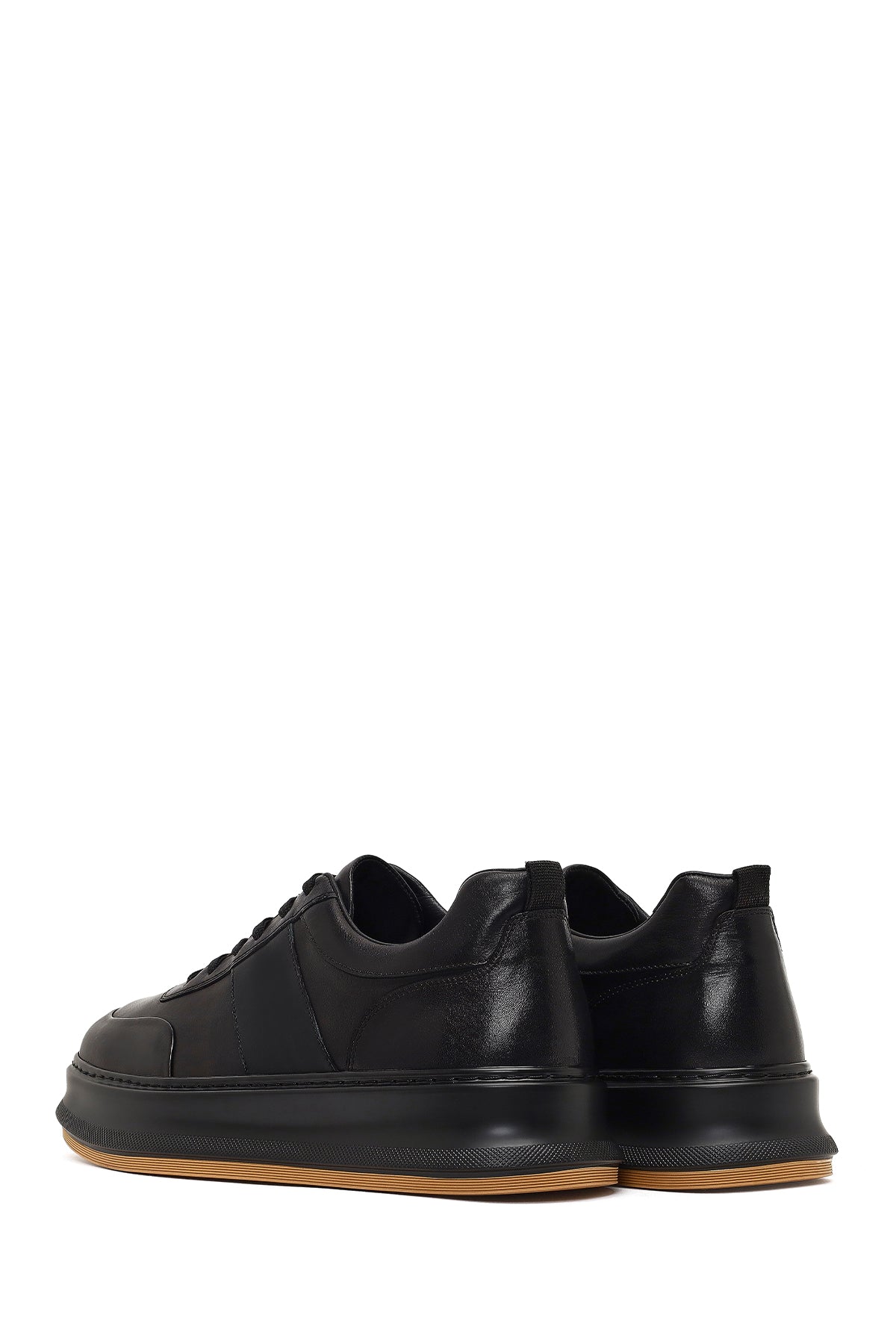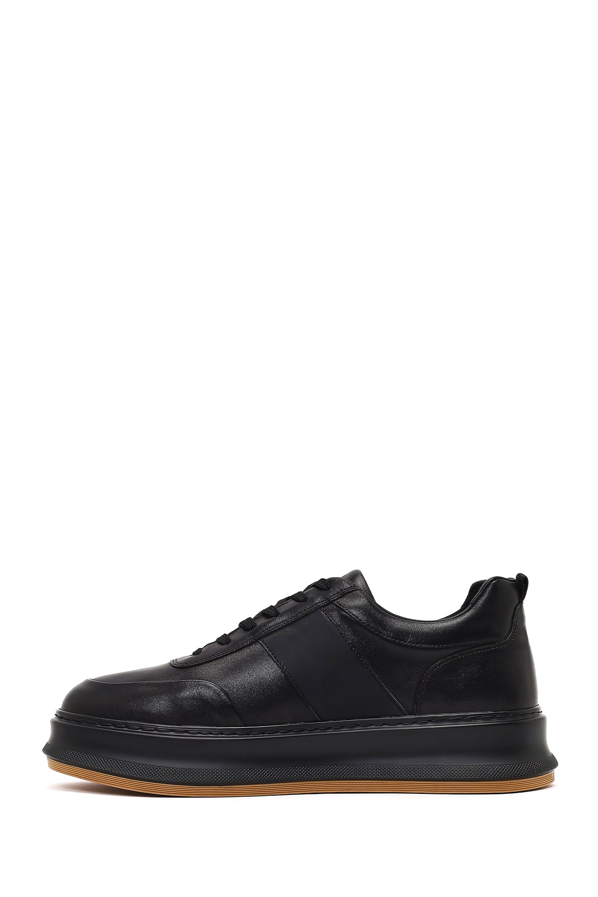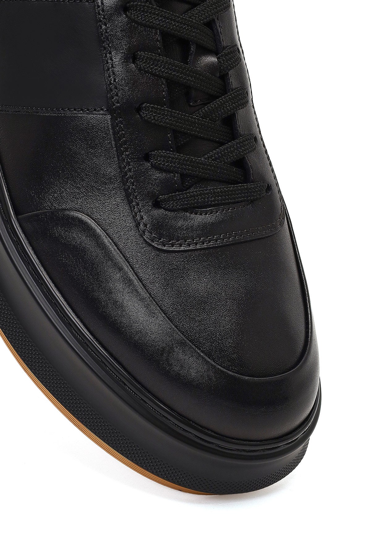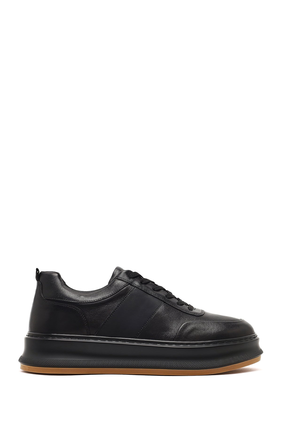 Erkek Siyah Bağcıklı Kalın Tabanlı Deri Sneaker